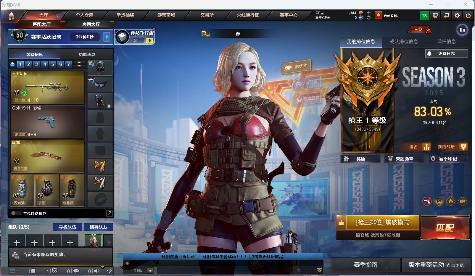 【游戏多多】 【可包人脸】ljh AK024842 四川一区 vip6 95v【M200-幻神+电流骇客】【王者幻神】【g36c幻影】【王者白虎】【QBZ03-金色蔷薇+音效卡+破浪逐光】【裁决+流光秘银+运输船】【毁灭+音效卡】【火麒麟+火麒麟-even】【黑龙】【雷神】【黑骑士+音效卡】【王者青龙 王者风势】【黑武士 黑鲨 龙血 hk417-朱雀】【8手枪 修罗 天神*2 王者之灵】【13近战 屠龙*2 麒麟刺*5 炽芒蝶刃蝴蝶刀+破浪逐光】【手雷 雷霆雷*4 幻灵雷 竞技荣光*3】【四防 云悠悠 晴雅】----更多炫彩背包/光效/名片/武器具体看图!截图展示段位不代实际段位,赛季更新等不可抗拒因素发生变化、时限道具不保证所剩时间、标题未写送点券默认不送】【主播担保+安全至上+性价比 买号卖号只选金牌商家一左友】