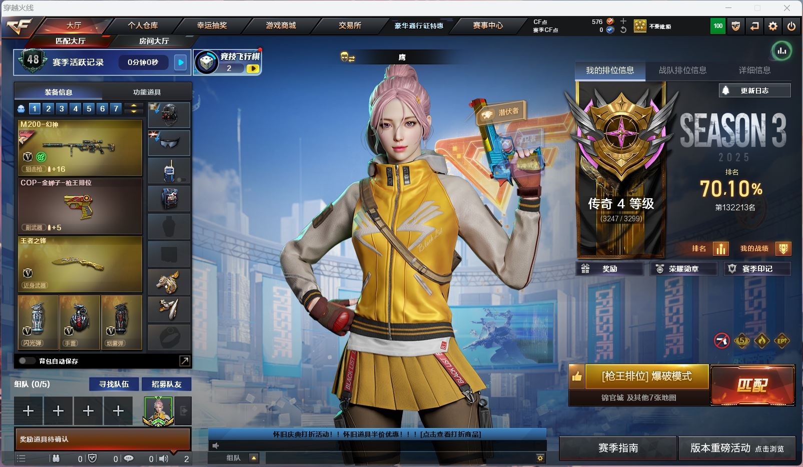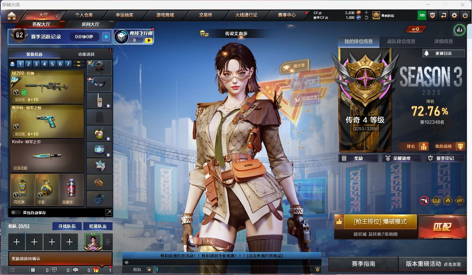 【游戏多多】 【可二次实名】hmc AK027480四川一区30v【亮点解析 幻神三件套 武器齐全 】【传说幽瞳 传说幽冥 】【m200幻神+音效卡+传奇欧欧+荣耀世冠白鲨2023+冠军之刃】【98k星神+音效卡 】【m200竞技荣光】【g36c幻影】【王者白虎】【qbz金色蔷薇+破浪逐光】【火麒麟】【黑龙】【雷神】【黑骑士】【毁灭+sv16冠军】【裁决 +流光秘银 】【炽芒蝶刃】【4手枪:天神 竞技荣光*2 柯尔特荣耀世冠白鲨】【8刀具:屠龙*3 擎天*2 麒麟刺 竞技荣光 】【小人枪:cop白鲨】【音效卡:星神音效卡 幻神音效卡 】【角色:云悠悠 雨棠 战地猎狐】----更多炫彩背包/光效/名片/武器具体看图!截图展示段位不代实际段位,赛季更新等不可抗拒因素发生变化、时限道具不保证所剩时间、标题未写送点券默认不送】【主播担保+安全至上+性价比 买号卖号只选金牌商家一左友】