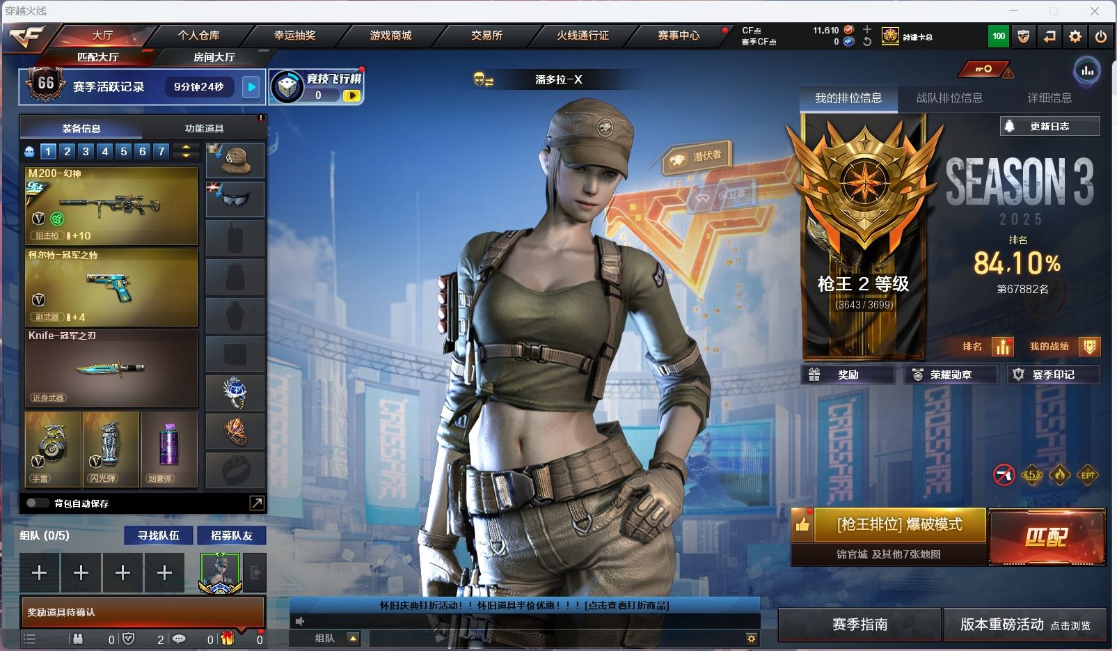 【游戏多多】 【可包人脸】hmc AK027474四川一区30v【m200幻神+音效卡】【qbz金色蔷薇】【武器:炼狱 】【2手枪:修罗 玄豹 】【7刀具:尼泊尔雷霆 斩神刀雷暴 龙啸 麒麟刺 龙啸 】【4雷套:雷霆雷 雷暴雷 玄豹雷*2】【音效卡:幻神音效卡 】【四防角色:职业经理 】----更多炫彩背包/光效/名片/武器具体看图!截图展示段位不代实际段位,赛季更新等不可抗拒因素发生变化、时限道具不保证所剩时间、标题未写送点券默认不送】【主播担保+安全至上+性价比 买号卖号只选金牌商家一左友】