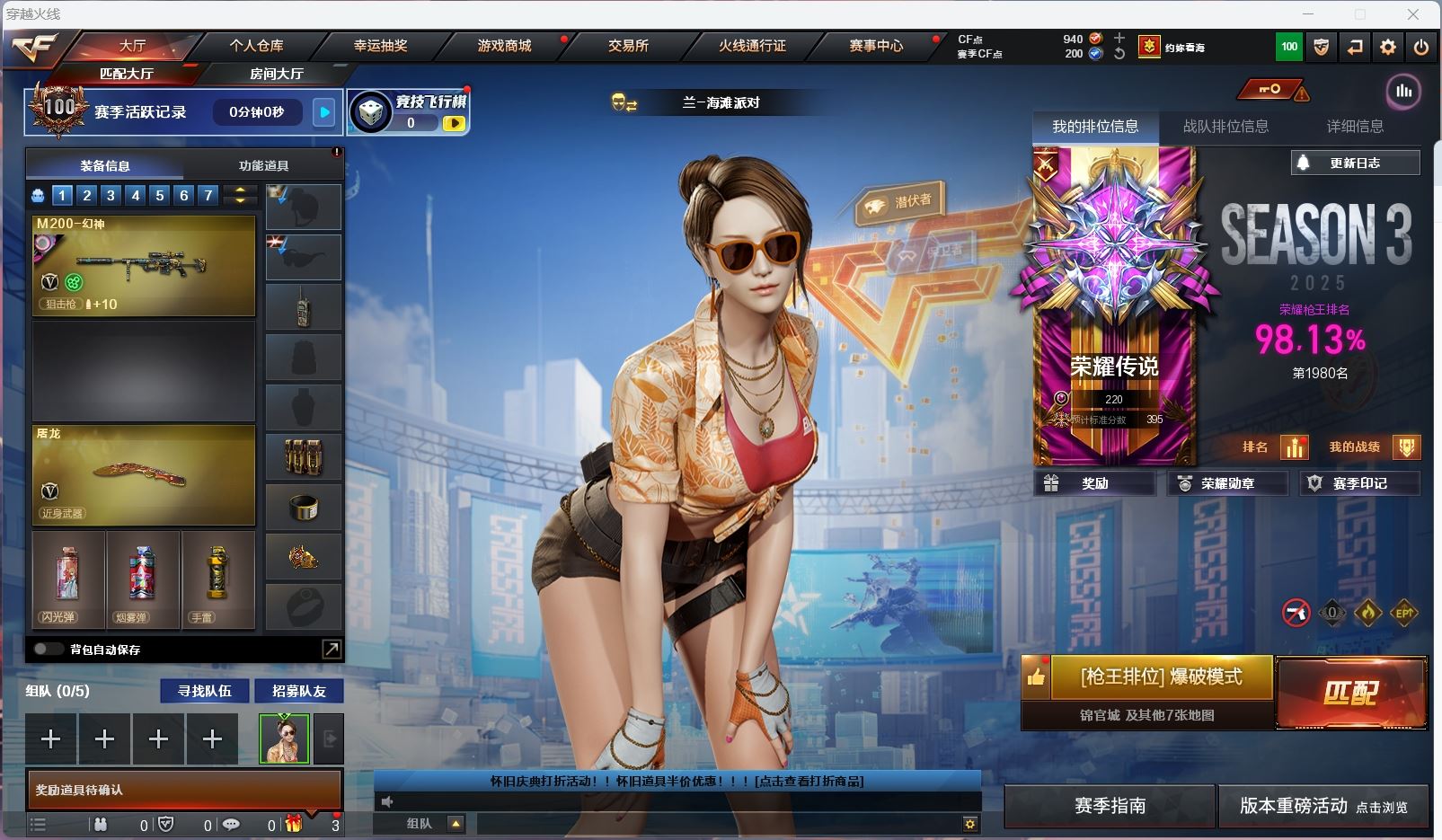 【游戏多多】 【可包人脸】hmc ak024293 辽宁一区20v【m200竞技荣光套+usp雷暴+四防云悠悠】【雷神+宠儿】【毁灭】 【武器:凌龙 雷霆王者 烈龙*4 】 【2手呛:雷暴 竞技荣光 】 【3刀具:麒麟刺 竞技荣光 龙啸烈火龙威 】 【雷套:竞技荣光雷 】 【小人呛:雷神精英刀锋 裁决雪莉杨 】 【四防角色:云悠悠 】----更多炫彩背包/光效/名片/武器具体看图!截图展示段位不代实际段位,赛季更新等不可抗拒因素发生变化、时限道具不保证所剩时间、标题未写送点券默认不送】【主播担保+安全至上+性价比 买号卖号只选金牌商家一左友】