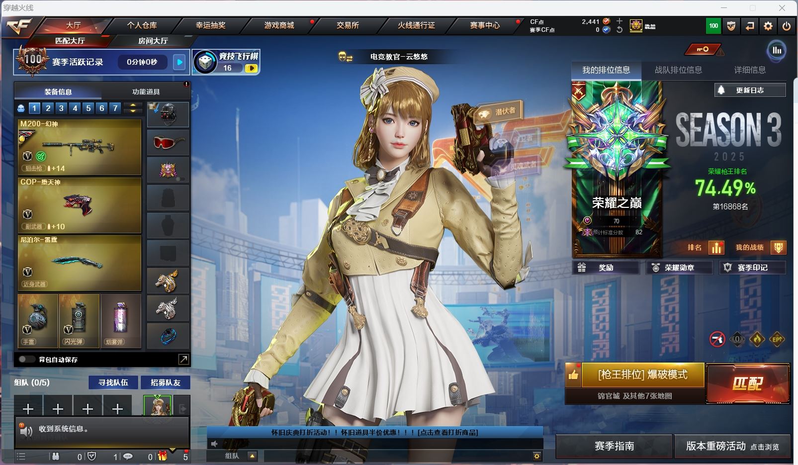 【游戏多多】 【可包人脸】lcf AK028028 【找回包赔】 黑龙江 vip6 24v 【M200-竞技荣光套装+usp雷暴+云悠悠】【QBZ金色蔷薇】【朱雀电竞之星+朱雀电竞之星音效卡】【碧霄极光+碧霄极光音效卡】【炼狱百战金芒+炼狱百战金芒音效卡】【屠龙电竞之星+屠龙电竞之星音效卡】【武器 雷神 无影神兵利器 机械迷城穹宇 朱雀电竞之星 炼狱百战金芒】【3手枪 usp雷暴 柯尔特竞技荣光 天神动感闪耀】【6刀具 屠龙 擎天竞技荣光 麒麟刺百战金芒 屠龙电竞之星 荣耀世冠龙啸 龙啸烈火龙威】【2雷套 竞技荣光*2】【小人枪 火麒麟零纪元】【角色 云悠悠】【电竞之星炫彩背包 炫彩背包诺拉 bs战队炫彩背包 百战金芒炫彩背包 亚洲杯纪念炫彩背包】----【截图展示段位不代表实际段位,如赛季更 新等不可抗拒因素发生变化、时限道具不保证所剩时间、标题未写送点卷默认不送】买号找【左友】永久包赔