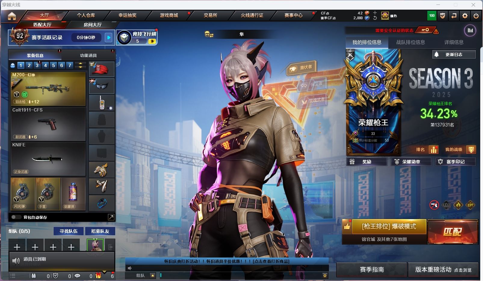 【游戏多多】 【可包人脸】hmc AK027984湖北二区58v【亮点解析 幻神三件套 】【m200幻神+音效卡+宠儿】【qbz金色蔷薇】【hk417朱雀】【火麒麟+卡】【黑龙】【雷神】【黑骑士+卡】【毁灭+ag15冠军】【极光】【武器:武圣 盘龙*4 炼狱 】【4手枪:修罗 天神 武圣 天神 】【10刀具:屠龙 龙啸*4 麒麟刺 幻灵之峰 王者之击 】【雷套:】【小人枪:雷神精英刀锋 火麒麟灵狐 天龙曼陀罗 】【音效卡:火麒麟音效卡 黑骑士音效卡 幻神音效卡 】【角色:零 零纪元 战地猎狐】----更多炫彩背包/光效/名片/武器具体看图!截图展示段位不代实际段位,赛季更新等不可抗拒因素发生变化、时限道具不保证所剩时间、标题未写送点券默认不送】【主播担保+安全至上+性价比 买号卖号只选金牌商家一左友】