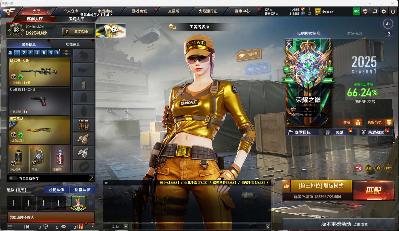 【游戏多多】 【可二次实名】1779湖南一区极品爆破号24v【幻神-冠军之幻】【炽芒蝶刃-破浪逐光皮肤】【王者风神】【qbz金色蔷薇-传奇宠儿皮肤】【王者风势】【qnz掌火萌橙】【朱雀-蛇隐宗-毁灭孙三炮】【雷神-黑龙-an94超新星-无影神兵利器-天龙】【王者之武】【角色:王者潘多拉-蛇隐宗】【雷神音效卡】【皮肤:雷神杨戬-黑龙能量核心-屠龙巅峰荣耀皮肤-毁灭暗月-雷神荣耀之魄】七永久背包vip2【南栀出品必是精品-买卖账号南栀.】