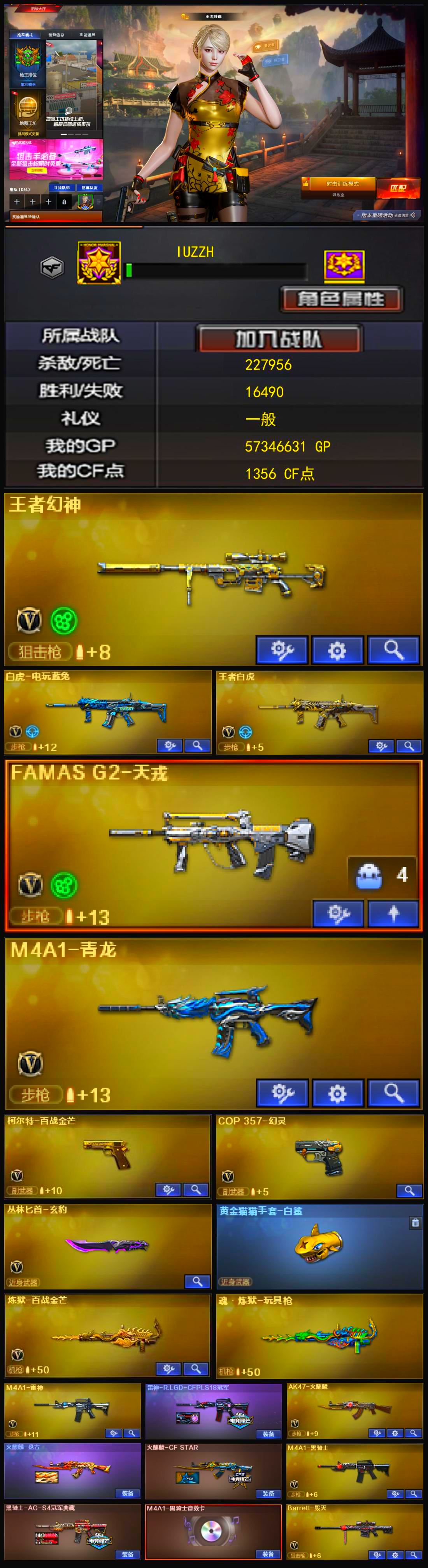 【游戏多多】 【可二次实名】王者幻神+王者白虎+白虎电玩蓝兔+法玛斯天戎+青龙+柯尔特百战金芒+COP幻灵+玄豹匕首+黄金猫猫手套白鲨+AG黑骑士音效卡+王者霜心+精品基础v+4防王者玲珑【43v】 【可否排位】可排位 【账号状态】无封号 【区服】江苏一区 【VIP】VIP2 【游戏等级】Lv.102 荣耀元帅 【段位排名】未上榜 【CF点】1356 【VVIP数量】43 【重要套装】网剧冠军套装 【重要角色】王者玲珑/葵-阿尔法武装/龙儿-小淘气/代号:翼/铁扇公主/乔伊教练/铁骑荣耀 【传说武器】 【英雄武器】王者幻神-觉醒版/Barrett-毁灭/Barrett-暗月传说/王者之决-觉醒版/M4A1-青龙/M4A1-雷神/M4A1-死神/M4A1-黑骑士/M4A1-玫瑰精灵/王者冰魄-觉醒版/白虎-电玩蓝兔/AK47-火麒麟/黑武士-CF网剧冠军/AK47-B-身先士卒/AK47-B-常胜将军/AK47-B-战士/COP 357-幻灵/天神-CF网剧冠军/沙鹰-修罗/王者之啸-觉醒版/擎天-CF网剧冠军/王者之击-觉醒版/屠龙/幻灵之锋/高爆手雷-幻灵(3)/高爆手雷-竞技荣光/烟雾弹-幻灵(2)/烟雾弹-竞技荣光/烟雾弹-雷霆王者-觉醒版/闪光弹-幻灵(2)/闪光弹-竞技荣光(2)/机械迷城-穹宇/FAMAS G2-天戎/炼狱-百战金芒/柯尔特-百战金芒/麒麟刺-百战金芒/丛林匕首-玄豹/高爆手雷-玄豹 【王者武器】王者霜心/王者白虎/闪光弹-雷霆王者(3)/高爆手雷-雷霆王者(2)/烟雾弹-雷霆王者 【小人枪】AWM-灵狐-15周年嘉年华/夺魂/迷你深渊冰龙/魔能飞环-曼陀罗/冰火魔兽/迷你裂空之翼 【其他重要武器】炫金火麒麟/M4A1-再燃火线/M4A1-仙界-黑骑士/火麒麟-能量核心/激光毁灭者I/冰龙粉碎者-白马银枪/激光毁灭者III-白马银枪/激光毁灭者III/海浪AK47-QQ浏览器/纯金AK-47/AK47-破空冰刃(3)/M4A1-秘银赤龙/AN94-青花瓷/M4A1-紫狱(2)/AK47-万圣节2021/AK103-神秘黑洞/AK47-丹龙/9A91-蓝色骑士/XM8-炫彩(2)/M4A1-樱/M4A1枪王排位II(2)/AK47-狂欢-CFS/AK47-大帝林肯/AK-47-二次元(3)/AK47-朋克/AK47-雷蛇/M4A1C-死亡之翼/M4CQBR-AP-孔明/AK47-娜塔莎/AK-12-CFS2017纪念版/AK47-齐天大圣/AK47-枪娘/百城AK47/黄金AK-47/M4A1-PINK/QBZ03-吕布/M4A1-圣诞2021/AWM-Pink(2)/AWM-青花瓷/AWM-卡通/M200-牡丹/M200-落樱/M200-神秘黑洞/M82A1-封神/M200-WeGame/AWM-A枪王排位II(2)/黄金AWM/Barrett-黑大圣/M82A1-飞龙在天/M200-青帝/FN弩炮-CFS2017纪念版/M200 CheyTac-大圣/AWM-枪娘/M200-情人节2019/Barrett-孔明(3)/M82A1-水枪/M200-大黄蜂(3)/Barrett-御龙/AWM-摸金校尉/M82A1-红龙/AWM-恶棍-枪王排位(2)/98K-蓝色骑士/M200-庆典-CFS 2021/AWM-S/Barrett-战龙/KAC-小动物(2)/阿梅利轻机枪-暗夜风暴/M240B-卡通/KAC-赤烛/斯太尔-能量核心/斯泰尔-CFS2017纪念版/EVOIII-萌杀/EVO3A1-火线13周年/神圣爆裂者III/神圣爆裂者III-蛇姬/Spas-12-黑金/修罗-年鹏/阐释者III(2)/COLT 1911-雷唤苍龙/柯尔特-百城(2)/mac-10-蒸汽钟表/MAC-10-幻能朋克(2)/沙鹰-枪王排位(2)/新USP-枪王排位奖励(4)/COP357-神秘黑洞/愤怒公牛左轮-丹龙/COP357-十二生肖·羊/COP-青帝(2)/COP-机甲刑天/MAC-10-涂鸦/COP357-朋克/毛瑟-庆典-CFS 2021/Anaconda-炽焰核心/沙鹰-能量核心/沙漠之鹰-A-摸金校尉/沙鹰-青龙/愤怒公牛左轮-枪王排位/幻影Anaconda-枪王排位/COP 357-青龙(2)/幻影沙鹰-枪王排位/Anaconda-雷电核心/轻型军用手斧-再燃火线/招财猫-枪王排位/魔能镰刀(2)/猫猫手套/尼泊尔-CFS 2020/虹光女皇利刃-枪王排位/幻影双斧-枪王排位(2)/不灭之拳/斩神刀-青帝/军用手斧-能量核心/尼泊尔-庆典-CFS 2021/黄金猫猫手套-白鲨/生化手雷-小钢/高爆手雷-诺拉/闪光弹-枪王排位(4)/胜利奖杯烟雾弹-枪王排位(2)/惨叫鸡手雷-惨叫迹(2)/幽灵宝宝手雷/黄金刀锋手雷/高爆手雷-大乔/闪