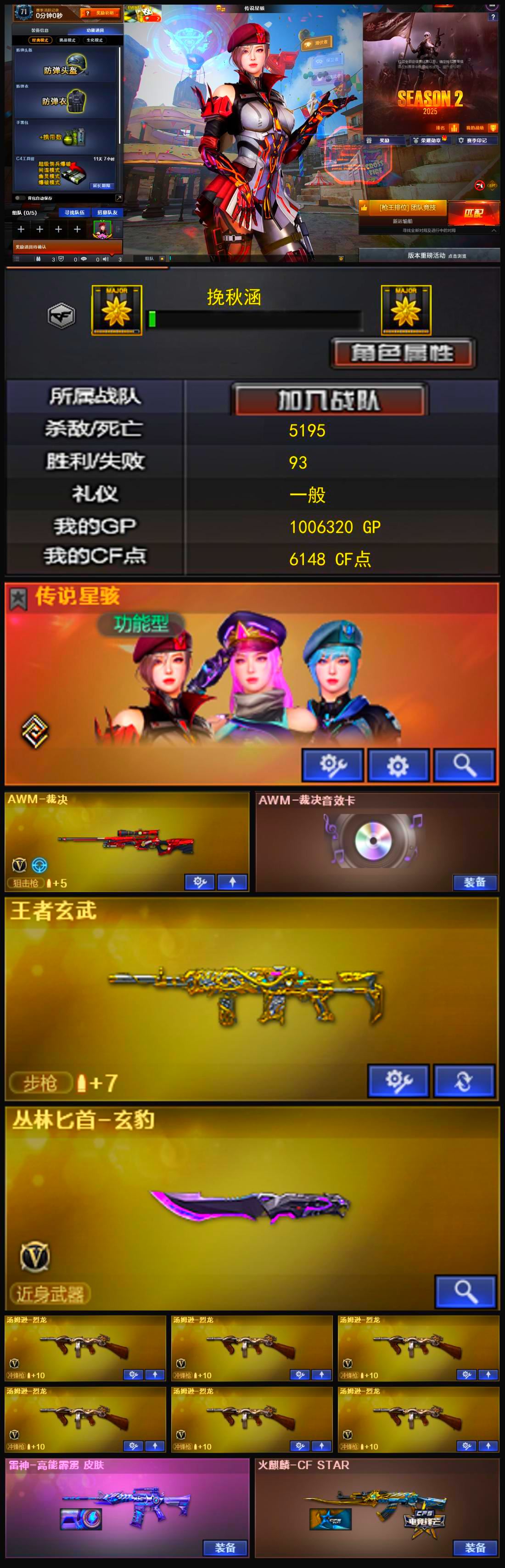 【游戏多多】 【可二次实名】2地图工坊创作者+4防传说星骇+裁决音效卡+王者玄武+6烈龙+玄豹匕首+4防玄豹角色【16v】 【可否排位】可排位 【账号状态】无封号 【区服】上海一区 【VIP】VIP2 【游戏段位】专家1 【游戏等级】Lv.58 少校7 【段位排名】501132 【CF点】6148 【VVIP数量】16 【重要套装】 【重要角色】传说星骇/_玄豹/_炽天使 【传说武器】 【英雄武器】AWM-裁决/9A91-烈火/汤姆逊-烈龙(6)/机械迷城-穹宇/丛林匕首-玄豹/高爆手雷-玄豹(2)/烟雾弹-玄豹/闪光弹-玄豹 【王者武器】王者玄武/王者冰锋 【小人枪】 【其他重要武器】海浪AK47-QQ浏览器/M4CQBR-AP-孔明/纯金AK-47/AWM-A-彩虹/AWM-A/斯泰尔-巧克力/SPAS-12-雷电核心/Colt1911-彩蝶/MAC-10-幻能朋克/轻型军用手斧-再燃火线/生化手雷-机甲核心/迷你生化手雷(2) 【重要武器皮肤】天龙-CFSTAR/火麒麟-CFSTAR/雷神-高能霹雳 皮肤/修罗-CFSTAR 【重要光效】 【重要音效卡】AWM-裁决音效卡 【重要戒指】 【拥有重要玩偶】