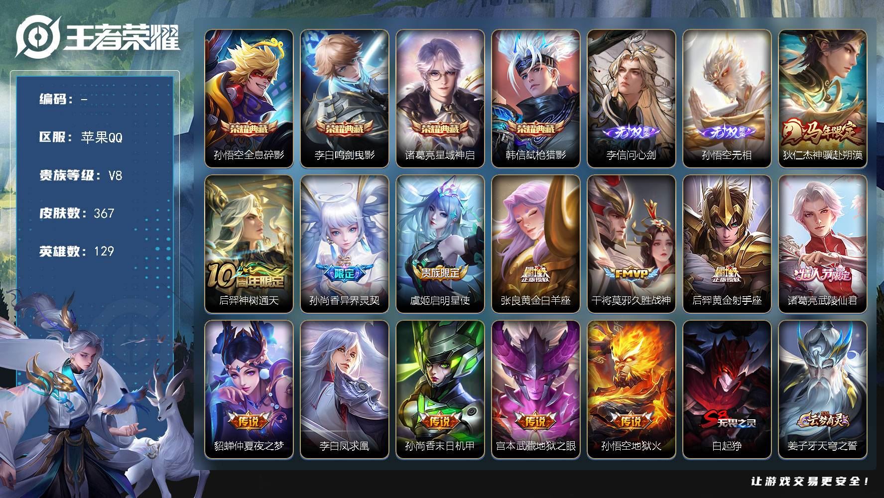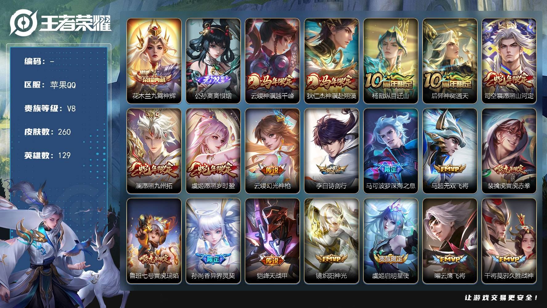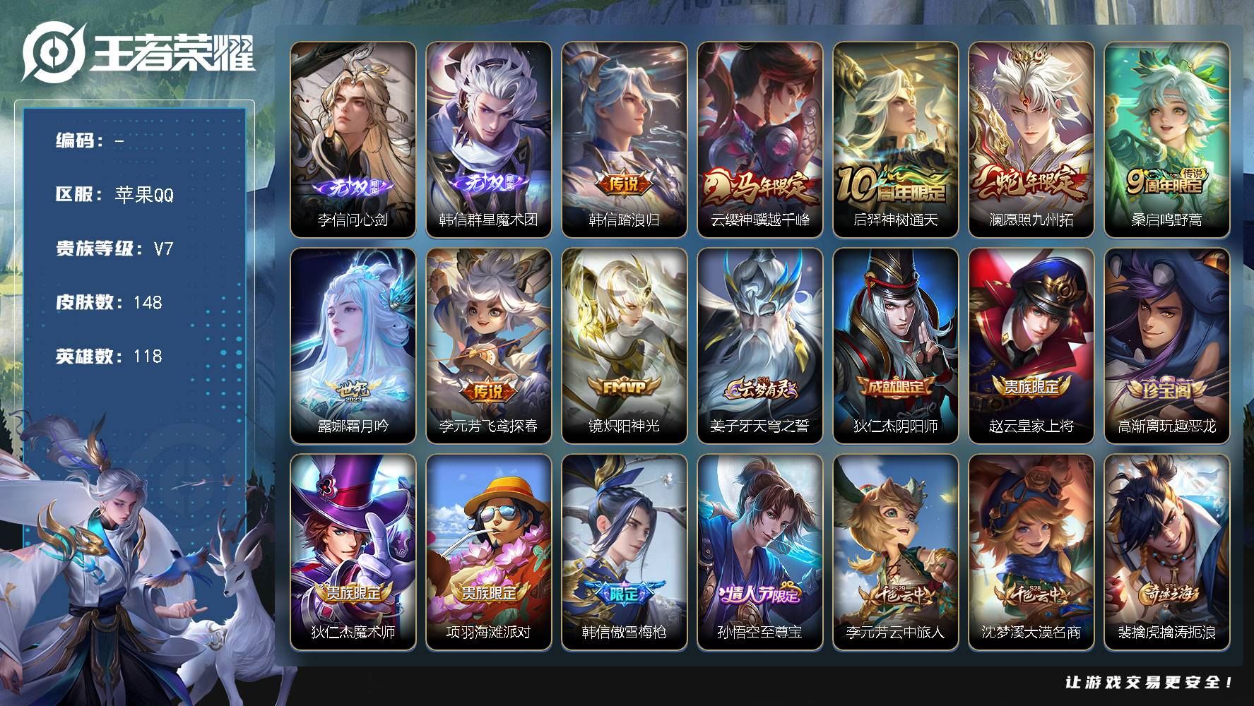 【游戏多多】 【可二次实名】sss【安卓qq】【营地id:404395844】 119英雄 508皮肤 4典藏 3无双 75传说 181史诗 206限定 【典藏:貂蝉幻阙歌 铠银白咏叹调 花木兰九霄神辉 李白鸣剑·曳影】【无双:韩信群星魔术团 李白碎月剑心 妲己青丘·九尾】【传说:朵莉亚心动手记 艾琳觅芳踪 露娜霜月吟 狄仁杰夜礼服假面 王昭君永恒水手月亮 甄姬至美·化雀舞 大乔时之奇旅 兰陵王影龙天霄 吕布遇见神鼓 宫本武藏惊梅引 马可波罗妄想实况 东皇太一灼幽烈阳 亚瑟追逃游戏 安琪拉追逃游戏 公孙离记忆之芯 夏洛特浮生妄 干将莫邪画中仙 伽罗炽翼辉光 孙悟空齐天大圣 小乔山海·琳琅生 曜山海·苍雷引 李信山海·炽霜斩 吕布怒海麟威 李白诗剑行 狄仁杰神器·狴犴令 不知火舞绯月行 王昭君星穹之声 百里守约碎云 橘右京枫霜尽 娜可露露前尘镜 马可波罗深海之息 后羿无尽星芒 马超无双飞将 孙策挚爱之约 露娜启示之音 蔡文姬花朝如约 女娲补天 孙策末日机甲 裴擒虎寅虎·赤拳 鲁班七号寅虎·瑞焰 孙尚香异界灵契 赵云淬星耀世 王昭君乞巧织情 西施游龙清影 曜李逍遥 周瑜音你心动 小乔音你心动 李元芳飞莺探春 兰陵王默契交锋 诸葛亮时雨天司 铠绛天战甲 镜炽阳神光 虞姬启明星使 孙悟空零号·赤焰 关羽武圣 曜云鹰飞将 李信一念神魔 刘备时之恋人 貂蝉猫影幻舞 张良黄金白羊座 干将莫邪久胜战神 虞姬云霓雀翎 达摩黄金狮子座 百里玄策白虎志 花木兰冠军飞将 梦奇胖达荣荣 后羿黄金射手座 诸葛亮武陵仙君 貂蝉仲夏夜之梦 李白凤求凰 孙尚香末日机甲 宫本武藏地狱之眼 孙悟空地狱火 吕布天魔缭乱 狄仁杰超时空战士 】【史诗:海诺心动手记 镜青焰无极 鲁班七号蔬乡物语 姬小满妄想食味 蒙恬荣光圣徽 高渐离燃音魔法 蒙犽百解令 姜子牙闲日渔趣 西施至美·乘鲤谣 阿古朵江河有灵 司空震地狱燃心 李元芳匿光侦查者 莱西奥末日机甲 赵怀真鹤归松栖 海月浮梦罗烟 扁鹊奇幻香踪 镜玫瑰异探 瑶山海·碧波行 盘古冰霜神祇 马可波罗山海·玄木吟 孙悟空孙行者 安琪拉时之奇旅 钟馗乐园奇幻夜 沈梦溪月团寄思 干将莫邪真爱魔法 】【限定:上官婉儿梁祝 上官婉儿神器·万象笔 不知火舞绯月行 云中君纤云弄巧 云中君时之祈愿】 ---各种道具请看图片,截图展示段位不代表实际段位,如赛季更新等不可抗拒因素发生变化、时限道具不保证所剩时间、标题未写送点卷默认不送,买号首选《左友账号,精品特惠》永久包赔