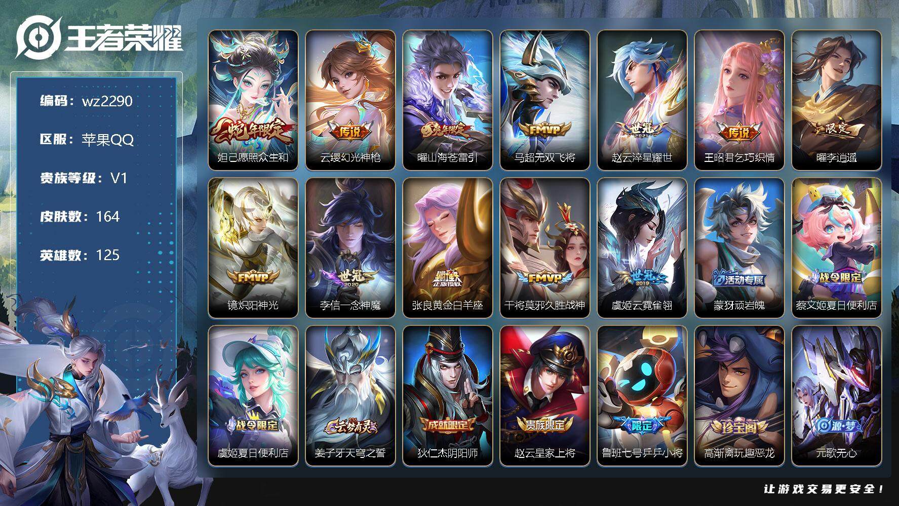 【游戏多多】 【可二次实名】【wz2290】苹果Q-V1-荣耀黄金IV段位-125英雄-164皮肤-0典藏-0珍品无双-0无双-0珍品传说-12传说-46史诗 【传说皮肤】:妲己愿照众生和,云缨幻光神枪,曜山海苍雷引,马超无双飞将,赵云淬星耀世,王昭君乞巧织情,曜李逍遥 ,镜炽阳神光,李信一念神魔,张良黄金白羊座,干将莫邪久胜战神,虞姬云霓雀翎 【限定皮肤】:蒙犽顽岩魄,蔡文姬夏日便利店,虞姬夏日便利店,姜子牙天穹之誓,狄仁杰阴阳师,赵云皇家上将,鲁班七号乒乒小将,高渐离玩趣恶龙,元歌无心,甄姬女儿国国王,马可波罗暗影游猎,狄仁杰魔术师,狄仁杰万华元夜,达摩沙漠行僧,项羽海滩派对,老夫子醍醐杖,程咬金演武夺筹,兰陵王金庭之子,后羿圣弓游侠,李元芳云中旅人,钟馗驱傩正仪,干将莫邪真爱魔法,蔡文姬繁星吟游,鬼谷子原初探秘者,鬼谷子五谷丰年,黄忠烈魂,苏烈千军破阵,百里守约朱雀志,沈梦溪大漠名商,明世隐疑决卦,裴擒虎李小龙,裴擒虎擒涛扼浪,米莱狄御霄,云中君纤云弄巧,猪八戒西部大镖客,上官婉儿梁祝,曜李逍遥 ,曜山海苍雷引,鲁班大师探海日志,桑启海盐诗旅,阿古朵江河有灵,张良古海寻踪,鬼谷子天穹祈灯,姬小满妄想食味,沈梦溪龙舞盛年,周瑜熔金海岸 【年限皮肤】:百里守约朱雀志,黄忠烈魂,曜山海苍雷引 【赛季限定】:狄仁杰万华元夜,达摩沙漠行僧,老夫子醍醐杖,程咬金演武夺筹,兰陵王金庭之子,张良古海寻踪,李元芳云中旅人,钟馗驱傩正仪,鬼谷子原初探秘者,苏烈千军破阵,沈梦溪大漠名商,明世隐疑决卦,裴擒虎擒涛扼浪,米莱狄御霄,鲁班大师探海日志,桑启海盐诗旅,鬼谷子天穹祈灯,姜子牙天穹之誓 【战令限定】:蔡文姬夏日便利店,虞姬夏日便利店,马可波罗暗影游猎,后羿圣弓游侠,干将莫邪真爱魔法,猪八戒西部大镖客 【史诗皮肤】:项羽苍穹之光,阿轲暗夜猫娘,赵云皇家上将,甄姬冰雪圆舞曲,狄仁杰魔术师,宫本武藏鬼剑武藏,孙尚香水果甜心,嬴政摇滚巨星,妲己魅力维加斯,墨子龙骑士,墨子金属风暴,曹操幽灵船长,李白千年之狐,吕布末日机甲,花木兰水晶猎龙者,刘邦德古拉伯爵,小乔缤纷独角兽,诸葛亮黄金分割率,亚瑟心灵战警,安琪拉心灵骇客,铠曙光守护者,李元芳逐浪之夏,百里守约朱雀志,狄仁杰鹰眼统帅,公孙离无限星赏官,上官婉儿梁祝,蔡文姬繁星吟游,橘右京修罗,黄忠烈魂,孙尚香时之恋人,马可波罗暗影游猎,裴擒虎李小龙,云中君纤云弄巧,鲁班七号乒乒小将,干将莫邪真爱魔法,沈梦溪月团寄思,甄姬女儿国国王,澜赏金猎手,貂蝉唤灵魅影,鬼谷子五谷丰年,元歌无心,百里守约真我赫兹,阿古朵江河有灵,姬小满妄想食味,蔡文姬夏日便利店,蒙犽顽岩魄 【其他皮肤】:项羽海滩派对,韩信教廷特使,韩信街头霸王,露娜哥特玫瑰,达摩大发明家,赵云忍炎影,芈月红桃皇后,白起白色死神,扁鹊化身博士,安琪拉玩偶对对碰,孙膑天使之翼,姜子牙时尚教父,妲己少女阿狸,亚瑟死亡骑士,达摩拳王,花木兰兔女郎,甄姬花好人间,刘备万事如意,狄仁杰阴阳师,刘备纽约教父,关羽龙腾万里,钟无艳海滩丽影,宫本武藏霸王丸,老夫子功夫老勺,孙尚香沉稳之力,诸葛亮掌控之力,李白敏锐之力,鬼谷子幻乐之宴,大乔守护之力,项羽科学大爆炸,米莱狄御霄,小乔丁香结,吕布野性能量,孙膑归虚梦演,高渐离玩趣恶龙,沈梦溪鲨炮海盗猫,姜子牙炽热元素使,明世隐疑决卦,盾山圆桌骑士,老夫子醍醐杖,猪八戒西部大镖客,狂铁特工战影,廉颇无尽征程,鬼谷子原初探秘者,狄仁杰万华元夜,刘禅秘密基地,露娜瓷语鉴心,程咬金演武夺筹,张良缤纷绘卷,钟馗驱傩正仪,鲁班大师乓乓大师,苏烈千军破阵,后羿圣弓游侠,达摩沙漠行僧,程咬金无双福将,兰陵王金庭之子,沈梦溪大漠名商,李元芳云中旅人,桑启海盐诗旅,猪八戒潮玩探月行,牛魔牛运亨通,裴擒虎擒涛扼浪,鲁班大师探海日志,姬小满零食大作战,李元芳妄想特派,哪吒热血海滩,张良古海寻踪,钟无艳聚星闪耀,鬼谷子天穹祈灯,廉颇功夫炙烤,沈梦溪龙舞盛年,钟无艳春野之旅,姜子牙天穹之誓,周瑜熔金海岸,虞姬夏日便利店,太乙真人谧流熔炉,西施雪境奇遇,姜子牙星梦巡礼,鲁班七号福禄兄弟,貂蝉异域舞娘,花木兰剑舞者,老夫子潮流仙人,曹操超能战警,孙膑未来旅行,孙悟空西部大镖客,刘邦圣殿之光,夏侯惇战争骑士,雅典娜战争女神,马可波罗激情绿茵,苍维京掠夺者,干将莫邪第七人偶,铠龙域领主,百里守约绝影神枪,百里玄策威尼斯狂欢,明世隐占星师,裴擒虎街头旋风,米莱狄精准探案法,元歌午夜歌剧院,孙策海之征途,盾山极冰防御线,伽罗花见巫女,李信灼热之刃,曜归虚梦演,澜孤猎,司空震启蛰,暃碧珀绯影 【内测皮肤】:高渐离玩趣恶龙,狂铁特工战影 【营地ID】:541312633