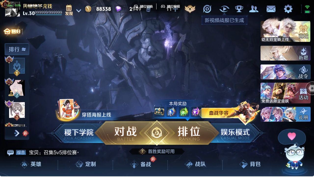 【游戏多多】 【可二次实名】V9!万战不知火舞!鸣剑曳影!至尊宝!B13356.安卓QQ178区.营地ID:7800855. 396皮2典藏26传说贵族积分11.8万。幸运值261 典藏下一个马上就出!喜欢不要错过!【荣耀典藏】2个武则天,鸣剑曳影。【星传说】3个未来机甲,幻海之心,金色仲夏夜。【传说】26个祈雪灵祝,时雨天司,炽阳神光,启明星使,武圣,云鹰飞将,一念神魔,时之恋人,太华,猫影幻舞,黄金白羊座,久胜战神,云霓雀翎,黄金狮子座,白虎志,冠军飞将,黄金射手座,永曜之星,武陵仙君,仲夏夜之梦,凤求凰,孙尚香末日机甲,地狱之眼,天魔缭乱,海洋之心,超时空战士。1个性按键。69回城特效。36击败特效。21拖尾特效。