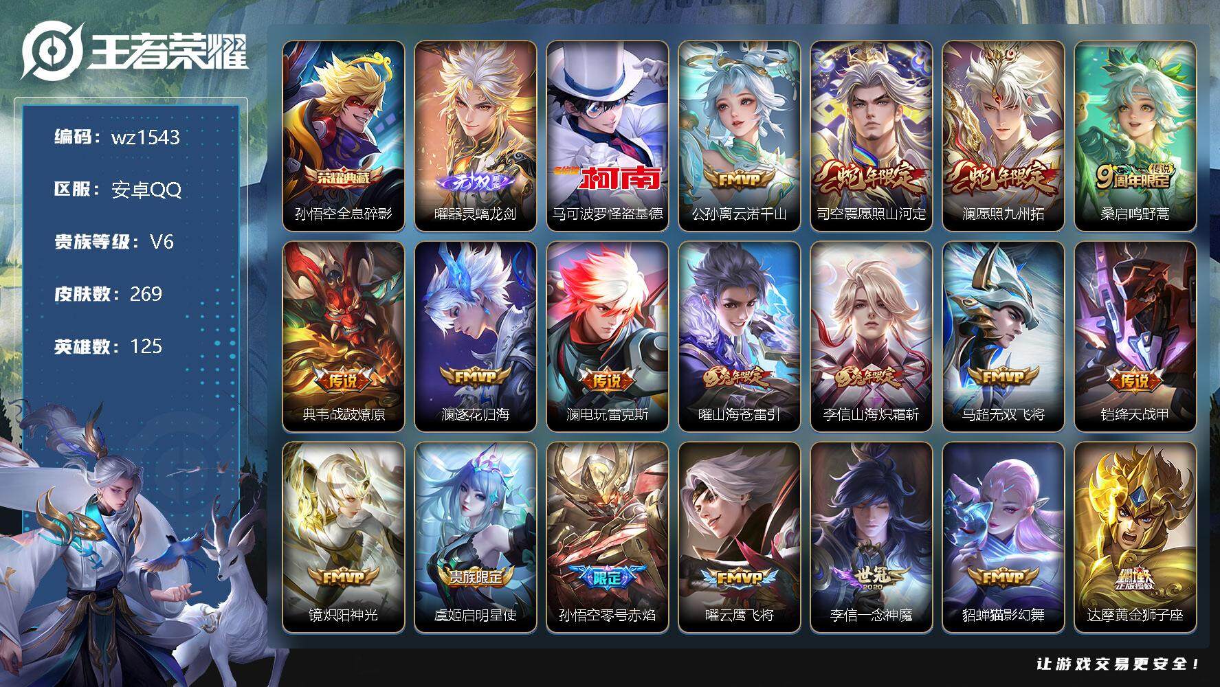 【游戏多多】 【可二次实名】【wz1543】【商品标题】:安卓Q-V6-永恒钻石I段位-125英雄-269皮肤-1典藏-0珍品无双-1无双-1珍品传说-21传说-76史诗 【英雄全皮】:苍全皮,李信全皮,澜全皮,司空震全皮,影全皮 【荣耀典藏】:孙悟空全息碎影 【无双皮肤】:曜器灵螭龙剑 【珍品传说】:马可波罗怪盗基德 【传说皮肤】:公孙离云诺千山,司空震愿照山河定,澜愿照九州拓,桑启鸣野蒿,典韦战鼓燎原,澜逐花归海,澜电玩雷克斯,曜山海苍雷引,李信山海炽霜斩,马超无双飞将,铠绛天战甲,镜炽阳神光,虞姬启明星使,孙悟空零号赤焰,曜云鹰飞将,李信一念神魔,貂蝉猫影幻舞,达摩黄金狮子座,貂蝉仲夏夜之梦,宫本武藏地狱之眼,孙悟空地狱火 【限定皮肤】:蒙犽顽岩魄,姜子牙天穹之誓,杨戬破阵退雄兵,狄仁杰阴阳师,赵云皇家上将,墨子神迹守卫,钟无艳王者之锤,孙膑天狼运算者,芈月白晶晶,元歌云间偶戏,元歌无心,马可波罗山海玄木吟,狄仁杰魔术师,狄仁杰万华元夜,达摩沙漠行僧,项羽海滩派对,老夫子醍醐杖,老夫子航海奇遇记,关羽冰锋战神,程咬金演武夺筹,兰陵王金庭之子,亚瑟潮玩骑士王,孙悟空至尊宝,孙悟空零号赤焰,李元芳云中旅人,虞姬启明星使,钟馗驱傩正仪,干将莫邪胡桃夹子,雅典娜单词大作战,蔡文姬繁星吟游,鬼谷子原初探秘者,鬼谷子五谷丰年,苏烈千军破阵,梦奇顽趣,沈梦溪大漠名商,裴擒虎李小龙,裴擒虎擒涛扼浪,云中君纤云弄巧,李信山海炽霜斩,上官婉儿梁祝,曜山海苍雷引,蒙犽狂想玩偶喵,鲁班大师探海日志,桑启海盐诗旅,艾琳流音漫舞,司空震地狱燃心,阿古朵江河有灵,张良古海寻踪,鬼谷子天穹祈灯,姬小满妄想食味,沈梦溪龙舞盛年,李元芳蔬乡物语,刘邦剑破天穹,程咬金群星魔术团,镜青焰无极,项羽苍威无极,周瑜熔金海岸 【年限皮肤】:马可波罗山海玄木吟,李信山海炽霜斩,曜山海苍雷引 【赛季限定】:狄仁杰万华元夜,达摩沙漠行僧,老夫子醍醐杖,程咬金演武夺筹,兰陵王金庭之子,张良古海寻踪,李元芳云中旅人,钟馗驱傩正仪,鬼谷子原初探秘者,苏烈千军破阵,梦奇顽趣,沈梦溪大漠名商,裴擒虎擒涛扼浪,鲁班大师探海日志,桑启海盐诗旅,鬼谷子天穹祈灯,刘邦剑破天穹,姜子牙天穹之誓 【战令限定】:墨子神迹守卫,元歌云间偶戏,老夫子航海奇遇记,艾琳流音漫舞,亚瑟潮玩骑士王,雅典娜单词大作战,蒙犽狂想玩偶喵,司空震地狱燃心,李元芳蔬乡物语,镜青焰无极,项羽苍威无极 【史诗皮肤】:露娜紫霞仙子,钟无艳王者之锤,赵云皇家上将,赵云未来纪元,貂蝉圣诞恋歌,甄姬冰雪圆舞曲,狄仁杰魔术师,廉颇地狱岩魂,宫本武藏鬼剑武藏,孙尚香水果甜心,嬴政摇滚巨星,妲己魅力维加斯,妲己女仆咖啡,墨子龙骑士,墨子金属风暴,吕布圣诞狂欢,曹操幽灵船长,李白千年之狐,吕布末日机甲,张飞乱世虎臣,关羽冰锋战神,孙悟空至尊宝,花木兰水晶猎龙者,刘邦德古拉伯爵,夏侯惇乘风破浪,小乔缤纷独角兽,兰陵王暗隐猎兽者,诸葛亮黄金分割率,亚瑟心灵战警,安琪拉心灵骇客,百里守约特工魅影,铠曙光守护者,蔡文姬舞动绿茵,刘禅天才门将,李元芳逐浪之夏,程咬金功夫厨神,白起星夜王子,阿轲节奏热浪,孙策猫狗日记,伽罗箭羽风息,狄仁杰鹰眼统帅,公孙离无限星赏官,上官婉儿梁祝,蔡文姬繁星吟游,娜可露露晚萤,不知火舞魅语,橘右京修罗,孙尚香时之恋人,蒙犽狂想玩偶喵,裴擒虎李小龙,云中君纤云弄巧,孙膑天狼运算者,元歌云间偶戏,芈月白晶晶,老夫子航海奇遇记,杨戬天秀启明,夏洛特永昼,澜赏金猎手,鬼谷子五谷丰年,元歌无心,梦奇顽趣,马可波罗山海玄木吟,刘禅电玩爆裂旋风,司空震地狱燃心,阿古朵江河有灵,姬小满妄想食味,镜青焰无极,蒙犽顽岩魄,百里守约百相守梦,孙膑茶境仙,赵怀真器灵浮梦炉,苍狼魂孤将,阿轲化蝶舞,刘禅鸭鸭历险记,狂铁龙之律动,扁鹊灵蛊蚀心 【其他皮肤】:项羽海滩派对,韩信教廷特使,韩信街头霸王,阿轲致命风华,阿轲爱心护理,达摩大发明家,赵云白执事,赵云忍炎影,程咬金爱与正义,扁鹊化身博士,扁鹊救世之瞳,宫本武藏未来纪元,安琪拉玩偶对对碰,孙膑天使之翼,姜子牙时尚教父,妲己少女阿狸,典韦黄金武士,亚瑟死亡骑士,花木兰兔女郎,张飞五福同心,甄姬花好人间,刘备万事如意,宫本武藏万象初新,后羿阿尔法小队,狄仁杰阴阳师,刘备纽约教父,关羽龙腾万里,钟无艳海滩丽影,狂铁命运角斗场,老夫子功夫老勺,孙尚香沉稳之力,诸葛亮掌控之力,李白敏锐之力,鬼谷子幻乐之宴,苏烈坚韧之力,大乔守护之力,明世隐虹云星官,小乔丁香结,吕布野性能量,孙膑归虚梦演,沈梦溪鲨炮海盗猫,姜子牙炽热元素使,哪吒次元突破,鲁班七号黑桃队长,老夫子醍醐杖,狂铁特工战影,鬼谷子原初探秘者,雅典娜单词大作战,狄仁杰万华元夜,亚瑟潮玩骑士王,刘禅秘密基地,杨戬次元傲视,程咬金演武夺筹,张良缤纷绘卷,钟馗驱傩正仪,墨子