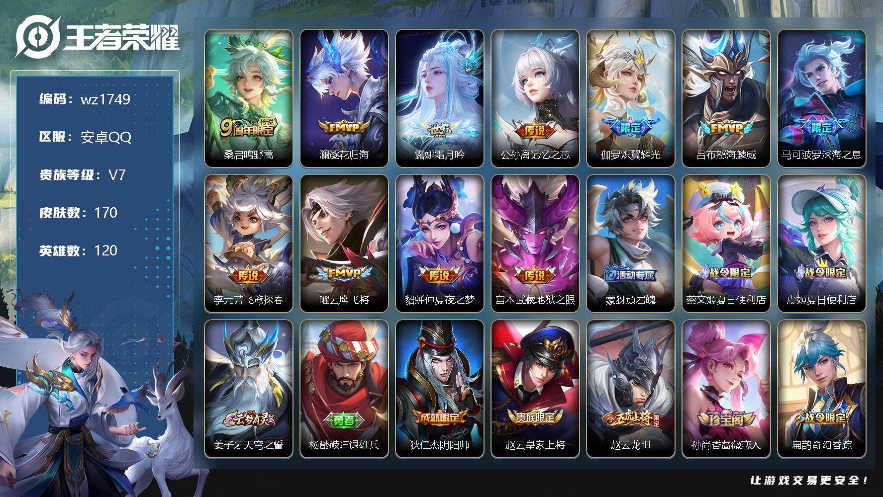 【游戏多多】 【可二次实名】【wz1749】【商品标题】:安卓Q-V7-至尊星耀I段位-120英雄-170皮肤-0典藏-0珍品无双-0无双-0珍品传说-11传说-51史诗 【英雄全皮】:蒙恬全皮 【传说皮肤】:桑启鸣野蒿,澜逐花归海,露娜霜月吟,公孙离记忆之芯,伽罗炽翼辉光,吕布怒海麟威,马可波罗深海之息,李元芳飞鸢探春,曜云鹰飞将,貂蝉仲夏夜之梦,宫本武藏地狱之眼 【限定皮肤】:蒙犽顽岩魄,蔡文姬夏日便利店,虞姬夏日便利店,姜子牙天穹之誓,杨戬破阵退雄兵,狄仁杰阴阳师,赵云皇家上将,赵云龙胆,孙尚香蔷薇恋人,扁鹊奇幻香踪,元歌无心,马可波罗深海之息,狄仁杰魔术师,项羽海滩派对,李元芳云中旅人,杨戬潮玩骑兵,鬼谷子五谷丰年,黄忠火炮绅士,沈梦溪大漠名商,裴擒虎擒涛扼浪,云中君纤云弄巧,伽罗炽翼辉光,上官婉儿神器万象笔,嫦娥拒霜思,嫦娥暖冬兔眠,西施玲珑珍味,鲁班大师探海日志,桑启海盐诗旅,暃星界游侠,戈娅驭风魔法,艾琳流音漫舞,司空震地狱燃心,阿古朵江河有灵,张良古海寻踪,蒙犽百解令,蒙恬荣光圣徽,高渐离燃音魔法,妲己灵卜魔法,鬼谷子天穹祈灯,刘邦剑破天穹,程咬金群星魔术团,镜青焰无极,项羽苍威无极,周瑜熔金海岸 【年限皮肤】:赵云龙胆,伽罗炽翼辉光 【赛季限定】:张良古海寻踪,李元芳云中旅人,沈梦溪大漠名商,裴擒虎擒涛扼浪,鲁班大师探海日志,桑启海盐诗旅,鬼谷子天穹祈灯,蒙恬荣光圣徽,刘邦剑破天穹,姜子牙天穹之誓 【战令限定】:蔡文姬夏日便利店,虞姬夏日便利店,扁鹊奇幻香踪,艾琳流音漫舞,杨戬潮玩骑兵,黄忠火炮绅士,嫦娥暖冬兔眠,西施玲珑珍味,司空震地狱燃心,暃星界游侠,戈娅驭风魔法,高渐离燃音魔法,妲己灵卜魔法,镜青焰无极,项羽苍威无极 【史诗皮肤】:露娜紫霞仙子,赵云皇家上将,赵云未来纪元,甄姬冰雪圆舞曲,王昭君偶像歌手,狄仁杰魔术师,廉颇地狱岩魂,宫本武藏鬼剑武藏,孙尚香蔷薇恋人,孙尚香水果甜心,妲己女仆咖啡,墨子龙骑士,墨子金属风暴,刘禅绅士熊喵,曹操幽灵船长,李白千年之狐,吕布末日机甲,花木兰水晶猎龙者,刘邦德古拉伯爵,夏侯惇乘风破浪,小乔缤纷独角兽,兰陵王暗隐猎兽者,百里守约特工魅影,程咬金功夫厨神,白起星夜王子,阿轲节奏热浪,狄仁杰鹰眼统帅,橘右京修罗,瑶遇见神鹿,赵云龙胆,云中君纤云弄巧,安琪拉时之奇旅,嫦娥拒霜思,黄忠火炮绅士,澜赏金猎手,貂蝉唤灵魅影,鬼谷子五谷丰年,上官婉儿神器万象笔,元歌无心,暃星界游侠,扁鹊奇幻香踪,刘禅电玩爆裂旋风,戈娅驭风魔法,司空震地狱燃心,阿古朵江河有灵,蒙犽百解令,妲己灵卜魔法,高渐离燃音魔法,蒙恬荣光圣徽,镜青焰无极,蔡文姬夏日便利店,蒙犽顽岩魄 【其他皮肤】:项羽海滩派对,韩信教廷特使,韩信街头霸王,达摩大发明家,赵云忍炎影,白起白色死神,扁鹊化身博士,安琪拉玩偶对对碰,妲己少女阿狸,典韦黄金武士,达摩拳王,张飞五福同心,狄仁杰阴阳师,关羽龙腾万里,钟无艳海滩丽影,王昭君幻想奇妙夜,狂铁命运角斗场,大乔守护之力,明世隐虹云星官,小乔丁香结,孙膑归虚梦演,沈梦溪鲨炮海盗猫,姜子牙炽热元素使,盾山圆桌骑士,狂铁特工战影,刘禅秘密基地,露娜瓷语鉴心,张良缤纷绘卷,鲁班大师乓乓大师,刘禅唤灵魔甲,沈梦溪大漠名商,蒙恬蔚蓝守将,李元芳云中旅人,戈娅危途狂花,刘备潮玩造梦师,桑启海盐诗旅,嫦娥暖冬兔眠,海月幻泉雾影,牛魔牛运亨通,白起乐园追猎者,赵怀真太极少年,裴擒虎擒涛扼浪,杨戬潮玩骑兵,太乙真人劲辣红锅,莱西奥西部游侠,鲁班大师探海日志,西施玲珑珍味,姬小满零食大作战,李元芳妄想特派,哪吒热血海滩,艾琳流音漫舞,张良古海寻踪,钟无艳聚星闪耀,海月王牌新星,亚连破局者,兰陵王幻夜行动,曹操决胜大满贯,后羿完美运算,程咬金暖冬絮语,鬼谷子天穹祈灯,妲己灵卜魔法,海诺时空谍影,廉颇功夫炙烤,钟无艳春野之旅,刘邦剑破天穹,程咬金群星魔术团,项羽苍威无极,大司命暗都幽影,杨戬破阵退雄兵,姜子牙天穹之誓,周瑜熔金海岸,虞姬夏日便利店,东皇太一噬灭天穹,鲁班七号木偶奇遇记,露娜绯红之刃,老夫子潮流仙人,王昭君精灵公主,曹操超能战警,小乔万圣前夜,孙悟空西部大镖客,兰陵王隐刃,李元芳特种部队,刘邦圣殿之光,关羽天启骑士,蔡文姬蔷薇王座,马可波罗激情绿茵,苍维京掠夺者,太乙真人圆桌骑士,诸葛亮星航指挥官,东皇太一东海龙王,铠龙域领主,百里守约绝影神枪,百里玄策威尼斯狂欢,明世隐占星师,杨玉环霓裳曲,裴擒虎街头旋风,元歌午夜歌剧院,李信灼热之刃,上官婉儿修竹墨客,猪八戒年年有余,盘古创世神祝,曜归虚梦演,蒙恬秩序猎龙将,澜孤猎,司空震启蛰,云缨赤焰之缨,暃碧珀绯影,桑启画中游 【内测皮肤】:孙尚香蔷薇恋人,狂铁特工战影 【营地ID】:1779540169