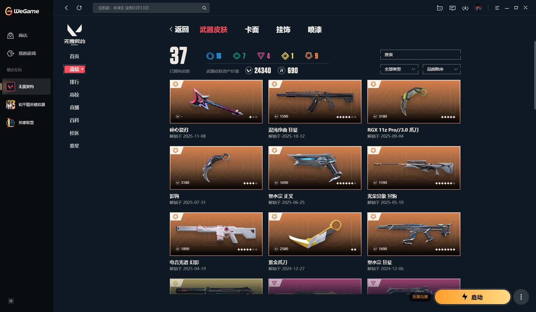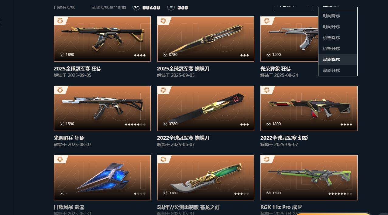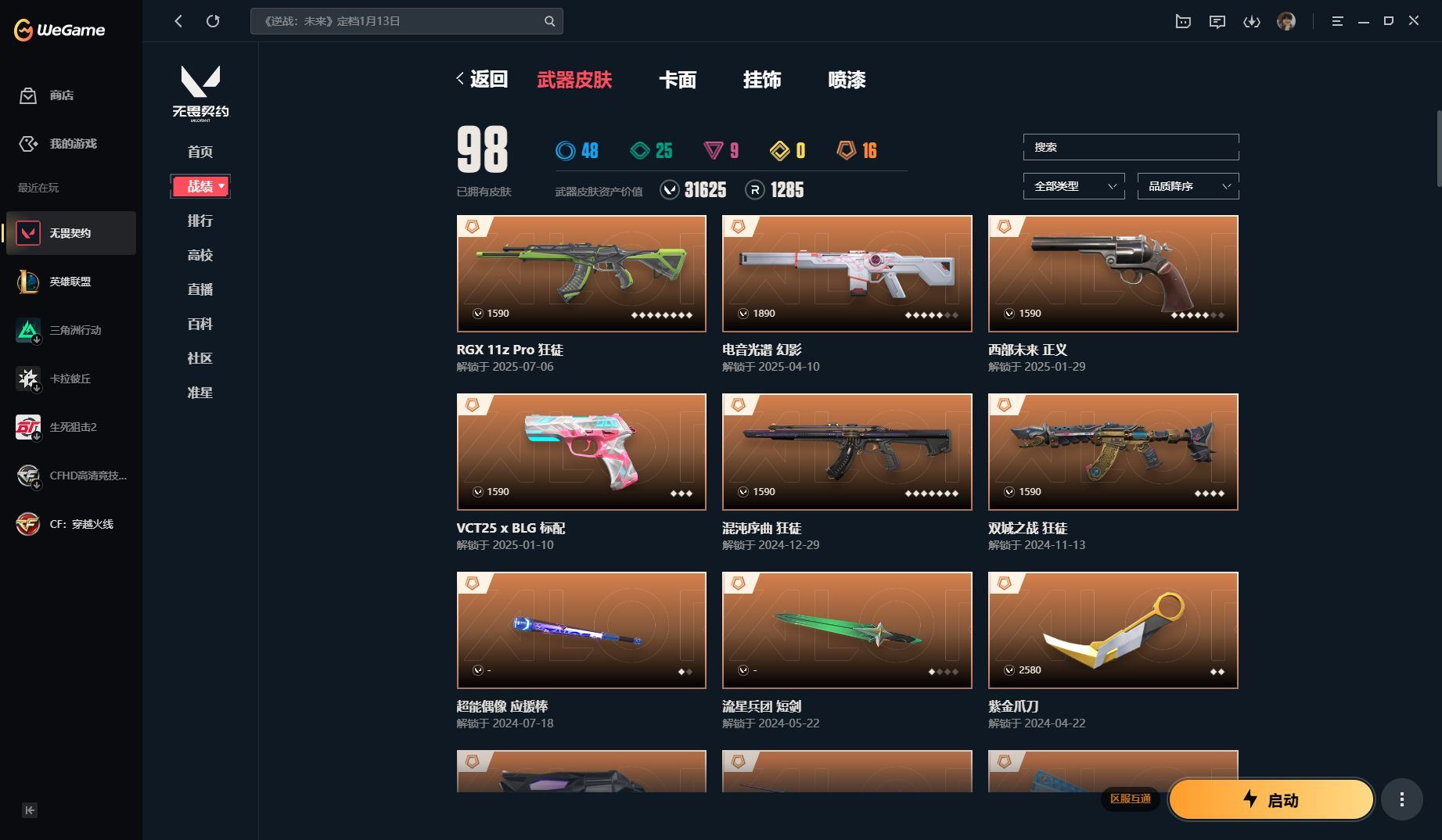 【游戏多多】 【可包人脸】【kf3382】无畏16900库存,VCT 2025 爪刀,落英飞旋,艾沃莉的梦之翼 狂徒,创·纪元 狂徒,塑水宗 正义,西部未来 正义,VCT25 x AG 标配,光明哨兵//2.0 骇灵,神圣领域 战刀