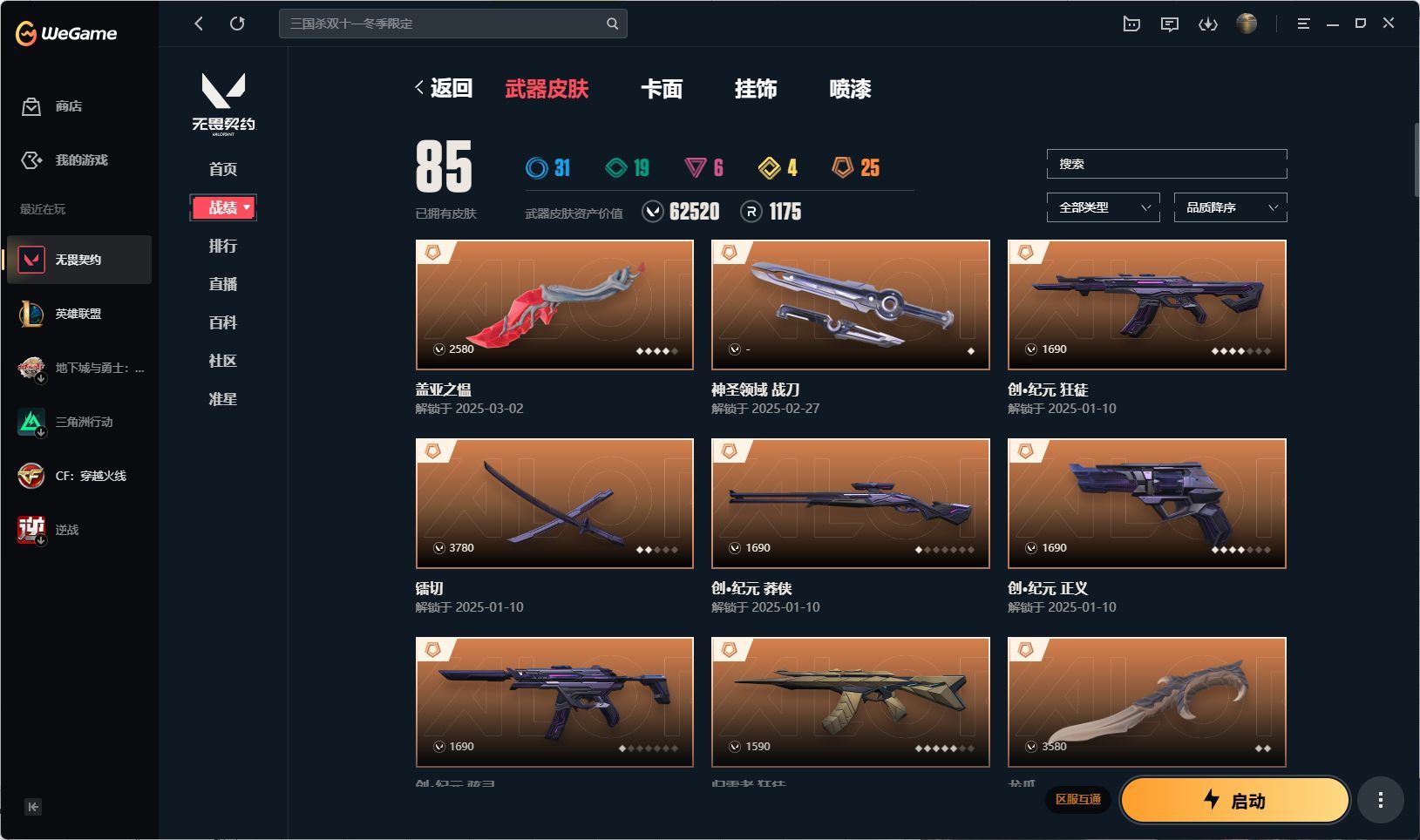 【游戏多多】 【可二次实名】r45150 可二次qq《铂金2》《盖亚之愠+神圣领域战刀+镭切+龙爪+荒土机兵热能力+生物分子解离器+鬼丸国纲+2024全球冠军赛战刀+珍珠棘贝短剑》《创纪元狂徒+归零者狂徒+塑水宗狂徒+混沌序曲狂徒+上古龙炎狂徒+掠影狂徒+紫阙金琅狂徒+盖亚的复仇狂徒》《归零者2.0幻影+2024全球冠军赛幻影+洪荒怒焰幻影+侦察力量幻影》《上古龙炎冥驹+离子武器冥驹+盖世英雄冥驹》《创纪元莽侠+rgx11zPro3.0莽侠+归零者2.0莽侠》《创纪元正义+归零者2.0正义+塑水宗正义》《创纪元骇灵》《归零者獠犬》《归零者2.0戍卫》《上古龙炎狂怒》《上古龙炎判官》各种道具详情看截图、低价出售找回包 赔、截图展示段位不带表实际段位,如赛季更新等不可抗拒因素发生变化、时限道具不保证所剩时间、标题未写送点券默认不送【卖号买号首选亿梦】