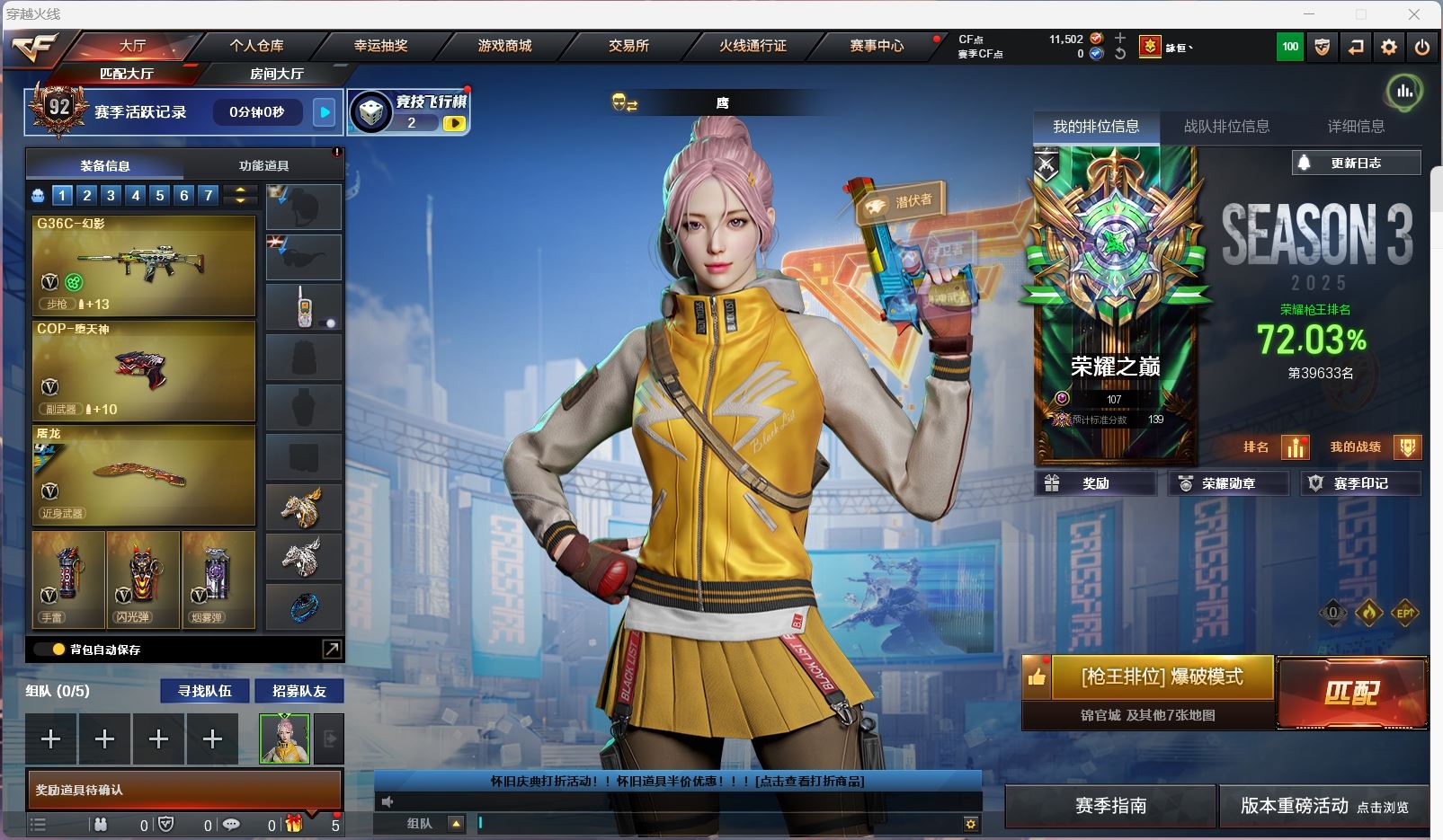 游戏区服:云南 西部战区