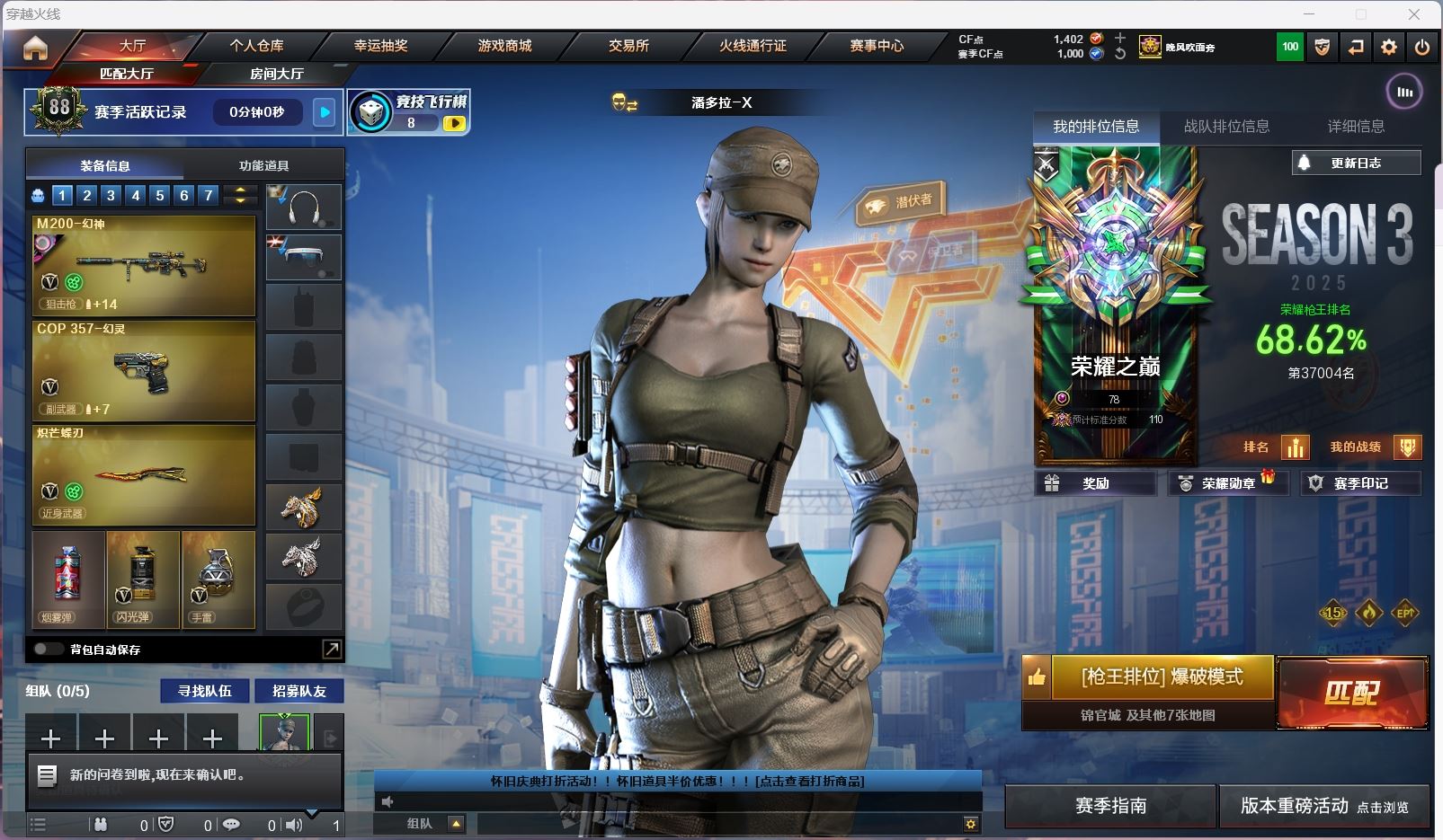 【游戏多多】 【可包人脸】hmc hh AK025926河南一区27v【m200幻神+宠儿+冠军之特】【王者星霆 】【传说梦魇】【qbz金色蔷薇】【火麒麟】【雷神+n9皮肤+荣耀之魄 】【毁灭】【4手枪:修罗*3 冠军之特 】【4刀具:屠龙 麒麟刺*2 龙啸 】【四防角色:王者魅影 】----更多炫彩背包/光效/名片/武器具体看图!截图展示段位不代实际段位,赛季更新等不可抗拒因素发生变化、时限道具不保证所剩时间、标题未写送点券默认不送】【主播担保+安全至上+性价比 买号卖号只选金牌商家一左友】