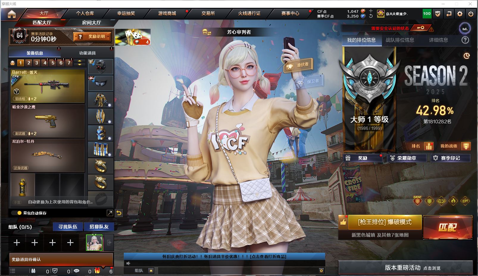 【游戏多多】 【可二次实名】贝64791可排位-可二次平台合作商家【纯白无封号】【上海二区/91V/vip1/2传说】【传说女帝/传说圣灵】【竞技荣光套/8烈龙+死亡之眼】【M200-幻神/幻神音效卡/M200-幻神-黄忠皮】【M200-竞技荣光】【王者星神】【AWM-裁决+2】【荣耀世冠-柯尔特/柯尔特-竞技荣光/USP-雷暴】【Scar Light-白虎】【QBZ03-金色蔷薇】【荣耀世冠-火麒麟/荣耀世冠-雷神/荣耀世冠-龙啸】【HK417-朱雀/白虎-电玩兰兔/M4A1-玫瑰精灵/M4A1-雷霆】【王者之影/王者之魄/王者之怒/】【M4A1-雷神/M4A1-雷神音效卡/雷神-荣耀世冠AG/雷神-荣耀之魄/雷神-白鲨-S14冠军/雷神-星空】【Barrett-毁灭/毁灭音效卡/毁灭-荣耀之怒/毁灭-冠军之怒/毁灭-CFS2018/毁灭-星空】【AK47-火麒麟/火麒麟音效卡/火麒麟-冠军之心/火麒麟-CFSTAR/火麒麟-平天大圣】【M4A1-黑骑士*2/M4A1-黑骑士音效卡】【M4A1-黑龙】【无影-神兵利器】【AWM-天龙-传奇白鲨】【Barrett-极光】【汤姆逊-烈龙+8】【死亡之眼】【M4A1-雷神-精英刀锋/迷你裂空之翼/金色小号】【沙鹰-修罗/修罗-能量核心】【沙鹰-天神+2】【擎天-竞技荣光/擎天-CF网剧冠军】【屠龙/屠龙-荣耀世冠AG/屠龙-秘银】【荣耀世冠-龙啸/龙啸】【电竞教官-云悠悠/王者-葵-貂蝉/兔囡囡/麻雀/青霞仙子/灵狐者-黄金海岸/蜀雪/娟娟/潘多拉-X/斯沃特-X/救世主-X/堕天使】【AA-12-雷霆】【Barrett-朱雀/Barrett-暗月传说】【Colt 1911-大黄蜂+2/新USP-枪王排位奖励+4】【金刚伞-电玩红兔/迷你深渊冰龙】【神圣爆裂者-末日III/激光毁灭者III-白马银枪+2】【轻型军用手斧-镜+3】【高爆手雷-竞技荣光+3/闪光弹-竞技荣光/烟雾弹-竞技荣光+2】【高爆手雷-雷霆+2/闪光弹-雷霆+2/烟雾弹-雷霆+2】【烟雾弹-幻灵】【炫金武士】【超级护目镜/烟雾保护头盔/闪光护目镜2/超级对讲机/超级背包/炫彩背包/防弹头盔4/防弹衣3/C4工具钳2/手雷包2/防化服2】【截图展示段位不代表实际段位,如赛季更新等不/拒因素发生变化、时限道具不保证所剩时间】