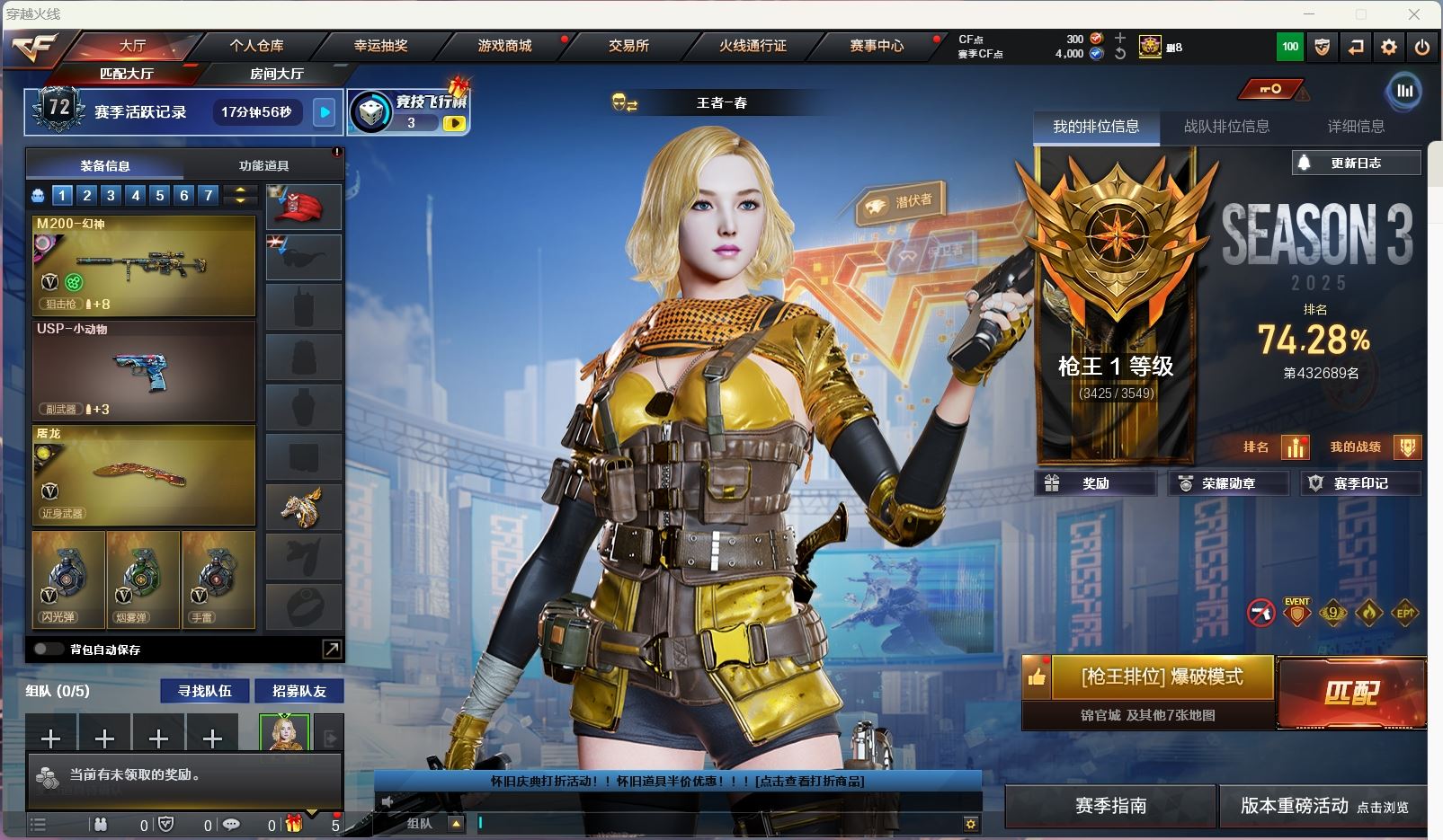【游戏多多】 【可包人脸】hmc AK028134广东一区60v【m200竞技荣光套 +usp雷暴+四防云悠悠】【6烈龙 盘龙 炼狱 死亡之眼】【scar白虎】【幻兽雷】【武器:火麒麟 黑龙 雷神 天龙 毁灭 极光 】【9手枪:修罗*6 天神 沙鹰幻兽 雷暴 竞技荣光 】【10刀具:屠龙*5 龙啸 擎天 竞技荣光 女皇利刃幻兽 】【3雷套:幻兽雷 雷霆套 竞技荣光雷 】【小人枪:火麒麟灵狐 】【四防角色:云悠悠 】----更多炫彩背包/光效/名片/武器具体看图!截图展示段位不代实际段位,赛季更新等不可抗拒因素发生变化、时限道具不保证所剩时间、标题未写送点券默认不送】【主播担保+安全至上+性价比 买号卖号只选金牌商家一左友】