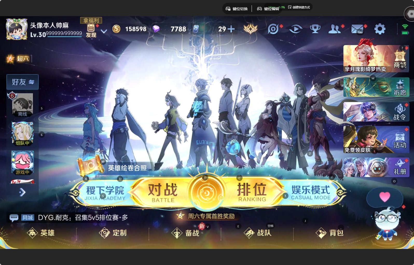 【游戏多多】 【可包人脸】【QQ安卓28区】【V10无双贵族+11.9万积分】【全英雄】【741皮肤距离满皮肤缺六个】【共20水晶+包含一个未用在背包】【10个星传说皮肤】【满典藏·满无双·满珍品·满传说·珍品无双馥梦繁花】【小兵等】【具体看图吧!!!!】
