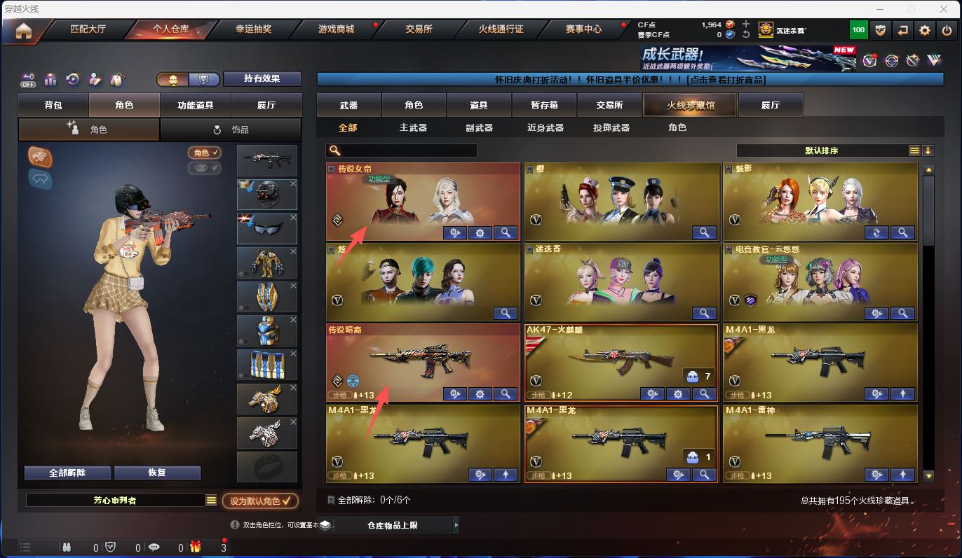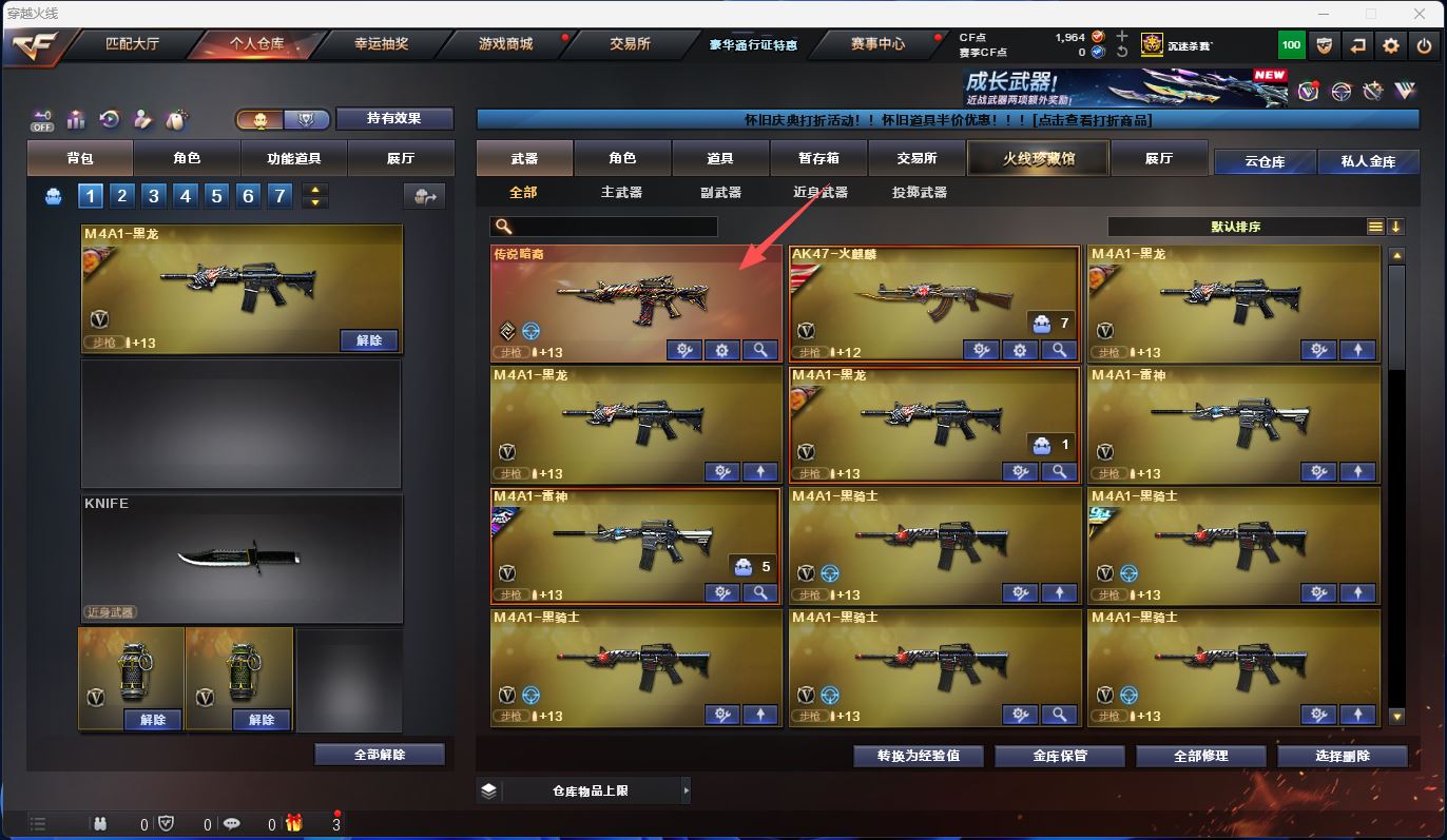 热门武器:火麒麟,雷神,荣耀世冠-火麒麟,荣耀世冠-雷神,传说暗裔,王者白虎,黑骑士,裁决