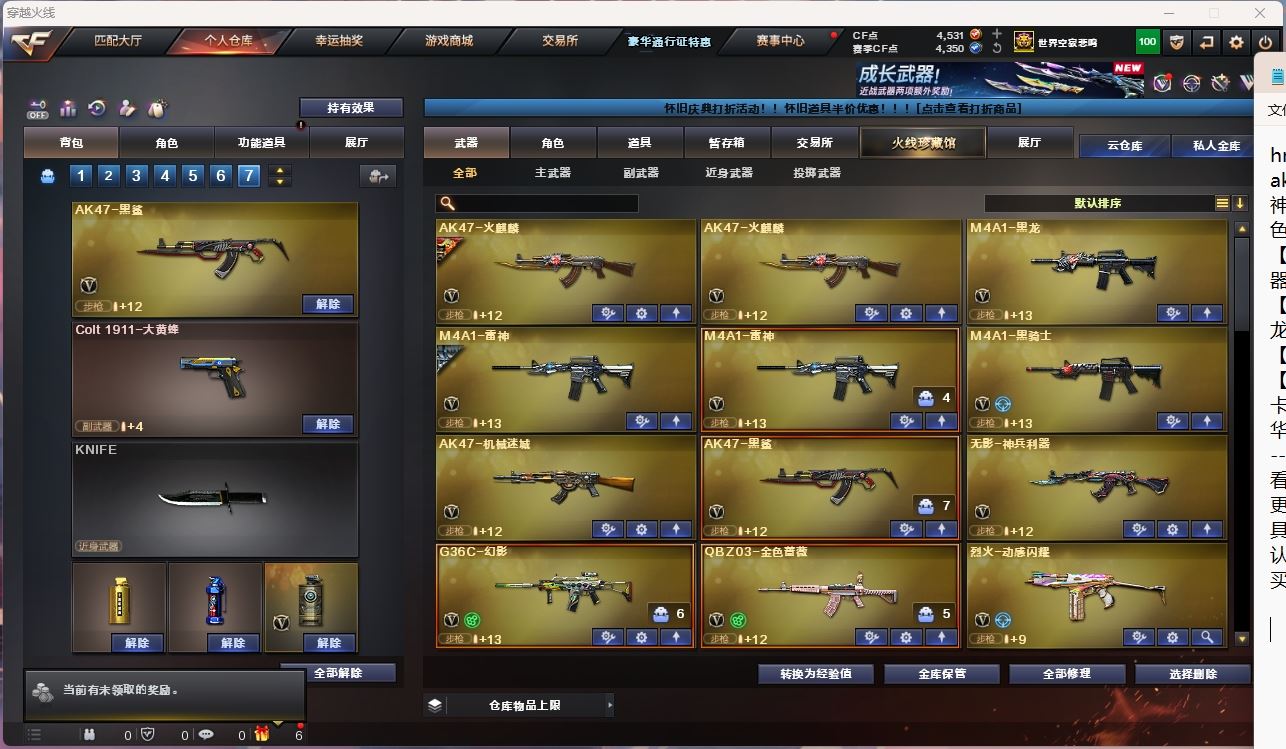 【游戏多多】【穿越火线】【编号:933247】【可包人脸】hmc ak023040四川一区vip6 45v【m200幻神+ag17冠军】【g36c幻影】【qbz金色蔷薇】【火麒麟】【黑龙】【雷神】【黑骑士】【毁灭+卡+cfs2018】 【武器:王者之心 荣耀世冠火麒麟 炼狱】 【3手呛:修罗 天神*2】 【9刀具:屠龙 龙啸*2 擎天 麒麟刺 雷霆 夜魔 】 【3雷套:雷霆雷 夜魔雷 竞技荣光雷 】 【小人呛:天龙乔伊教练 】 【音效卡:毁灭音效卡 】 【角色:隼 王者零华冠丽服 】----更多炫彩背包/光效/名片/武器具体看图!截图展示段位不代实际段位,赛季更新等不可抗拒因素发生变化、时限道具不保证所剩时间、标题未写送点券默认不送】【主播担保+安全至上+性价比 买号卖号只选金牌商家一左友】