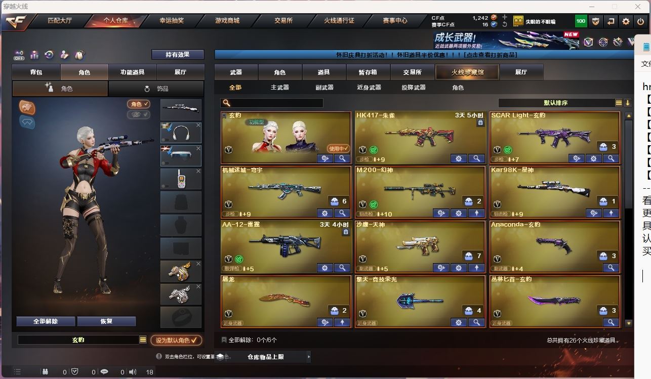 【游戏多多】【穿越火线】【编号:933777】【可包人脸】hmc AK025730北京一区23v【m200幻神】【98k星神】【玄豹套】【武器:scar玄豹 机械迷城 】【手枪:天神 玄豹 】【5刀具:屠龙 竞技荣光 玄豹 麒麟刺 】【3雷套:竞技荣光雷 玄豹雷 *2】【角色:玄豹 零纪元 】----更多炫彩背包/光效/名片/武器具体看图!截图展示段位不代实际段位,赛季更新等不可抗拒因素发生变化、时限道具不保证所剩时间、标题未写送点券默认不送】【主播担保+安全至上+性价比 买号卖号只选金牌商家一左友】