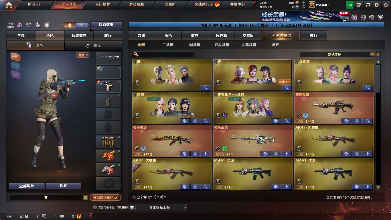 【游戏多多】【穿越火线】【编号:936956】【可包人脸】ljh AK026955 湖南一区 vip6 169v【亮点解析 幻神三件套 6黑骑+白虎】【M200-幻神+音效卡+电流骇客+幻神-AG-CFPLS17】【竞技荣光套+四防云悠悠+USP雷暴】【王者星神】【王者风神】【传说圣灵】【传说暗裔】【传说夜影】【g36c幻影】【ScarLight-白虎+音效卡】【QBZ03-金色蔷薇+音效卡+量子蔷薇】【生化 6盘龙 5炼狱 6烈龙 迷你小钢 蝴蝶 毒蜂】【毁灭+音效卡】【雷暴套】【堕天神套】【火麒麟+音效卡】【黑龙】【雷神+音效卡】【6黑骑士+音效卡】【王者炎心 王者火魄 王者之烈】【黑武士 超新星 黑鲨 hk417-朱雀】【12手枪 修罗*2 天神 usp雷暴 cop堕天神*2 cop幻灵*3 】【20近战 屠龙*4 龙啸*4 擎天 麒麟刺 斩神刀雷暴 幻灵之锋 王者之啸*2 王者之击】【手雷 雷暴雷*7 堕天神*7 幻灵雷*7 竞技荣光*2】【四防 影豹 王者魅影 王者玲珑小乔】【幻神音效卡 ScarLight-白虎音效卡】-----更多炫彩背包/光效/名片/武器具体看图!截图展示段位不代实际段位,赛季更新等不可抗拒因素发生变化、时限道具不保证所剩时间、标题未写送点券默认不送】【主播担保+安全至上+性价比 买号卖号只选金牌商家一左友】
