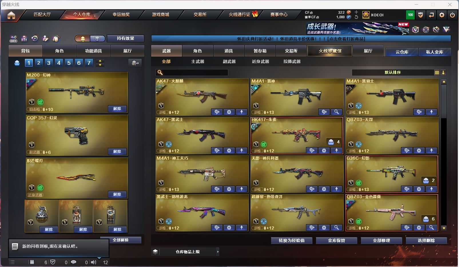 【游戏多多】【穿越火线】【编号:939186】【可包人脸】hmc ak023543 河南一区vip6 65v【亮点解析 幻神5皮带卡 武器齐全 】【m200幻神+音效卡+荣耀世冠白鲨+电流骇客+降龙+黄忠+动感闪耀皮肤+冠军之刃】【98k星神】【g36c幻影】【白虎之魄】【qbz金色蔷薇+卡+呛娘+巅峰荣耀+荣耀世冠白鲨】【hk417朱雀+武当】【qbz天罚 】【火麒麟】【雷神+航星】【黑骑士+卡】【毁灭】【炽芒蝶刃】 【武器:神工天巧 王者之魄 王者霜心 王者之光 烈龙 】 【8手呛:修罗**3 幻灵*2 神工天巧 天神 】 【9刀具:麒麟刺 幻灵之峰 神工天巧 王者之锋 擎天 龙啸 】 【6雷套:幻灵雷 神工天巧雷*5】 【小人呛:雷神呛娘雷安娜 cop白鲨 】 【音效卡:金色蔷薇音效卡 幻神音效卡 黑骑士音效卡 】 【四防角色:晴雅 隼 王者迷迭香 王者凌霄 王者影豹 女主播 】----更多炫彩背包/光效/名片/武器具体看图!截图展示段位不代实际段位,赛季更新等不可抗拒因素发生变化、时限道具不保证所剩时间、标题未写送点券默认不送】【主播担保+安全至上+性价比 买号卖号只选金牌商家一左友】