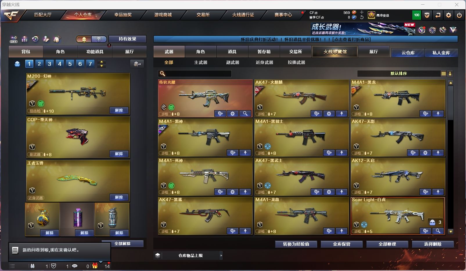 热门武器:传说光耀,QBZ金色蔷薇,Scar白虎