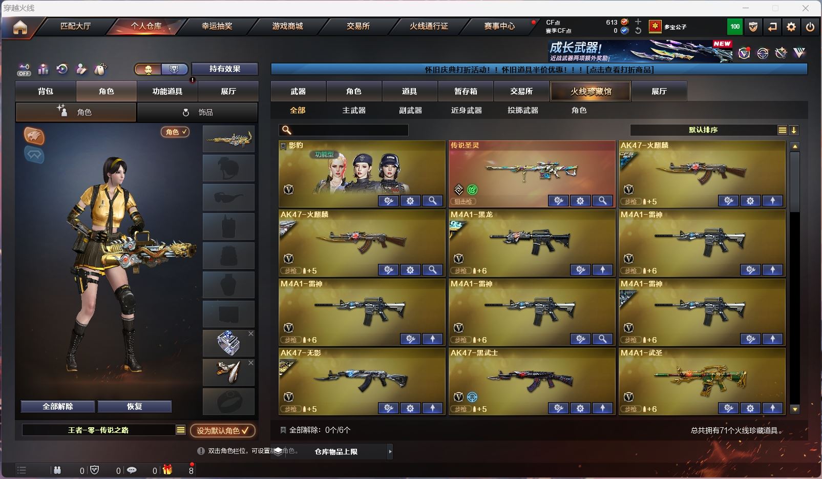 【游戏多多】【穿越火线】【编号:939511】【可包人脸】hmc ak017257 河南一区vip1 70v【m200幻神】【6烈龙 盘龙 炼狱*5 斯太尔蝴蝶】【王者风神】【传说圣灵】【scar白虎】【qbz金色蔷薇】【火麒麟】【黑龙+冠军之武】【雷神】【毁灭】【极光+卡】 【武器:王者之武 王者之势 海王 天龙 】 【3手呛:天神*2 cop雷霆王者】 【7刀具:屠龙*2 龙啸 麒麟刺 斩神刀雷暴 王者之锋 雷霆王者之锋 】 【2雷套:雷暴雷 雷霆王者雷】 【小人呛:雷神精英刀锋 天龙曼陀罗 】 【音效卡: 极光音效卡】 【四防角色:影豹】----更多炫彩背包/光效/名片/武器具体看图!截图展示段位不代实际段位,赛季更新等不可抗拒因素发生变化、时限道具不保证所剩时间、标题未写送点券默认不送】【主播担保+安全至上+性价比 买号卖号只选金牌商家一左友】