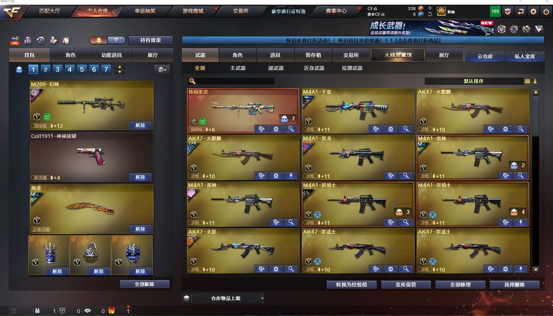 热门武器:火麒麟,雷神,QBZ金色蔷薇,毁灭