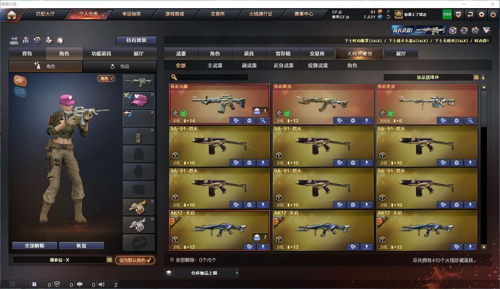 热门武器:火麒麟,雷神,传说光耀,QBZ金色蔷薇,Scar白虎,毁灭