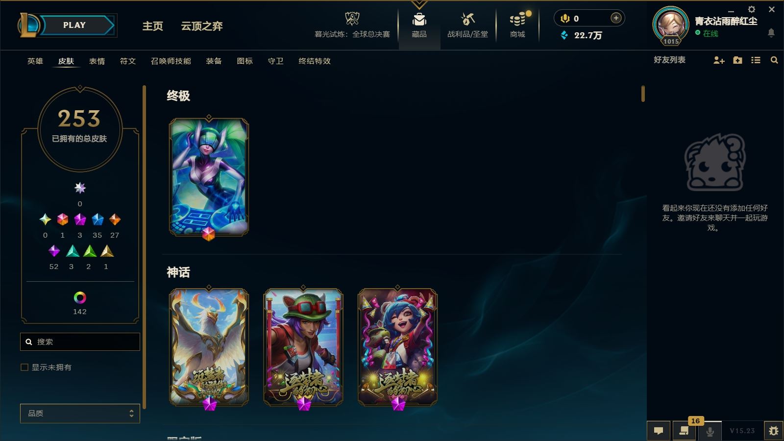 【游戏多多】【英雄联盟】【编号:513115】【可二次实名】hmcAK027733黑色玫瑰 1015等级 171英雄 253皮肤【3神话 35限定 27传说 52史诗 142炫彩】【神话 神凰行者瑞羽圣凰艾尼维亚 十五周年纪念希维尔 十周年纪念安妮】【限定 天龙之子斯莫德 司马懿仲达 胜利之剑亚托克斯 胜利枪神卢锡安 海之歌萨勒芬妮 雪球也能爆炸吉格斯 胜利女神菲奥娜 魄罗骑士瑟庄妮 勇者阿狸 玉剑传说舞龙卫 胜利巨口克格莫 银龙裁决泰隆 FNATIC古拉加斯 警用试作体K9内瑟斯 觅心猎手薇恩 胜利女神奥莉安娜 英勇玩具兵普朗克 胜利女神娑娜 平安夜女神娑娜 暗杀星蒙多 胡桃夹子萨科 胜利凤凰艾尼维亚 点心宝贝阿木木 阿木木主人不要我了 都铎王朝图奇 胜利之王泰达米尔 电玩女神厄运小姐 圣诞狂欢努努和威朗普 暗影沃里克 圣诞开心鬼提莫 胜利剑圣易 防暴天使尔 幸福女神乐芙兰 胜利之运崔斯特 红桃杰克崔斯特----【截图展示段位不代表实际段位,如赛季更 新等不可抗拒因素发生变化、时限道具不保证所剩时间、标题未写送点券默认不送】买号找【左友】