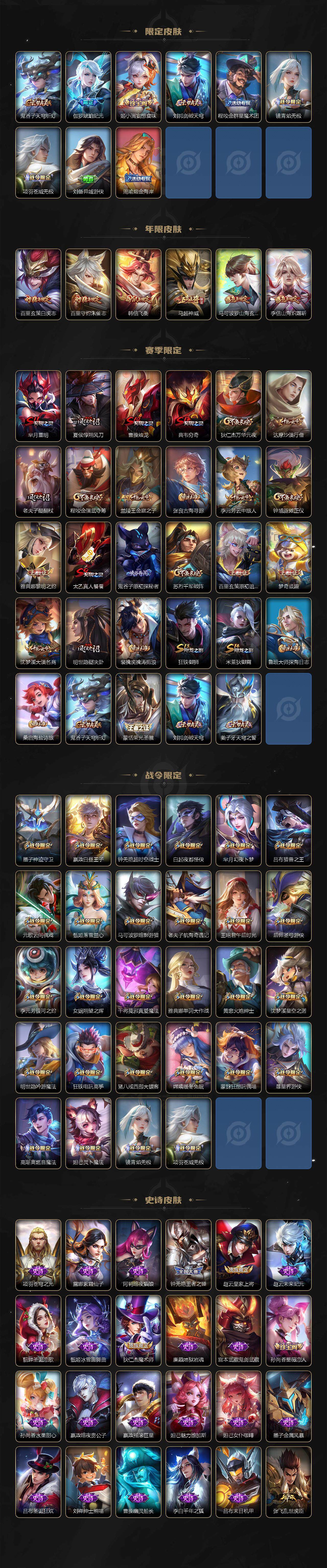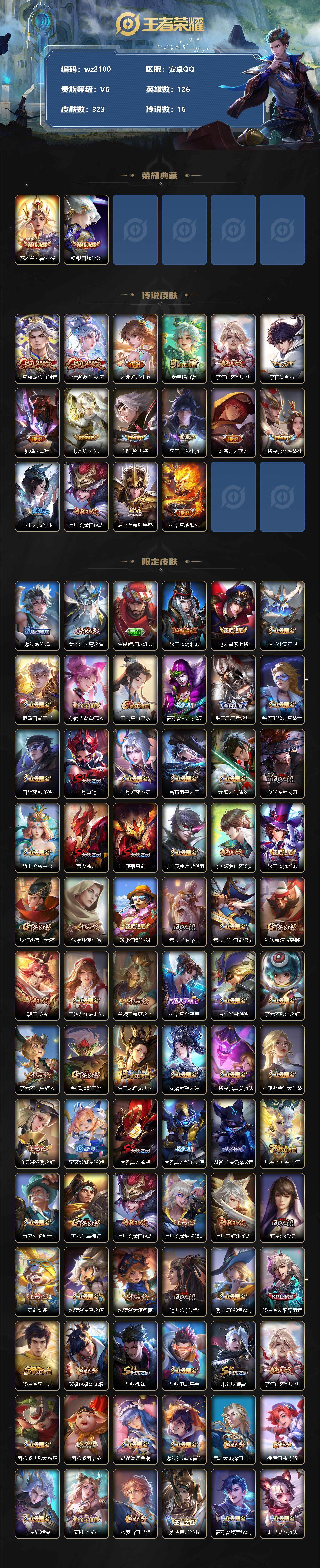 【游戏多多】【王者荣耀】【编号:3338963】【可二次实名】【wz2100】安卓Q-V6-至尊星耀III段位-126英雄-323皮肤-2典藏-0珍品无双-0无双-0珍品传说-16传说-96史诗 【英雄全皮】:李信全皮,猪八戒全皮,蒙恬全皮,影全皮 【荣耀典藏】:花木兰九霄神辉,铠银白咏叹调 【传说皮肤】:司空震愿照山河定,女娲愿照千秋盛,云缨幻光神枪,桑启鸣野蒿,李信山海炽霜斩,李白诗剑行,铠绛天战甲,镜炽阳神光,曜云鹰飞将,李信一念神魔,刘备时之恋人,干将莫邪久胜战神,虞姬云霓雀翎,百里玄策白虎志,后羿黄金射手座,孙悟空地狱火 【限定皮肤】:蒙犽顽岩魄,姜子牙天穹之誓,杨戬破阵退雄兵,狄仁杰阴阳师,赵云皇家上将,墨子神迹守卫,嬴政白昼王子,孙尚香蔷薇恋人,庄周高山流水,高渐离死亡摇滚,钟无艳王者之锤,钟无艳超时空战士,白起夜都怪侠,芈月重明,芈月幻夜卜梦,吕布猎兽之王,元歌云间偶戏,夏侯惇朔风刀,甄姬落雪兰心,曹操烛龙,典韦穷奇,马可波罗暗影游猎,马可波罗山海玄木吟,狄仁杰魔术师,狄仁杰万华元夜,达摩沙漠行僧,项羽海滩派对,老夫子醍醐杖,老夫子航海奇遇记,程咬金演武夺筹,韩信飞衡,王昭君午后时光,兰陵王金庭之子,孙悟空至尊宝,后羿圣弓游侠,李元芳银河之约,李元芳云中旅人,钟馗驱傩正仪,杨玉环遇见飞天,女娲朔望之晖,干将莫邪真爱魔法,雅典娜单词大作战,雅典娜黎明之约,蔡文姬繁星吟游,太乙真人饕餮,太乙真人华丽摇滚,鬼谷子原初探秘者,鬼谷子五谷丰年,黄忠火炮绅士,苏烈千军破阵,百里玄策白虎志,百里玄策原初追逐者,百里守约朱雀志,弈星混沌棋,梦奇顽趣,沈梦溪星空之诺,沈梦溪大漠名商,明世隐疑决卦,明世隐吟游魔法,裴擒虎天狼狩猎者,裴擒虎李小龙,裴擒虎擒涛扼浪,狂铁御狮,狂铁电玩高手,米莱狄御霄,李信山海炽霜斩,猪八戒西部大镖客,猪八戒猪悟能,嫦娥暖冬兔眠,蒙犽狂想玩偶喵,鲁班大师探海日志,桑启海盐诗旅,暃星界游侠,艾琳女武神,张良古海寻踪,蒙恬荣光圣徽,高渐离燃音魔法,妲己灵卜魔法,鬼谷子天穹祈灯,伽罗琥珀纪元,姬小满妄想食味,刘邦剑破天穹,程咬金群星魔术团,镜青焰无极,项羽苍威无极,刘备异域游侠,周瑜熔金海岸 【年限皮肤】:百里玄策白虎志,百里守约朱雀志,韩信飞衡,马超神威,马可波罗山海玄木吟,李信山海炽霜斩 【赛季限定】:芈月重明,夏侯惇朔风刀,曹操烛龙,典韦穷奇,狄仁杰万华元夜,达摩沙漠行僧,老夫子醍醐杖,程咬金演武夺筹,兰陵王金庭之子,张良古海寻踪,李元芳云中旅人,钟馗驱傩正仪,雅典娜黎明之约,太乙真人饕餮,鬼谷子原初探秘者,苏烈千军破阵,百里玄策原初追逐者,弈星混沌棋,梦奇顽趣,沈梦溪大漠名商,明世隐疑决卦,裴擒虎擒涛扼浪,狂铁御狮,米莱狄御霄,鲁班大师探海日志,桑启海盐诗旅,鬼谷子天穹祈灯,蒙恬荣光圣徽,刘邦剑破天穹,姜子牙天穹之誓 【战令限定】:墨子神迹守卫,嬴政白昼王子,钟无艳超时空战士,白起夜都怪侠,芈月幻夜卜梦,吕布猎兽之王,元歌云间偶戏,甄姬落雪兰心,马可波罗暗影游猎,老夫子航海奇遇记,王昭君午后时光,后羿圣弓游侠,李元芳银河之约,女娲朔望之晖,干将莫邪真爱魔法,雅典娜单词大作战,黄忠火炮绅士,沈梦溪星空之诺,明世隐吟游魔法,狂铁电玩高手,猪八戒西部大镖客,嫦娥暖冬兔眠,蒙犽狂想玩偶喵,暃星界游侠,高渐离燃音魔法,妲己灵卜魔法,镜青焰无极,项羽苍威无极 【史诗皮肤】:项羽苍穹之光,露娜紫霞仙子,阿轲暗夜猫娘,钟无艳王者之锤,赵云皇家上将,赵云未来纪元,貂蝉圣诞恋歌,甄姬冰雪圆舞曲,狄仁杰魔术师,廉颇地狱岩魂,宫本武藏鬼剑武藏,孙尚香蔷薇恋人,孙尚香水果甜心,嬴政暗夜贵公子,嬴政摇滚巨星,妲己魅力维加斯,妲己女仆咖啡,墨子金属风暴,吕布圣诞狂欢,刘禅绅士熊喵,曹操幽灵船长,李白千年之狐,吕布末日机甲,张飞乱世虎臣,孙悟空至尊宝,花木兰水晶猎龙者,刘邦德古拉伯爵,夏侯惇乘风破浪,小乔缤纷独角兽,兰陵王暗隐猎兽者,诸葛亮黄金分割率,亚瑟心灵战警,雅典娜冰冠公主,安琪拉心灵骇客,百里守约特工魅影,铠曙光守护者,蔡文姬舞动绿茵,刘禅天才门将,李元芳逐浪之夏,程咬金功夫厨神,白起星夜王子,阿轲节奏热浪,杨玉环遇见飞天,嬴政白昼王子,孙策猫狗日记,大乔猫狗日记,百里守约朱雀志,伽罗箭羽风息,裴擒虎天狼狩猎者,狄仁杰鹰眼统帅,蔡文姬繁星吟游,李元芳银河之约,娜可露露晚萤,韩信飞衡,不知火舞魅语,橘右京修罗,马超神威,孙尚香时之恋人,马可波罗暗影游猎,蒙犽狂想玩偶喵,百里玄策原初追逐者,裴擒虎李小龙,元歌云间偶戏,老夫子航海奇遇记,杨戬天秀启明,干将莫邪真爱魔法,沈梦溪月团寄思,钟馗乐园奇幻夜,猪八戒猪悟能,庄周高山流水,黄忠火炮绅士,雅典娜黎明之约,夏洛特永昼,明世隐吟游魔法,狂铁电玩高手,钟无艳超时空战士,鬼谷子五谷丰年,梦奇顽趣,暃星界游侠,马可波罗山海玄木吟,妲己灵卜魔法,