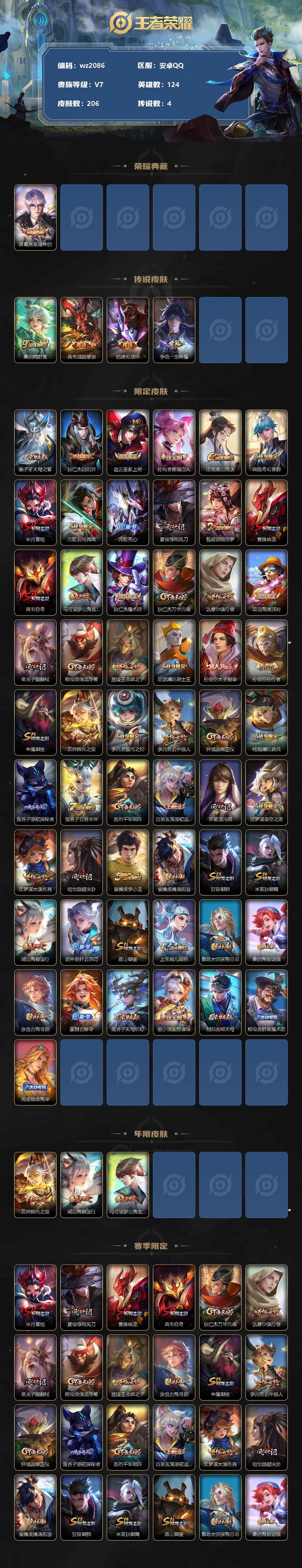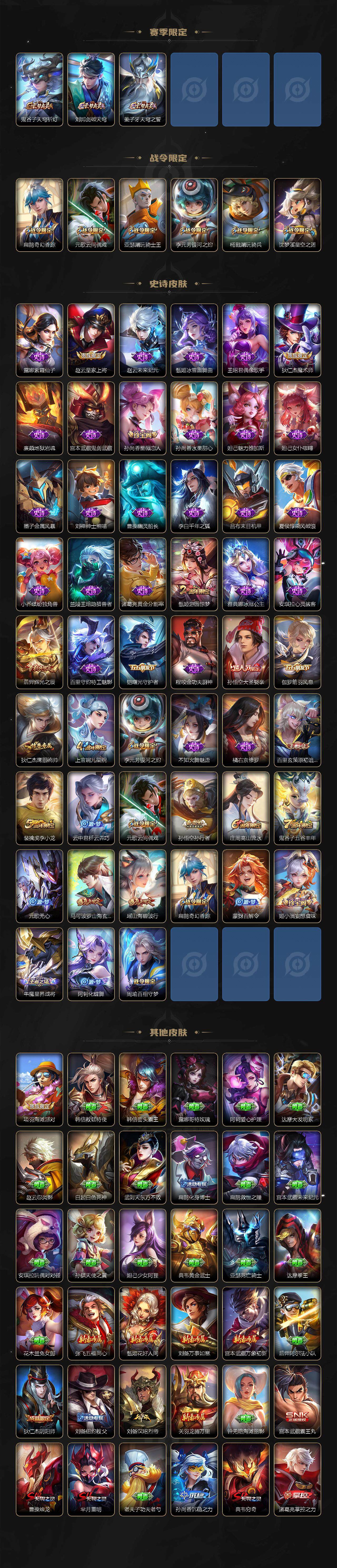 【游戏多多】【王者荣耀】【编号:3338976】【可二次实名】【wz2086】安卓Q-V7-永恒钻石II段位-124英雄-206皮肤-1典藏-0珍品无双-0无双-0珍品传说-4传说-51史诗 【荣耀典藏】:诸葛亮星域神启 【传说皮肤】:桑启鸣野蒿,典韦战鼓燎原,铠绛天战甲,李信一念神魔 【限定皮肤】:姜子牙天穹之誓,狄仁杰阴阳师,赵云皇家上将,孙尚香蔷薇恋人,庄周高山流水,扁鹊奇幻香踪,芈月重明,元歌云间偶戏,元歌无心,夏侯惇朔风刀,甄姬游园惊梦,曹操烛龙,典韦穷奇,马可波罗山海玄木吟,狄仁杰魔术师,狄仁杰万华元夜,达摩沙漠行僧,项羽海滩派对,老夫子醍醐杖,程咬金演武夺筹,兰陵王金庭之子,亚瑟潮玩骑士王,孙悟空大圣娶亲,孙悟空孙行者,牛魔御旌,后羿辉光之辰,李元芳银河之约,李元芳云中旅人,钟馗驱傩正仪,杨戬潮玩骑兵,鬼谷子原初探秘者,鬼谷子五谷丰年,苏烈千军破阵,百里玄策原初追逐者,弈星混沌棋,沈梦溪星空之诺,沈梦溪大漠名商,明世隐疑决卦,裴擒虎李小龙,裴擒虎擒涛扼浪,狂铁御狮,米莱狄御霄,瑶山海碧波行,云中君纤云弄巧,盾山御銮,上官婉儿梁祝,鲁班大师探海日志,桑启海盐诗旅,张良古海寻踪,蒙犽百解令,鬼谷子天穹祈灯,姬小满妄想食味,刘邦剑破天穹,程咬金群星魔术团,周瑜熔金海岸 【年限皮肤】:后羿辉光之辰,瑶山海碧波行,马可波罗山海玄木吟 【赛季限定】:芈月重明,夏侯惇朔风刀,曹操烛龙,典韦穷奇,狄仁杰万华元夜,达摩沙漠行僧,老夫子醍醐杖,程咬金演武夺筹,兰陵王金庭之子,张良古海寻踪,牛魔御旌,李元芳云中旅人,钟馗驱傩正仪,鬼谷子原初探秘者,苏烈千军破阵,百里玄策原初追逐者,弈星混沌棋,沈梦溪大漠名商,明世隐疑决卦,裴擒虎擒涛扼浪,狂铁御狮,米莱狄御霄,盾山御銮,鲁班大师探海日志,桑启海盐诗旅,鬼谷子天穹祈灯,刘邦剑破天穹,姜子牙天穹之誓 【战令限定】:扁鹊奇幻香踪,元歌云间偶戏,亚瑟潮玩骑士王,李元芳银河之约,杨戬潮玩骑兵,沈梦溪星空之诺 【史诗皮肤】:露娜紫霞仙子,赵云皇家上将,赵云未来纪元,甄姬冰雪圆舞曲,王昭君偶像歌手,狄仁杰魔术师,廉颇地狱岩魂,宫本武藏鬼剑武藏,孙尚香蔷薇恋人,孙尚香水果甜心,妲己魅力维加斯,妲己女仆咖啡,墨子金属风暴,刘禅绅士熊喵,曹操幽灵船长,李白千年之狐,吕布末日机甲,夏侯惇乘风破浪,小乔缤纷独角兽,兰陵王暗隐猎兽者,诸葛亮黄金分割率,甄姬游园惊梦,雅典娜冰冠公主,安琪拉心灵骇客,后羿辉光之辰,百里守约特工魅影,铠曙光守护者,程咬金功夫厨神,孙悟空大圣娶亲,伽罗箭羽风息,狄仁杰鹰眼统帅,上官婉儿梁祝,李元芳银河之约,不知火舞魅语,橘右京修罗,百里玄策原初追逐者,裴擒虎李小龙,云中君纤云弄巧,元歌云间偶戏,孙悟空孙行者,庄周高山流水,鬼谷子五谷丰年,元歌无心,马可波罗山海玄木吟,瑶山海碧波行,扁鹊奇幻香踪,蒙犽百解令,姬小满妄想食味,牛魔星界战将,阿轲化蝶舞,周瑜百相守梦 【其他皮肤】:项羽海滩派对,韩信教廷特使,韩信街头霸王,露娜哥特玫瑰,阿轲爱心护理,达摩大发明家,赵云忍炎影,白起白色死神,武则天东方不败,扁鹊化身博士,扁鹊救世之瞳,宫本武藏未来纪元,安琪拉玩偶对对碰,孙膑天使之翼,妲己少女阿狸,典韦黄金武士,亚瑟死亡骑士,达摩拳王,花木兰兔女郎,张飞五福同心,甄姬花好人间,刘备万事如意,宫本武藏万象初新,后羿阿尔法小队,狄仁杰阴阳师,刘备纽约教父,刘备汉昭烈帝,关羽龙腾万里,钟无艳海滩丽影,宫本武藏霸王丸,曹操烛龙,芈月重明,老夫子功夫老勺,孙尚香沉稳之力,典韦穷奇,诸葛亮掌控之力,李白敏锐之力,鬼谷子幻乐之宴,狂铁御狮,苏烈坚韧之力,大乔守护之力,米莱狄御霄,明世隐虹云星官,张良幽兰居士,牛魔御旌,吕布野性能量,盾山御銮,孙膑归虚梦演,沈梦溪鲨炮海盗猫,姜子牙炽热元素使,夏侯惇朔风刀,沈梦溪星空之诺,弈星混沌棋,哪吒次元突破,鲁班七号黑桃队长,明世隐疑决卦,盾山圆桌骑士,老夫子醍醐杖,狂铁特工战影,鬼谷子原初探秘者,狄仁杰万华元夜,亚瑟潮玩骑士王,刘禅秘密基地,露娜瓷语鉴心,程咬金演武夺筹,张良缤纷绘卷,钟馗驱傩正仪,鲁班大师乓乓大师,苏烈千军破阵,达摩沙漠行僧,程咬金无双福将,兰陵王金庭之子,沈梦溪大漠名商,蒙恬蔚蓝守将,李元芳云中旅人,桑启海盐诗旅,海月幻泉雾影,猪八戒潮玩探月行,赵怀真太极少年,裴擒虎擒涛扼浪,杨戬潮玩骑兵,太乙真人劲辣红锅,鲁班大师探海日志,姬小满零食大作战,李元芳妄想特派,张良古海寻踪,鬼谷子天穹祈灯,廉颇功夫炙烤,刘邦剑破天穹,程咬金群星魔术团,姜子牙天穹之誓,周瑜熔金海岸,太乙真人谧流熔炉,西施雪境奇遇,姜子牙星梦巡礼,明世隐景韶洛都,钟馗虚灵犬护,阿古朵布丁狗之约,孙策百相守梦,鲁班七号福禄兄弟,钟无艳生化警戒,貂蝉异域舞娘,花木兰剑舞者,狄仁杰锦衣卫,曹操死神来了,曹操超能战警,孙悟空西部大镖客,后羿精灵王,兰陵