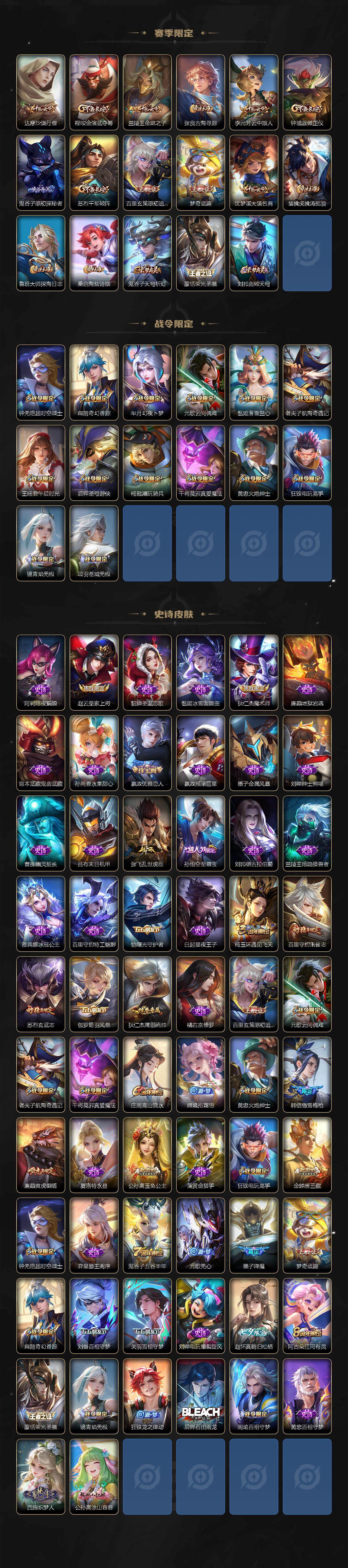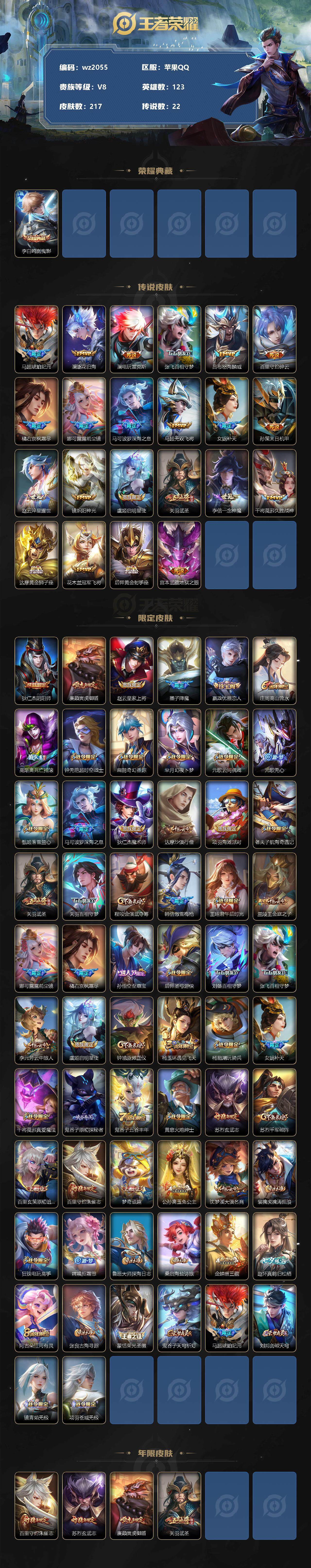 【游戏多多】【王者荣耀】【编号:3338994】【可二次实名】【wz2055】苹果Q-V8-最强王者段位-123英雄-217皮肤-1典藏-0珍品无双-0无双-0珍品传说-22传说-62史诗 【英雄全皮】:橘右京全皮,鬼谷子全皮,蒙恬全皮,空空儿全皮 【荣耀典藏】:李白鸣剑曳影 【传说皮肤】:马超琥珀纪元,澜逐花归海,澜电玩雷克斯,张飞百相守梦,吕布怒海麟威,百里守约碎云,橘右京枫霜尽,娜可露露前尘镜,马可波罗深海之息,马超无双飞将,女娲补天,孙策末日机甲,赵云淬星耀世,镜炽阳神光,虞姬启明星使,关羽武圣,李信一念神魔,干将莫邪久胜战神,达摩黄金狮子座,花木兰冠军飞将,后羿黄金射手座,宫本武藏地狱之眼 【限定皮肤】:狄仁杰阴阳师,廉颇寅虎御盾,赵云皇家上将,墨子降魔,嬴政优雅恋人,庄周高山流水,高渐离死亡摇滚,钟无艳超时空战士,扁鹊奇幻香踪,芈月幻夜卜梦,元歌云间偶戏,元歌无心,甄姬落雪兰心,马可波罗深海之息,狄仁杰魔术师,达摩沙漠行僧,项羽海滩派对,老夫子航海奇遇记,关羽武圣,关羽百相守梦,程咬金演武夺筹,韩信傲雪梅枪,王昭君午后时光,兰陵王金庭之子,娜可露露前尘镜,橘右京枫霜尽,孙悟空至尊宝,后羿圣弓游侠,刘备百相守梦,张飞百相守梦,李元芳云中旅人,虞姬启明星使,钟馗驱傩正仪,杨玉环遇见飞天,杨戬潮玩骑兵,女娲补天,干将莫邪真爱魔法,鬼谷子原初探秘者,鬼谷子五谷丰年,黄忠火炮绅士,苏烈玄武志,苏烈千军破阵,百里玄策原初追逐者,百里守约朱雀志,梦奇顽趣,公孙离玉兔公主,沈梦溪大漠名商,裴擒虎擒涛扼浪,狂铁电玩高手,嫦娥拒霜思,鲁班大师探海日志,桑启海盐诗旅,金蝉唐三藏,赵怀真鹤归松栖,阿古朵江河有灵,张良古海寻踪,蒙恬荣光圣徽,鬼谷子天穹祈灯,马超琥珀纪元,刘邦剑破天穹,镜青焰无极,项羽苍威无极 【年限皮肤】:百里守约朱雀志,苏烈玄武志,廉颇寅虎御盾,关羽武圣 【赛季限定】:达摩沙漠行僧,程咬金演武夺筹,兰陵王金庭之子,张良古海寻踪,李元芳云中旅人,钟馗驱傩正仪,鬼谷子原初探秘者,苏烈千军破阵,百里玄策原初追逐者,梦奇顽趣,沈梦溪大漠名商,裴擒虎擒涛扼浪,鲁班大师探海日志,桑启海盐诗旅,鬼谷子天穹祈灯,蒙恬荣光圣徽,刘邦剑破天穹 【战令限定】:钟无艳超时空战士,扁鹊奇幻香踪,芈月幻夜卜梦,元歌云间偶戏,甄姬落雪兰心,老夫子航海奇遇记,王昭君午后时光,后羿圣弓游侠,杨戬潮玩骑兵,干将莫邪真爱魔法,黄忠火炮绅士,狂铁电玩高手,镜青焰无极,项羽苍威无极 【史诗皮肤】:阿轲暗夜猫娘,赵云皇家上将,貂蝉圣诞恋歌,甄姬冰雪圆舞曲,狄仁杰魔术师,廉颇地狱岩魂,宫本武藏鬼剑武藏,孙尚香水果甜心,嬴政优雅恋人,嬴政摇滚巨星,墨子金属风暴,刘禅绅士熊喵,曹操幽灵船长,吕布末日机甲,张飞乱世虎臣,孙悟空至尊宝,刘邦德古拉伯爵,兰陵王暗隐猎兽者,雅典娜冰冠公主,百里守约特工魅影,铠曙光守护者,白起星夜王子,杨玉环遇见飞天,百里守约朱雀志,苏烈玄武志,伽罗箭羽风息,狄仁杰鹰眼统帅,橘右京修罗,百里玄策原初追逐者,元歌云间偶戏,老夫子航海奇遇记,干将莫邪真爱魔法,庄周高山流水,嫦娥拒霜思,黄忠火炮绅士,韩信傲雪梅枪,廉颇寅虎御盾,夏洛特永昼,公孙离玉兔公主,澜赏金猎手,狂铁电玩高手,金蝉唐三藏,钟无艳超时空战士,弈星滕王阁序,鬼谷子五谷丰年,元歌无心,墨子降魔,梦奇顽趣,扁鹊奇幻香踪,刘备百相守梦,关羽百相守梦,刘禅电玩爆裂旋风,赵怀真鹤归松栖,阿古朵江河有灵,蒙恬荣光圣徽,镜青焰无极,狂铁龙之律动,后羿石田雨龙,周瑜百相守梦,黄忠百相守梦,西施织梦人,公孙离涂山容容 【其他皮肤】:项羽海滩派对,韩信街头霸王,阿轲爱心护理,达摩大发明家,赵云白执事,赵云忍炎影,程咬金星际陆战队,白起白色死神,扁鹊化身博士,安琪拉玩偶对对碰,孙膑天使之翼,妲己少女阿狸,典韦黄金武士,亚瑟死亡骑士,后羿阿尔法小队,狄仁杰阴阳师,高渐离死亡摇滚,关羽龙腾万里,钟无艳海滩丽影,王昭君幻想奇妙夜,狂铁命运角斗场,牛魔制霸全明星,孙尚香沉稳之力,诸葛亮掌控之力,李白敏锐之力,鬼谷子幻乐之宴,明世隐虹云星官,小乔丁香结,吕布野性能量,孙膑归虚梦演,沈梦溪鲨炮海盗猫,狂铁特工战影,鬼谷子原初探秘者,刘禅秘密基地,程咬金演武夺筹,钟馗驱傩正仪,鲁班大师乓乓大师,苏烈千军破阵,后羿圣弓游侠,达摩沙漠行僧,芈月幻夜卜梦,刘邦虎啸剑宗,兰陵王金庭之子,王昭君午后时光,沈梦溪大漠名商,蒙犽胡桃狂想曲,蒙恬蔚蓝守将,甄姬落雪兰心,李元芳云中旅人,戈娅危途狂花,刘备潮玩造梦师,桑启海盐诗旅,海月幻泉雾影,猪八戒潮玩探月行,牛魔牛运亨通,赵怀真太极少年,裴擒虎擒涛扼浪,杨戬潮玩骑兵,莱西奥西部游侠,鲁班大师探海日志,姬小满零食大作战,张良古海寻踪,鬼谷子天穹祈灯,廉颇功夫炙烤,刘邦剑破天穹,项羽苍威无极,亚瑟动物派对,太乙真人谧流熔炉,姜子牙星梦巡礼,明世隐