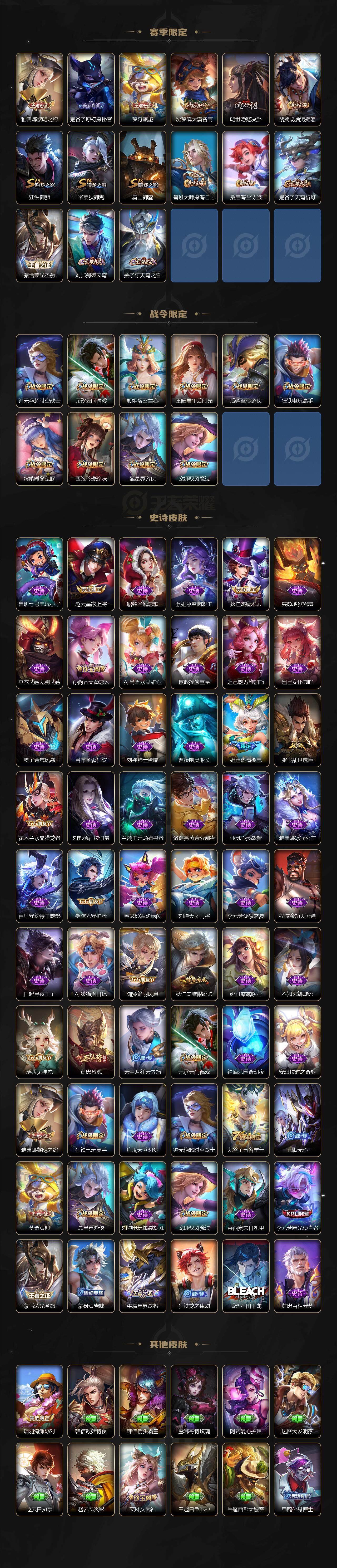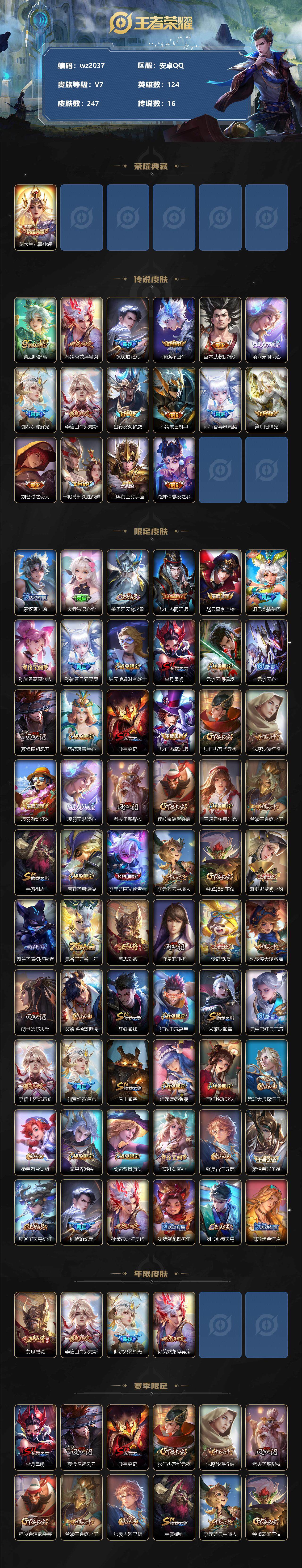 【游戏多多】【王者荣耀】【编号:3339009】【可二次实名】【wz2037】安卓Q-V7-最强王者段位-124英雄-247皮肤-1典藏-0珍品无双-0无双-0珍品传说-16传说-60史诗 【英雄全皮】:鬼谷子全皮,狂铁全皮,空空儿全皮 【荣耀典藏】:花木兰九霄神辉 【传说皮肤】:桑启鸣野蒿,孙策乘龙淬吴钩,铠琥珀纪元,澜逐花归海,宫本武藏惊梅引,项羽无限倾心,伽罗炽翼辉光,李信山海炽霜斩,吕布怒海麟威,孙策末日机甲,孙尚香异界灵契,镜炽阳神光,刘备时之恋人,干将莫邪久胜战神,后羿黄金射手座,貂蝉仲夏夜之梦 【限定皮肤】:蒙犽顽岩魄,大乔绒语心约,姜子牙天穹之誓,狄仁杰阴阳师,赵云皇家上将,妲己热情桑巴,孙尚香蔷薇恋人,孙尚香异界灵契,钟无艳超时空战士,芈月重明,元歌云间偶戏,元歌无心,夏侯惇朔风刀,甄姬落雪兰心,典韦穷奇,狄仁杰魔术师,狄仁杰万华元夜,达摩沙漠行僧,项羽海滩派对,项羽无限倾心,老夫子醍醐杖,程咬金演武夺筹,王昭君午后时光,兰陵王金庭之子,牛魔御旌,后羿圣弓游侠,李元芳匿光侦查者,李元芳云中旅人,钟馗驱傩正仪,雅典娜黎明之约,鬼谷子原初探秘者,鬼谷子五谷丰年,黄忠烈魂,弈星混沌棋,梦奇顽趣,沈梦溪大漠名商,明世隐疑决卦,裴擒虎擒涛扼浪,狂铁御狮,狂铁电玩高手,米莱狄御霄,云中君纤云弄巧,李信山海炽霜斩,伽罗炽翼辉光,盾山御銮,嫦娥暖冬兔眠,西施玲珑珍味,鲁班大师探海日志,桑启海盐诗旅,暃星界游侠,戈娅驭风魔法,艾琳女武神,张良古海寻踪,蒙恬荣光圣徽,鬼谷子天穹祈灯,铠琥珀纪元,孙策乘龙淬吴钩,沈梦溪龙舞盛年,刘邦剑破天穹,周瑜熔金海岸 【年限皮肤】:黄忠烈魂,李信山海炽霜斩,伽罗炽翼辉光,孙策乘龙淬吴钩 【赛季限定】:芈月重明,夏侯惇朔风刀,典韦穷奇,狄仁杰万华元夜,达摩沙漠行僧,老夫子醍醐杖,程咬金演武夺筹,兰陵王金庭之子,张良古海寻踪,牛魔御旌,李元芳云中旅人,钟馗驱傩正仪,雅典娜黎明之约,鬼谷子原初探秘者,弈星混沌棋,梦奇顽趣,沈梦溪大漠名商,明世隐疑决卦,裴擒虎擒涛扼浪,狂铁御狮,米莱狄御霄,盾山御銮,鲁班大师探海日志,桑启海盐诗旅,鬼谷子天穹祈灯,蒙恬荣光圣徽,刘邦剑破天穹,姜子牙天穹之誓 【战令限定】:钟无艳超时空战士,元歌云间偶戏,甄姬落雪兰心,王昭君午后时光,后羿圣弓游侠,狂铁电玩高手,嫦娥暖冬兔眠,西施玲珑珍味,暃星界游侠,戈娅驭风魔法 【史诗皮肤】:鲁班七号电玩小子,赵云皇家上将,貂蝉圣诞恋歌,甄姬冰雪圆舞曲,狄仁杰魔术师,廉颇地狱岩魂,宫本武藏鬼剑武藏,孙尚香蔷薇恋人,孙尚香水果甜心,嬴政摇滚巨星,妲己魅力维加斯,妲己女仆咖啡,墨子金属风暴,吕布圣诞狂欢,刘禅绅士熊喵,曹操幽灵船长,妲己热情桑巴,张飞乱世虎臣,花木兰水晶猎龙者,刘邦德古拉伯爵,兰陵王暗隐猎兽者,诸葛亮黄金分割率,亚瑟心灵战警,雅典娜冰冠公主,百里守约特工魅影,铠曙光守护者,蔡文姬舞动绿茵,刘禅天才门将,李元芳逐浪之夏,程咬金功夫厨神,白起星夜王子,孙策猫狗日记,伽罗箭羽风息,狄仁杰鹰眼统帅,娜可露露晚萤,不知火舞魅语,瑶遇见神鹿,黄忠烈魂,云中君纤云弄巧,元歌云间偶戏,钟馗乐园奇幻夜,安琪拉时之奇旅,雅典娜黎明之约,狂铁电玩高手,庄周天秀幻梦,钟无艳超时空战士,鬼谷子五谷丰年,元歌无心,梦奇顽趣,暃星界游侠,刘禅电玩爆裂旋风,戈娅驭风魔法,莱西奥末日机甲,李元芳匿光侦查者,蒙恬荣光圣徽,蒙犽顽岩魄,牛魔星界战将,狂铁龙之律动,后羿石田雨龙,黄忠百相守梦 【其他皮肤】:项羽海滩派对,韩信教廷特使,韩信街头霸王,露娜哥特玫瑰,阿轲爱心护理,达摩大发明家,赵云白执事,赵云忍炎影,艾琳女武神,白起白色死神,牛魔西部大镖客,扁鹊化身博士,扁鹊救世之瞳,宫本武藏未来纪元,安琪拉玩偶对对碰,孙膑天使之翼,姜子牙时尚教父,妲己少女阿狸,典韦黄金武士,亚瑟死亡骑士,达摩拳王,花木兰兔女郎,张飞五福同心,甄姬花好人间,刘备万事如意,宫本武藏万象初新,后羿阿尔法小队,狄仁杰阴阳师,刘备纽约教父,关羽龙腾万里,墨子进击墨子号,钟无艳海滩丽影,王昭君幻想奇妙夜,芈月重明,狂铁命运角斗场,老夫子功夫老勺,孙尚香沉稳之力,典韦穷奇,诸葛亮掌控之力,鬼谷子幻乐之宴,狂铁御狮,苏烈坚韧之力,大乔守护之力,米莱狄御霄,明世隐虹云星官,牛魔御旌,小乔丁香结,吕布野性能量,盾山御銮,孙膑归虚梦演,沈梦溪鲨炮海盗猫,姜子牙炽热元素使,夏侯惇朔风刀,弈星混沌棋,哪吒次元突破,明世隐疑决卦,盾山圆桌骑士,老夫子醍醐杖,狂铁特工战影,鬼谷子原初探秘者,狄仁杰万华元夜,刘禅秘密基地,程咬金演武夺筹,张良缤纷绘卷,盘古重装意志,钟馗驱傩正仪,鲁班大师乓乓大师,后羿圣弓游侠,达摩沙漠行僧,程咬金无双福将,兰陵王金庭之子,刘禅唤灵魔甲,王昭君午后时光,沈梦溪大漠名商,甄姬落雪兰心,李元芳云中旅人,桑启海盐诗旅,嫦娥暖冬兔眠,海月幻泉雾