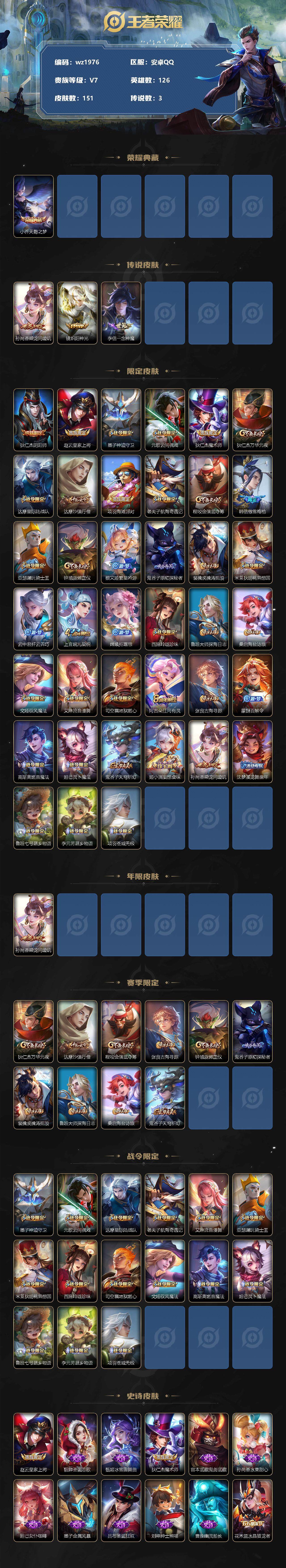 【游戏多多】【王者荣耀】【编号:3339063】【可二次实名】【wz1976】安卓Q-V7-永恒钻石V段位-126英雄-151皮肤-1典藏-0珍品无双-0无双-0珍品传说-3传说-43史诗 【英雄全皮】:空空儿全皮 【荣耀典藏】:小乔天鹅之梦 【传说皮肤】:孙尚香乘龙问璇玑,镜炽阳神光,李信一念神魔 【限定皮肤】:狄仁杰阴阳师,赵云皇家上将,墨子神迹守卫,元歌云间偶戏,狄仁杰魔术师,狄仁杰万华元夜,达摩星际陆战队,达摩沙漠行僧,项羽海滩派对,老夫子航海奇遇记,程咬金演武夺筹,韩信傲雪梅枪,亚瑟潮玩骑士王,钟馗驱傩正仪,蔡文姬繁星吟游,鬼谷子原初探秘者,裴擒虎擒涛扼浪,米莱狄胡桃异想国,云中君纤云弄巧,上官婉儿梁祝,嫦娥拒霜思,西施玲珑珍味,鲁班大师探海日志,桑启海盐诗旅,戈娅驭风魔法,艾琳流音漫舞,司空震地狱燃心,阿古朵江河有灵,张良古海寻踪,蒙犽百解令,高渐离燃音魔法,妲己灵卜魔法,鬼谷子天穹祈灯,姬小满妄想食味,孙尚香乘龙问璇玑,沈梦溪龙舞盛年,鲁班七号蔬乡物语,李元芳蔬乡物语,项羽苍威无极 【年限皮肤】:孙尚香乘龙问璇玑 【赛季限定】:狄仁杰万华元夜,达摩沙漠行僧,程咬金演武夺筹,张良古海寻踪,钟馗驱傩正仪,鬼谷子原初探秘者,裴擒虎擒涛扼浪,鲁班大师探海日志,桑启海盐诗旅,鬼谷子天穹祈灯 【战令限定】:墨子神迹守卫,元歌云间偶戏,达摩星际陆战队,老夫子航海奇遇记,艾琳流音漫舞,亚瑟潮玩骑士王,米莱狄胡桃异想国,西施玲珑珍味,司空震地狱燃心,戈娅驭风魔法,高渐离燃音魔法,妲己灵卜魔法,鲁班七号蔬乡物语,李元芳蔬乡物语,项羽苍威无极 【史诗皮肤】:赵云皇家上将,貂蝉圣诞恋歌,甄姬冰雪圆舞曲,狄仁杰魔术师,宫本武藏鬼剑武藏,孙尚香水果甜心,妲己女仆咖啡,墨子金属风暴,吕布圣诞狂欢,刘禅绅士熊喵,曹操幽灵船长,花木兰水晶猎龙者,刘邦德古拉伯爵,夏侯惇乘风破浪,小乔缤纷独角兽,诸葛亮黄金分割率,百里守约特工魅影,铠曙光守护者,李元芳逐浪之夏,程咬金功夫厨神,白起星夜王子,伽罗箭羽风息,狄仁杰鹰眼统帅,上官婉儿梁祝,蔡文姬繁星吟游,不知火舞魅语,橘右京修罗,云中君纤云弄巧,元歌云间偶戏,米莱狄胡桃异想国,老夫子航海奇遇记,安琪拉时之奇旅,嫦娥拒霜思,韩信傲雪梅枪,戈娅驭风魔法,司空震地狱燃心,阿古朵江河有灵,蒙犽百解令,妲己灵卜魔法,高渐离燃音魔法,姬小满妄想食味,鲁班七号蔬乡物语,周瑜百相守梦,公孙离涂山容容 【其他皮肤】:项羽海滩派对,韩信街头霸王,阿轲爱心护理,赵云忍炎影,芈月红桃皇后,白起白色死神,扁鹊化身博士,安琪拉玩偶对对碰,孙膑天使之翼,姜子牙时尚教父,妲己少女阿狸,花木兰兔女郎,张飞五福同心,甄姬花好人间,刘备万事如意,狄仁杰阴阳师,刘备汉昭烈帝,关羽龙腾万里,王昭君幻想奇妙夜,孙尚香沉稳之力,诸葛亮掌控之力,苏烈坚韧之力,明世隐虹云星官,庄周奇妙博物学,孙膑归虚梦演,姜子牙炽热元素使,盾山圆桌骑士,狂铁特工战影,鬼谷子原初探秘者,狄仁杰万华元夜,亚瑟潮玩骑士王,露娜瓷语鉴心,达摩星际陆战队,程咬金演武夺筹,张良缤纷绘卷,钟馗驱傩正仪,墨子神迹守卫,鲁班大师乓乓大师,妲己紫罗兰之誓,达摩沙漠行僧,蒙恬蔚蓝守将,桑启海盐诗旅,猪八戒潮玩探月行,裴擒虎擒涛扼浪,太乙真人劲辣红锅,莱西奥西部游侠,鲁班大师探海日志,西施玲珑珍味,姬小满零食大作战,李元芳妄想特派,哪吒热血海滩,艾琳流音漫舞,张良古海寻踪,钟无艳聚星闪耀,海月王牌新星,亚连破局者,兰陵王幻夜行动,曹操决胜大满贯,后羿完美运算,程咬金暖冬絮语,鬼谷子天穹祈灯,妲己灵卜魔法,海诺时空谍影,朵莉亚金色潮汐,亚瑟鸿运当头,沈梦溪龙舞盛年,钟无艳春野之旅,李元芳蔬乡物语,扁鹊无尽旅途,盘古经纬探寻者,项羽苍威无极,钟馗虚灵犬护,甄姬逆浪荇歌,孙策百相守梦,空空儿戏梦巡演,莱西奥踏浪烽翎,鬼谷子克喵,哪吒罗小黑战记,高渐离金属狂潮,项羽帝国元帅,貂蝉异域舞娘,花木兰剑舞者,曹操超能战警,孙悟空西部大镖客,兰陵王隐刃,李元芳特种部队,刘邦圣殿之光,马可波罗激情绿茵,百里守约绝影神枪,百里玄策威尼斯狂欢,裴擒虎街头旋风,弈星踏雪寻梅,米莱狄精准探案法,元歌午夜歌剧院,沈梦溪棒球奇才,李信灼热之刃,盘古创世神祝,瑶森,曜归虚梦演,马超幸存者,镜冰刃幻境,澜孤猎,司空震启蛰,云缨赤焰之缨 【内测皮肤】:狂铁特工战影 【营地ID】:1857478013