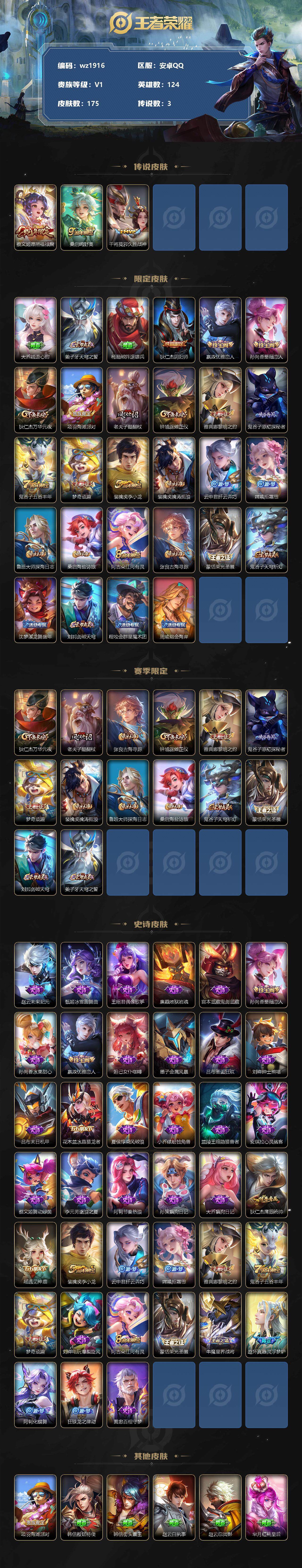 【游戏多多】【王者荣耀】【编号:3339100】【可二次实名】【wz1916】安卓Q-V1-最强王者段位-124英雄-175皮肤-0典藏-0珍品无双-0无双-0珍品传说-3传说-39史诗 【英雄全皮】:鬼谷子全皮,影全皮 【传说皮肤】:蔡文姬愿照福禄聚,桑启鸣野蒿,干将莫邪久胜战神 【限定皮肤】:大乔绒语心约,姜子牙天穹之誓,杨戬破阵退雄兵,狄仁杰阴阳师,嬴政优雅恋人,孙尚香蔷薇恋人,狄仁杰万华元夜,项羽海滩派对,老夫子醍醐杖,钟馗驱傩正仪,雅典娜黎明之约,鬼谷子原初探秘者,鬼谷子五谷丰年,梦奇顽趣,裴擒虎李小龙,裴擒虎擒涛扼浪,云中君纤云弄巧,嫦娥拒霜思,鲁班大师探海日志,桑启海盐诗旅,阿古朵江河有灵,张良古海寻踪,蒙恬荣光圣徽,鬼谷子天穹祈灯,沈梦溪龙舞盛年,刘邦剑破天穹,程咬金群星魔术团,周瑜熔金海岸 【赛季限定】:狄仁杰万华元夜,老夫子醍醐杖,张良古海寻踪,钟馗驱傩正仪,雅典娜黎明之约,鬼谷子原初探秘者,梦奇顽趣,裴擒虎擒涛扼浪,鲁班大师探海日志,桑启海盐诗旅,鬼谷子天穹祈灯,蒙恬荣光圣徽,刘邦剑破天穹,姜子牙天穹之誓 【史诗皮肤】:赵云未来纪元,甄姬冰雪圆舞曲,王昭君偶像歌手,廉颇地狱岩魂,宫本武藏鬼剑武藏,孙尚香蔷薇恋人,孙尚香水果甜心,嬴政优雅恋人,妲己女仆咖啡,墨子金属风暴,吕布圣诞狂欢,刘禅绅士熊喵,吕布末日机甲,花木兰水晶猎龙者,夏侯惇乘风破浪,小乔缤纷独角兽,兰陵王暗隐猎兽者,安琪拉心灵骇客,蔡文姬舞动绿茵,李元芳逐浪之夏,阿轲节奏热浪,孙策猫狗日记,大乔猫狗日记,狄仁杰鹰眼统帅,瑶遇见神鹿,裴擒虎李小龙,云中君纤云弄巧,嫦娥拒霜思,雅典娜黎明之约,鬼谷子五谷丰年,梦奇顽趣,刘禅电玩爆裂旋风,阿古朵江河有灵,蒙恬荣光圣徽,牛魔星界战将,赵怀真器灵浮梦炉,阿轲化蝶舞,狂铁龙之律动,黄忠百相守梦 【其他皮肤】:项羽海滩派对,韩信教廷特使,韩信街头霸王,赵云白执事,赵云忍炎影,芈月红桃皇后,白起白色死神,牛魔西部大镖客,扁鹊化身博士,扁鹊救世之瞳,宫本武藏未来纪元,安琪拉玩偶对对碰,孙膑天使之翼,姜子牙时尚教父,妲己少女阿狸,典韦黄金武士,达摩拳王,花木兰兔女郎,张飞五福同心,甄姬花好人间,刘备万事如意,狄仁杰阴阳师,刘备汉昭烈帝,关羽龙腾万里,钟无艳海滩丽影,狂铁命运角斗场,老夫子功夫老勺,鬼谷子幻乐之宴,苏烈坚韧之力,大乔守护之力,明世隐虹云星官,小乔丁香结,孙膑归虚梦演,沈梦溪鲨炮海盗猫,哪吒次元突破,盾山圆桌骑士,老夫子醍醐杖,狂铁特工战影,鬼谷子原初探秘者,狄仁杰万华元夜,刘禅秘密基地,杨戬次元傲视,钟馗驱傩正仪,鲁班大师乓乓大师,程咬金无双福将,刘禅唤灵魔甲,蒙恬蔚蓝守将,桑启海盐诗旅,猪八戒潮玩探月行,裴擒虎擒涛扼浪,太乙真人劲辣红锅,莱西奥西部游侠,鲁班大师探海日志,李元芳妄想特派,张良古海寻踪,后羿完美运算,鬼谷子天穹祈灯,嫦娥漠中幻影,朵莉亚金色潮汐,廉颇功夫炙烤,沈梦溪龙舞盛年,钟无艳春野之旅,刘邦剑破天穹,程咬金群星魔术团,大司命暗都幽影,杨戬破阵退雄兵,姜子牙天穹之誓,周瑜熔金海岸,大乔绒语心约,盘古敬我三分,东皇太一噬灭天穹,亚瑟动物派对,干将莫邪雾都夜雨,吕布逐霄战戟,苍苍林狼骑,太乙真人谧流熔炉,典韦铁骨偃魂,影魅影绮裳,西施雪境奇遇,姜子牙星梦巡礼,东皇太一金福满堂,达摩爆裂喵拳,少司缘灵卦秘语,明世隐景韶洛都,戈娅玫蓝誓约,刘备浪漫序章,钟馗虚灵犬护,苏烈春野闲踪,张良灵野札记,阿古朵布丁狗之约,露娜命运加冕,姬小满小满鸭,白起死霸装,甄姬逆浪荇歌,庄周锦麟游梦,莱西奥踏浪烽翎,鬼谷子克喵,鲁班七号福禄兄弟,鲁班七号木偶奇遇记,高渐离金属狂潮,貂蝉异域舞娘,王昭君精灵公主,狄仁杰锦衣卫,小乔万圣前夜,孙膑未来旅行,后羿精灵王,刘禅英喵野望,钟馗地府判官,刘邦圣殿之光,虞姬加勒比小姐,关羽天启骑士,蔡文姬蔷薇王座,马可波罗激情绿茵,苍维京掠夺者,杨戬埃及法老,诸葛亮星航指挥官,大乔伊势巫女,东皇太一东海龙王,鬼谷子阿摩司公爵,铠龙域领主,苏烈爱与和平,女娲尼罗河女神,明世隐占星师,弈星踏雪寻梅,盾山极冰防御线,李信灼热之刃,盘古创世神祝,瑶森,阿古朵熊喵少女,澜孤猎,云缨赤焰之缨,金蝉前尘,桑启画中游 【内测皮肤】:孙尚香蔷薇恋人,嬴政优雅恋人,狂铁特工战影 【营地ID】:1882535189