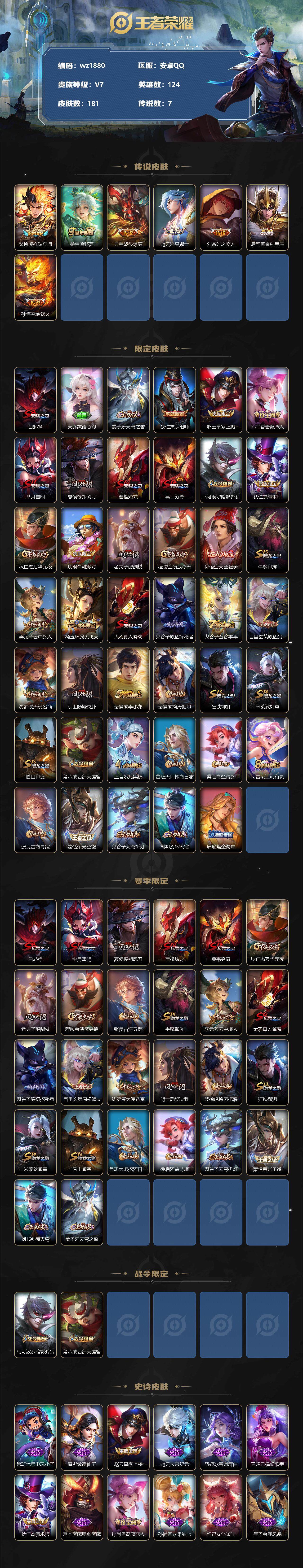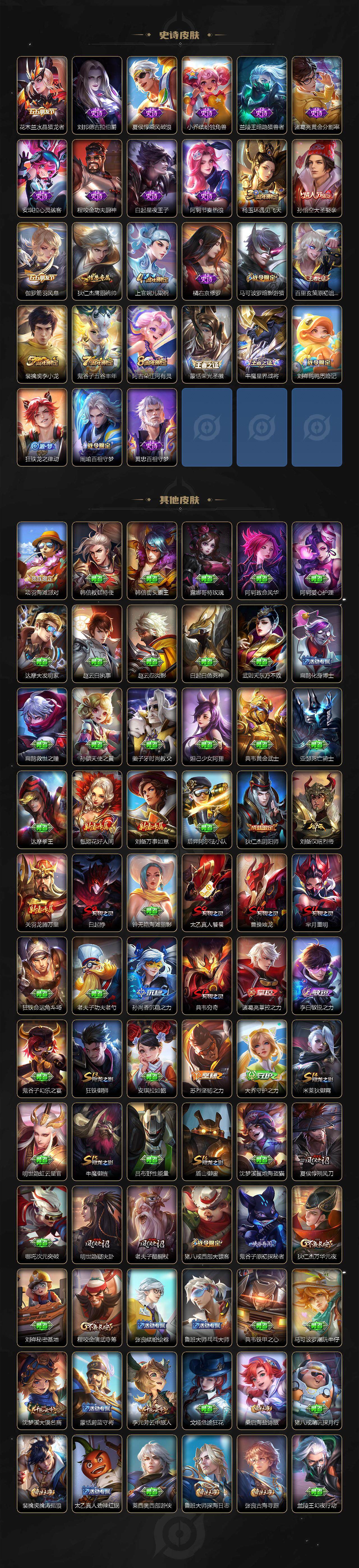 【游戏多多】【王者荣耀】【编号:3339130】【可二次实名】【wz1880】安卓Q-V7-至尊星耀II段位-124英雄-181皮肤-0典藏-0珍品无双-0无双-0珍品传说-7传说-39史诗 【传说皮肤】:裴擒虎祥瑞亨通,桑启鸣野蒿,典韦战鼓燎原,赵云淬星耀世,刘备时之恋人,后羿黄金射手座,孙悟空地狱火 【限定皮肤】:白起狰,大乔绒语心约,姜子牙天穹之誓,狄仁杰阴阳师,赵云皇家上将,孙尚香蔷薇恋人,芈月重明,夏侯惇朔风刀,曹操烛龙,典韦穷奇,马可波罗暗影游猎,狄仁杰魔术师,狄仁杰万华元夜,项羽海滩派对,老夫子醍醐杖,程咬金演武夺筹,孙悟空大圣娶亲,牛魔御旌,李元芳云中旅人,杨玉环遇见飞天,太乙真人饕餮,鬼谷子原初探秘者,鬼谷子五谷丰年,百里玄策原初追逐者,沈梦溪大漠名商,明世隐疑决卦,裴擒虎李小龙,裴擒虎擒涛扼浪,狂铁御狮,米莱狄御霄,盾山御銮,猪八戒西部大镖客,上官婉儿梁祝,鲁班大师探海日志,桑启海盐诗旅,阿古朵江河有灵,张良古海寻踪,蒙恬荣光圣徽,鬼谷子天穹祈灯,刘邦剑破天穹,周瑜熔金海岸 【赛季限定】:白起狰,芈月重明,夏侯惇朔风刀,曹操烛龙,典韦穷奇,狄仁杰万华元夜,老夫子醍醐杖,程咬金演武夺筹,张良古海寻踪,牛魔御旌,李元芳云中旅人,太乙真人饕餮,鬼谷子原初探秘者,百里玄策原初追逐者,沈梦溪大漠名商,明世隐疑决卦,裴擒虎擒涛扼浪,狂铁御狮,米莱狄御霄,盾山御銮,鲁班大师探海日志,桑启海盐诗旅,鬼谷子天穹祈灯,蒙恬荣光圣徽,刘邦剑破天穹,姜子牙天穹之誓 【战令限定】:马可波罗暗影游猎,猪八戒西部大镖客 【史诗皮肤】:鲁班七号电玩小子,露娜紫霞仙子,赵云皇家上将,赵云未来纪元,甄姬冰雪圆舞曲,王昭君偶像歌手,狄仁杰魔术师,宫本武藏鬼剑武藏,孙尚香蔷薇恋人,孙尚香水果甜心,妲己女仆咖啡,墨子金属风暴,花木兰水晶猎龙者,刘邦德古拉伯爵,夏侯惇乘风破浪,小乔缤纷独角兽,兰陵王暗隐猎兽者,诸葛亮黄金分割率,安琪拉心灵骇客,程咬金功夫厨神,白起星夜王子,阿轲节奏热浪,杨玉环遇见飞天,孙悟空大圣娶亲,伽罗箭羽风息,狄仁杰鹰眼统帅,上官婉儿梁祝,橘右京修罗,马可波罗暗影游猎,百里玄策原初追逐者,裴擒虎李小龙,鬼谷子五谷丰年,阿古朵江河有灵,蒙恬荣光圣徽,牛魔星界战将,刘禅鸭鸭历险记,狂铁龙之律动,周瑜百相守梦,黄忠百相守梦 【其他皮肤】:项羽海滩派对,韩信教廷特使,韩信街头霸王,露娜哥特玫瑰,阿轲致命风华,阿轲爱心护理,达摩大发明家,赵云白执事,赵云忍炎影,白起白色死神,武则天东方不败,扁鹊化身博士,扁鹊救世之瞳,孙膑天使之翼,姜子牙时尚教父,妲己少女阿狸,典韦黄金武士,亚瑟死亡骑士,达摩拳王,甄姬花好人间,刘备万事如意,后羿阿尔法小队,狄仁杰阴阳师,刘备汉昭烈帝,关羽龙腾万里,白起狰,钟无艳海滩丽影,太乙真人饕餮,曹操烛龙,芈月重明,狂铁命运角斗场,老夫子功夫老勺,孙尚香沉稳之力,典韦穷奇,诸葛亮掌控之力,李白敏锐之力,鬼谷子幻乐之宴,狂铁御狮,安琪拉如懿,苏烈坚韧之力,大乔守护之力,米莱狄御霄,明世隐虹云星官,牛魔御旌,吕布野性能量,盾山御銮,沈梦溪鲨炮海盗猫,夏侯惇朔风刀,哪吒次元突破,明世隐疑决卦,老夫子醍醐杖,猪八戒西部大镖客,鬼谷子原初探秘者,狄仁杰万华元夜,刘禅秘密基地,程咬金演武夺筹,张良缤纷绘卷,鲁班大师乓乓大师,典韦铁甲之心,马可波罗潮玩牛仔,沈梦溪大漠名商,蒙恬蔚蓝守将,李元芳云中旅人,戈娅危途狂花,桑启海盐诗旅,猪八戒潮玩探月行,裴擒虎擒涛扼浪,太乙真人劲辣红锅,莱西奥西部游侠,鲁班大师探海日志,张良古海寻踪,兰陵王幻夜行动,鬼谷子天穹祈灯,刘邦剑破天穹,大司命暗都幽影,姜子牙天穹之誓,周瑜熔金海岸,大乔绒语心约,东皇太一噬灭天穹,干将莫邪雾都夜雨,苍苍林狼骑,太乙真人谧流熔炉,典韦铁骨偃魂,西施雪境奇遇,姜子牙星梦巡礼,明世隐景韶洛都,戈娅玫蓝誓约,钟馗虚灵犬护,沈梦溪鸭鸭历险记,张良灵野札记,阿古朵布丁狗之约,露娜命运加冕,姬小满小满鸭,云中君云械蓝图,孙策百相守梦,庄周锦麟游梦,莱西奥踏浪烽翎,鲁班七号福禄兄弟,项羽帝国元帅,貂蝉异域舞娘,老夫子潮流仙人,王昭君精灵公主,曹操超能战警,张良一千零一夜,小乔万圣前夜,孙悟空西部大镖客,后羿精灵王,兰陵王隐刃,李白范海辛,虞姬加勒比小姐,马可波罗激情绿茵,苍维京掠夺者,诸葛亮星航指挥官,黄忠芝加哥教父,铠龙域领主,百里守约绝影神枪,百里玄策威尼斯狂欢,明世隐占星师,公孙离花间舞,裴擒虎街头旋风,弈星踏雪寻梅,米莱狄精准探案法,元歌午夜歌剧院,沈梦溪棒球奇才,李信灼热之刃,嫦娥露花倒影,猪八戒年年有余,盘古创世神祝,西施归虚梦演,鲁班大师归虚梦演,澜孤猎,司空震启蛰,云缨赤焰之缨,金蝉前尘,桑启画中游 【内测皮肤】:孙尚香蔷薇恋人 【营地ID】:437262513