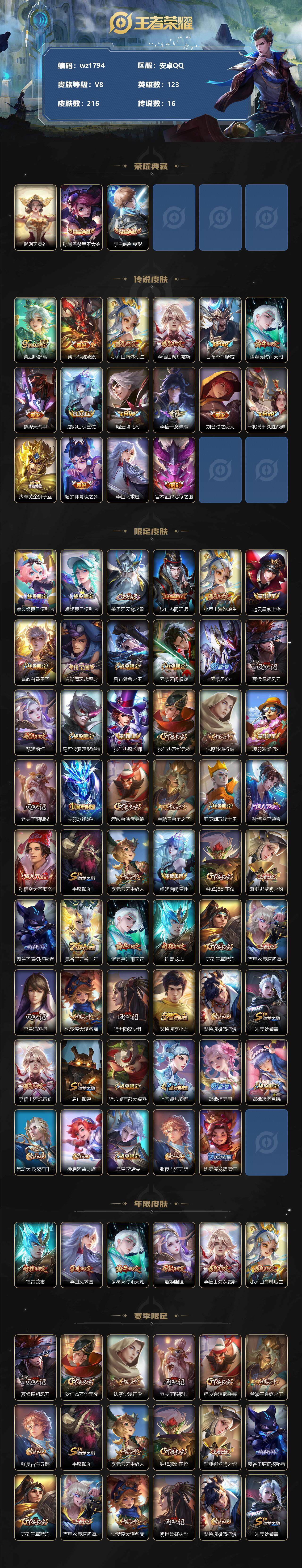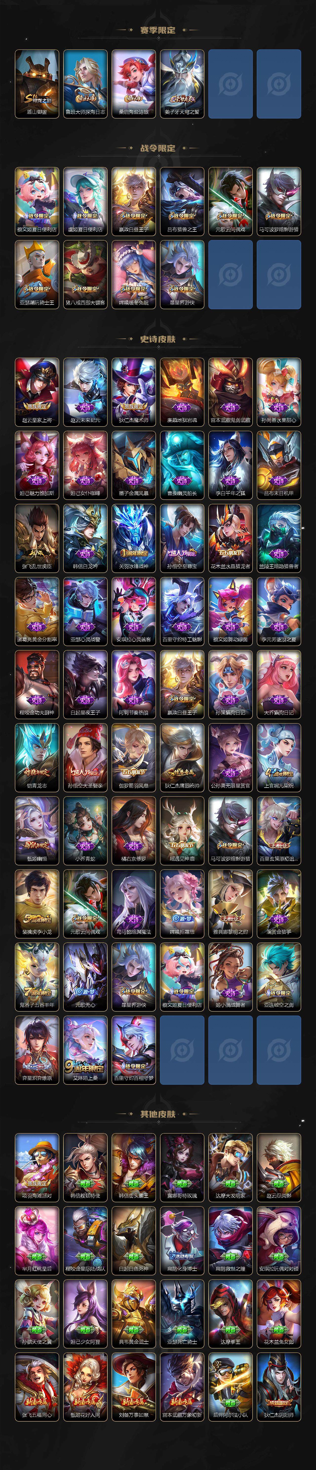 【游戏多多】【王者荣耀】【编号:3339217】【可二次实名】【wz1794】【商品标题】:安卓Q-V8-最强王者段位-123英雄-216皮肤-2典藏-0珍品无双-0无双-0珍品传说-16传说-57史诗 【英雄全皮】:李信全皮 【荣耀典藏】:武则天英雄,孙尚香杀手不太冷,李白鸣剑曳影 【传说皮肤】:桑启鸣野蒿,典韦战鼓燎原,小乔山海琳琅生,李信山海炽霜斩,吕布怒海麟威,诸葛亮时雨天司,铠绛天战甲,虞姬启明星使,曜云鹰飞将,李信一念神魔,刘备时之恋人,干将莫邪久胜战神,达摩黄金狮子座,貂蝉仲夏夜之梦,李白凤求凰,宫本武藏地狱之眼 【限定皮肤】:蔡文姬夏日便利店,虞姬夏日便利店,姜子牙天穹之誓,狄仁杰阴阳师,小乔山海琳琅生,赵云皇家上将,嬴政白昼王子,高渐离玩趣恶龙,吕布猎兽之王,元歌云间偶戏,元歌无心,夏侯惇朔风刀,甄姬幽恒,马可波罗暗影游猎,狄仁杰魔术师,狄仁杰万华元夜,达摩沙漠行僧,项羽海滩派对,老夫子醍醐杖,关羽冰锋战神,程咬金演武夺筹,兰陵王金庭之子,亚瑟潮玩骑士王,孙悟空至尊宝,孙悟空大圣娶亲,牛魔御旌,李元芳云中旅人,虞姬启明星使,钟馗驱傩正仪,雅典娜黎明之约,鬼谷子原初探秘者,鬼谷子五谷丰年,诸葛亮时雨天司,铠青龙志,苏烈千军破阵,百里玄策原初追逐者,弈星混沌棋,沈梦溪大漠名商,明世隐疑决卦,裴擒虎李小龙,裴擒虎擒涛扼浪,米莱狄御霄,李信山海炽霜斩,盾山御銮,猪八戒西部大镖客,上官婉儿梁祝,嫦娥拒霜思,嫦娥暖冬兔眠,鲁班大师探海日志,桑启海盐诗旅,暃星界游侠,张良古海寻踪,沈梦溪龙舞盛年 【年限皮肤】:铠青龙志,李白凤求凰,诸葛亮时雨天司,甄姬幽恒,李信山海炽霜斩,小乔山海琳琅生 【赛季限定】:夏侯惇朔风刀,狄仁杰万华元夜,达摩沙漠行僧,老夫子醍醐杖,程咬金演武夺筹,兰陵王金庭之子,张良古海寻踪,牛魔御旌,李元芳云中旅人,钟馗驱傩正仪,雅典娜黎明之约,鬼谷子原初探秘者,苏烈千军破阵,百里玄策原初追逐者,弈星混沌棋,沈梦溪大漠名商,明世隐疑决卦,裴擒虎擒涛扼浪,米莱狄御霄,盾山御銮,鲁班大师探海日志,桑启海盐诗旅,姜子牙天穹之誓 【战令限定】:蔡文姬夏日便利店,虞姬夏日便利店,嬴政白昼王子,吕布猎兽之王,元歌云间偶戏,马可波罗暗影游猎,亚瑟潮玩骑士王,猪八戒西部大镖客,嫦娥暖冬兔眠,暃星界游侠 【史诗皮肤】:赵云皇家上将,赵云未来纪元,狄仁杰魔术师,廉颇地狱岩魂,宫本武藏鬼剑武藏,孙尚香水果甜心,妲己魅力维加斯,妲己女仆咖啡,墨子金属风暴,曹操幽灵船长,李白千年之狐,吕布末日机甲,张飞乱世虎臣,韩信白龙吟,关羽冰锋战神,孙悟空至尊宝,花木兰水晶猎龙者,兰陵王暗隐猎兽者,诸葛亮黄金分割率,亚瑟心灵战警,安琪拉心灵骇客,百里守约特工魅影,蔡文姬舞动绿茵,李元芳逐浪之夏,程咬金功夫厨神,白起星夜王子,阿轲节奏热浪,嬴政白昼王子,孙策猫狗日记,大乔猫狗日记,铠青龙志,孙悟空大圣娶亲,伽罗箭羽风息,狄仁杰鹰眼统帅,公孙离无限星赏官,上官婉儿梁祝,甄姬幽恒,小乔青蛇,橘右京修罗,瑶遇见神鹿,马可波罗暗影游猎,百里玄策原初追逐者,裴擒虎李小龙,元歌云间偶戏,司马懿暗渊魔法,嫦娥拒霜思,雅典娜黎明之约,澜赏金猎手,鬼谷子五谷丰年,元歌无心,暃星界游侠,蔡文姬夏日便利店,姬小满战舞者,亚连破空之剑,弈星炽弈燎原,艾琳陌上桑,百里守约百相守梦 【其他皮肤】:项羽海滩派对,韩信教廷特使,韩信街头霸王,露娜哥特玫瑰,达摩大发明家,赵云忍炎影,芈月红桃皇后,程咬金星际陆战队,白起白色死神,扁鹊化身博士,扁鹊救世之瞳,安琪拉玩偶对对碰,孙膑天使之翼,妲己少女阿狸,典韦黄金武士,亚瑟死亡骑士,达摩拳王,花木兰兔女郎,张飞五福同心,甄姬花好人间,刘备万事如意,宫本武藏万象初新,后羿阿尔法小队,狄仁杰阴阳师,刘备纽约教父,关羽龙腾万里,钟无艳海滩丽影,宫本武藏霸王丸,王昭君幻想奇妙夜,狂铁命运角斗场,老夫子功夫老勺,诸葛亮掌控之力,苏烈坚韧之力,大乔守护之力,米莱狄御霄,吕布猎兽之王,庄周奇妙博物学,牛魔御旌,吕布野性能量,盾山御銮,孙膑归虚梦演,高渐离玩趣恶龙,沈梦溪鲨炮海盗猫,夏侯惇朔风刀,弈星混沌棋,哪吒次元突破,鲁班七号黑桃队长,明世隐疑决卦,盾山圆桌骑士,老夫子醍醐杖,猪八戒西部大镖客,鬼谷子原初探秘者,狄仁杰万华元夜,亚瑟潮玩骑士王,刘禅秘密基地,杨戬次元傲视,程咬金演武夺筹,张良缤纷绘卷,盘古重装意志,钟馗驱傩正仪,鲁班大师乓乓大师,苏烈千军破阵,达摩沙漠行僧,程咬金无双福将,兰陵王金庭之子,米莱狄契约魔法,沈梦溪大漠名商,李元芳云中旅人,戈娅危途狂花,桑启海盐诗旅,嫦娥暖冬兔眠,海月幻泉雾影,猪八戒潮玩探月行,牛魔牛运亨通,白起乐园追猎者,赵怀真太极少年,裴擒虎擒涛扼浪,太乙真人劲辣红锅,鲁班大师探海日志,张良古海寻踪,海月王牌新星,曹操决胜大满贯,廉颇功夫炙烤,沈梦溪龙舞盛年,姜子牙天穹之