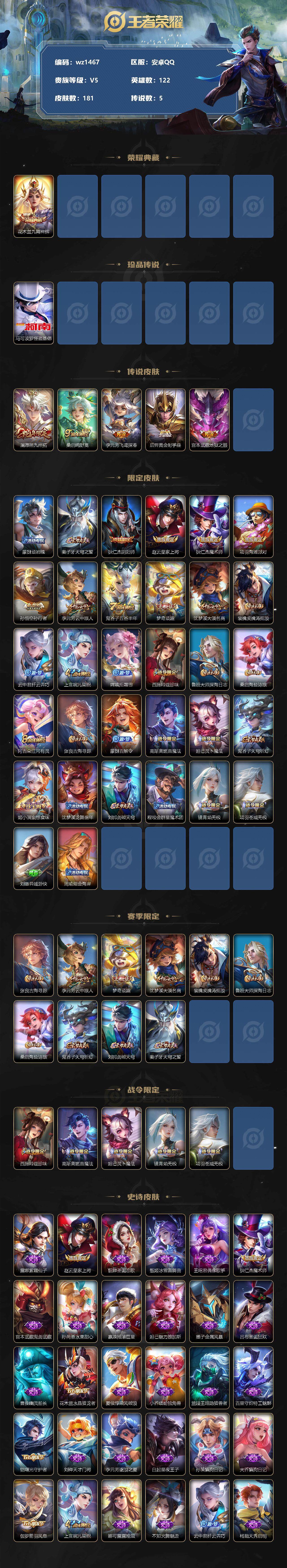 【游戏多多】【王者荣耀】【编号:3339460】【可二次实名】【wz1467】【商品标题】:安卓Q-V5-永恒钻石IV段位-122英雄-181皮肤-1典藏-0珍品无双-0无双-1珍品传说-5传说-51史诗 【荣耀典藏】:花木兰九霄神辉 【珍品传说】:马可波罗怪盗基德 【传说皮肤】:澜愿照九州拓,桑启鸣野蒿,李元芳飞鸢探春,后羿黄金射手座,宫本武藏地狱之眼 【限定皮肤】:蒙犽顽岩魄,姜子牙天穹之誓,狄仁杰阴阳师,赵云皇家上将,狄仁杰魔术师,项羽海滩派对,孙悟空孙行者,李元芳云中旅人,鬼谷子五谷丰年,梦奇顽趣,沈梦溪大漠名商,裴擒虎擒涛扼浪,云中君纤云弄巧,上官婉儿梁祝,嫦娥拒霜思,西施玲珑珍味,鲁班大师探海日志,桑启海盐诗旅,阿古朵江河有灵,张良古海寻踪,蒙犽百解令,高渐离燃音魔法,妲己灵卜魔法,鬼谷子天穹祈灯,姬小满妄想食味,沈梦溪龙舞盛年,刘邦剑破天穹,程咬金群星魔术团,镜青焰无极,项羽苍威无极,刘备异域游侠,周瑜熔金海岸 【赛季限定】:张良古海寻踪,李元芳云中旅人,梦奇顽趣,沈梦溪大漠名商,裴擒虎擒涛扼浪,鲁班大师探海日志,桑启海盐诗旅,鬼谷子天穹祈灯,刘邦剑破天穹,姜子牙天穹之誓 【战令限定】:西施玲珑珍味,高渐离燃音魔法,妲己灵卜魔法,镜青焰无极,项羽苍威无极 【史诗皮肤】:露娜紫霞仙子,赵云皇家上将,貂蝉圣诞恋歌,甄姬冰雪圆舞曲,王昭君偶像歌手,狄仁杰魔术师,宫本武藏鬼剑武藏,孙尚香水果甜心,嬴政摇滚巨星,妲己魅力维加斯,墨子金属风暴,吕布圣诞狂欢,曹操幽灵船长,花木兰水晶猎龙者,夏侯惇乘风破浪,小乔缤纷独角兽,兰陵王暗隐猎兽者,百里守约特工魅影,铠曙光守护者,刘禅天才门将,李元芳逐浪之夏,白起星夜王子,孙策猫狗日记,大乔猫狗日记,伽罗箭羽风息,上官婉儿梁祝,娜可露露晚萤,不知火舞魅语,云中君纤云弄巧,杨戬天秀启明,沈梦溪月团寄思,孙悟空孙行者,嫦娥拒霜思,鬼谷子五谷丰年,梦奇顽趣,阿古朵江河有灵,蒙犽百解令,周瑜雪夜绮愿,妲己灵卜魔法,高渐离燃音魔法,姬小满妄想食味,镜青焰无极,黄忠怒海争锋,蒙犽顽岩魄,大司命东方月初,亚连破空之剑,百里守约百相守梦,牛魔星界战将,孙膑茶境仙,赵怀真器灵浮梦炉,阿轲化蝶舞,狂铁龙之律动 【其他皮肤】:项羽海滩派对,韩信教廷特使,韩信街头霸王,阿轲爱心护理,达摩大发明家,赵云白执事,赵云忍炎影,白起白色死神,牛魔西部大镖客,宫本武藏未来纪元,典韦黄金武士,亚瑟死亡骑士,花木兰兔女郎,张飞五福同心,甄姬花好人间,刘备万事如意,宫本武藏万象初新,狄仁杰阴阳师,刘备纽约教父,刘备汉昭烈帝,关羽龙腾万里,钟无艳海滩丽影,老夫子功夫老勺,孙尚香沉稳之力,诸葛亮掌控之力,李白敏锐之力,鬼谷子幻乐之宴,大乔守护之力,明世隐虹云星官,小乔丁香结,孙膑归虚梦演,沈梦溪鲨炮海盗猫,姜子牙炽热元素使,哪吒次元突破,狂铁特工战影,刘禅秘密基地,露娜瓷语鉴心,鲁班大师乓乓大师,程咬金无双福将,刘禅唤灵魔甲,沈梦溪大漠名商,蒙恬蔚蓝守将,李元芳云中旅人,戈娅危途狂花,桑启海盐诗旅,猪八戒潮玩探月行,裴擒虎擒涛扼浪,太乙真人劲辣红锅,莱西奥西部游侠,鲁班大师探海日志,西施玲珑珍味,李元芳妄想特派,哪吒热血海滩,张良古海寻踪,钟无艳聚星闪耀,海月王牌新星,兰陵王幻夜行动,曹操决胜大满贯,后羿完美运算,鬼谷子天穹祈灯,妲己灵卜魔法,海诺时空谍影,嫦娥漠中幻影,廉颇功夫炙烤,亚瑟鸿运当头,沈梦溪龙舞盛年,钟无艳春野之旅,扁鹊无尽旅途,刘邦剑破天穹,盘古经纬探寻者,程咬金群星魔术团,项羽苍威无极,大司命暗都幽影,刘备异域游侠,姜子牙天穹之誓,周瑜熔金海岸,孙悟空神迹守卫,盘古敬我三分,东皇太一噬灭天穹,老夫子百相守梦,干将莫邪雾都夜雨,吕布逐霄战戟,苍苍林狼骑,太乙真人谧流熔炉,马超访茗客,西施雪境奇遇,姜子牙星梦巡礼,达摩爆裂喵拳,少司缘灵卦秘语,戈娅玫蓝誓约,钟馗虚灵犬护,苏烈春野闲踪,张良灵野札记,阿古朵布丁狗之约,鲁班七号福禄兄弟,鲁班七号木偶奇遇记,貂蝉异域舞娘,曹操超能战警,孙悟空西部大镖客,马可波罗激情绿茵,杨戬埃及法老,诸葛亮星航指挥官,铠龙域领主,百里守约绝影神枪,苏烈爱与和平,梦奇美梦成真,明世隐占星师,公孙离花间舞,弈星踏雪寻梅,米莱狄精准探案法,元歌午夜歌剧院,司马懿魇语军师,盾山极冰防御线,伽罗花见巫女,李信灼热之刃,上官婉儿修竹墨客,马超幸存者,蒙恬秩序猎龙将,阿古朵熊喵少女,澜孤猎,司空震启蛰,云缨赤焰之缨,暃碧珀绯影 【内测皮肤】:狂铁特工战影 【营地ID】:1700643904