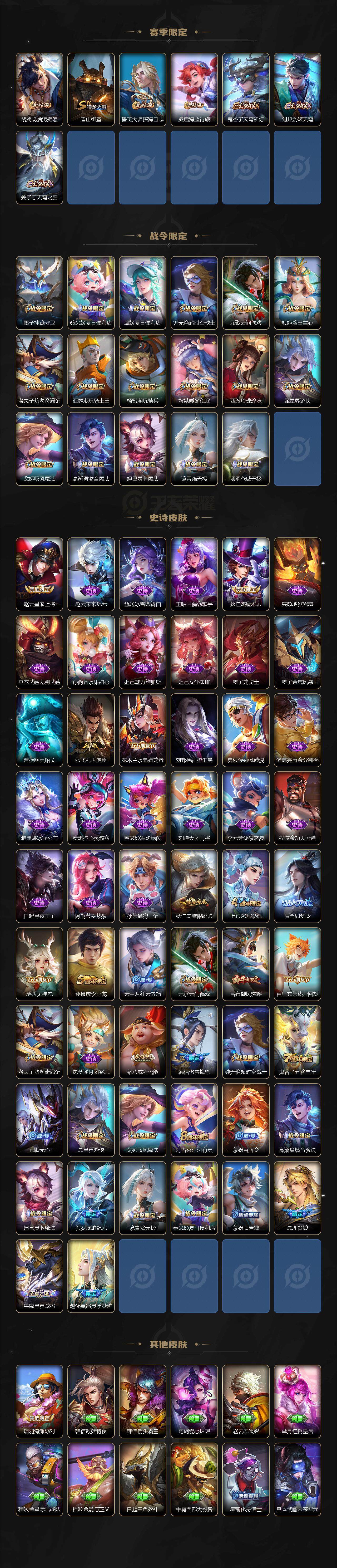 【游戏多多】【王者荣耀】【编号:3339472】【可二次实名】【wz1455】【商品标题】:安卓Q-V7-尊贵铂金I段位-122英雄-235皮肤-1典藏-0珍品无双-0无双-0珍品传说-12传说-55史诗 【荣耀典藏】:花木兰九霄神辉 【传说皮肤】:澜愿照九州拓,云缨幻光神枪,桑启鸣野蒿,夏侯惇霜北刀,铠冥王哈迪斯,澜电玩雷克斯,孙悟空齐天大圣,李信山海炽霜斩,铠绛天战甲,李信一念神魔,达摩黄金狮子座,花木兰冠军飞将 【限定皮肤】:夏侯惇霜北刀,铠冥王哈迪斯,暃埋骨钱,蒙犽顽岩魄,蔡文姬夏日便利店,虞姬夏日便利店,姜子牙天穹之誓,狄仁杰阴阳师,赵云皇家上将,墨子神迹守卫,高渐离玩趣恶龙,钟无艳超时空战士,吕布御风骁将,元歌云间偶戏,元歌无心,夏侯惇朔风刀,甄姬落雪兰心,狄仁杰魔术师,狄仁杰万华元夜,达摩沙漠行僧,项羽海滩派对,老夫子醍醐杖,老夫子航海奇遇记,程咬金演武夺筹,韩信傲雪梅枪,兰陵王金庭之子,亚瑟潮玩骑士王,孙悟空齐天大圣,后羿如梦令,李元芳云中旅人,钟馗驱傩正仪,杨戬潮玩骑兵,干将莫邪胡桃夹子,太乙真人华丽摇滚,鬼谷子原初探秘者,鬼谷子五谷丰年,苏烈千军破阵,弈星混沌棋,明世隐疑决卦,裴擒虎李小龙,裴擒虎擒涛扼浪,云中君纤云弄巧,李信山海炽霜斩,盾山御銮,猪八戒猪悟能,上官婉儿梁祝,嫦娥暖冬兔眠,西施玲珑珍味,鲁班大师探海日志,桑启海盐诗旅,暃星界游侠,戈娅驭风魔法,阿古朵江河有灵,张良古海寻踪,蒙犽百解令,高渐离燃音魔法,妲己灵卜魔法,鬼谷子天穹祈灯,伽罗琥珀纪元,刘邦剑破天穹,程咬金群星魔术团,镜青焰无极,项羽苍威无极,刘备异域游侠,周瑜熔金海岸 【年限皮肤】:吕布御风骁将,李信山海炽霜斩 【赛季限定】:夏侯惇朔风刀,狄仁杰万华元夜,达摩沙漠行僧,老夫子醍醐杖,程咬金演武夺筹,兰陵王金庭之子,张良古海寻踪,李元芳云中旅人,钟馗驱傩正仪,鬼谷子原初探秘者,苏烈千军破阵,弈星混沌棋,明世隐疑决卦,裴擒虎擒涛扼浪,盾山御銮,鲁班大师探海日志,桑启海盐诗旅,鬼谷子天穹祈灯,刘邦剑破天穹,姜子牙天穹之誓 【战令限定】:墨子神迹守卫,蔡文姬夏日便利店,虞姬夏日便利店,钟无艳超时空战士,元歌云间偶戏,甄姬落雪兰心,老夫子航海奇遇记,亚瑟潮玩骑士王,杨戬潮玩骑兵,嫦娥暖冬兔眠,西施玲珑珍味,暃星界游侠,戈娅驭风魔法,高渐离燃音魔法,妲己灵卜魔法,镜青焰无极,项羽苍威无极 【史诗皮肤】:赵云皇家上将,赵云未来纪元,甄姬冰雪圆舞曲,王昭君偶像歌手,狄仁杰魔术师,廉颇地狱岩魂,宫本武藏鬼剑武藏,孙尚香水果甜心,妲己魅力维加斯,妲己女仆咖啡,墨子龙骑士,墨子金属风暴,曹操幽灵船长,张飞乱世虎臣,花木兰水晶猎龙者,刘邦德古拉伯爵,夏侯惇乘风破浪,诸葛亮黄金分割率,雅典娜冰冠公主,安琪拉心灵骇客,蔡文姬舞动绿茵,刘禅天才门将,李元芳逐浪之夏,程咬金功夫厨神,白起星夜王子,阿轲节奏热浪,孙策猫狗日记,狄仁杰鹰眼统帅,上官婉儿梁祝,后羿如梦令,瑶遇见神鹿,裴擒虎李小龙,云中君纤云弄巧,元歌云间偶戏,吕布御风骁将,百里玄策热力回旋,老夫子航海奇遇记,沈梦溪月团寄思,猪八戒猪悟能,韩信傲雪梅枪,钟无艳超时空战士,鬼谷子五谷丰年,元歌无心,暃星界游侠,戈娅驭风魔法,阿古朵江河有灵,蒙犽百解令,妲己灵卜魔法,高渐离燃音魔法,伽罗琥珀纪元,镜青焰无极,蔡文姬夏日便利店,蒙犽顽岩魄,暃埋骨钱,牛魔星界战将,赵怀真器灵浮梦炉 【其他皮肤】:项羽海滩派对,韩信教廷特使,韩信街头霸王,阿轲爱心护理,赵云忍炎影,芈月红桃皇后,程咬金星际陆战队,程咬金爱与正义,白起白色死神,牛魔西部大镖客,扁鹊化身博士,宫本武藏未来纪元,安琪拉玩偶对对碰,姜子牙时尚教父,妲己少女阿狸,典韦黄金武士,亚瑟死亡骑士,花木兰兔女郎,张飞五福同心,甄姬花好人间,宫本武藏万象初新,后羿阿尔法小队,狄仁杰阴阳师,刘备纽约教父,刘备汉昭烈帝,钟无艳海滩丽影,王昭君幻想奇妙夜,狂铁命运角斗场,老夫子功夫老勺,孙尚香沉稳之力,诸葛亮掌控之力,李白敏锐之力,鬼谷子幻乐之宴,太乙真人华丽摇滚,苏烈坚韧之力,明世隐虹云星官,小乔丁香结,盾山御銮,孙膑归虚梦演,高渐离玩趣恶龙,沈梦溪鲨炮海盗猫,姜子牙炽热元素使,夏侯惇朔风刀,弈星混沌棋,哪吒次元突破,明世隐疑决卦,盾山圆桌骑士,老夫子醍醐杖,狂铁特工战影,鬼谷子原初探秘者,狄仁杰万华元夜,亚瑟潮玩骑士王,刘禅秘密基地,程咬金演武夺筹,张良缤纷绘卷,钟馗驱傩正仪,墨子神迹守卫,鲁班大师乓乓大师,苏烈千军破阵,典韦铁甲之心,干将莫邪胡桃夹子,达摩沙漠行僧,程咬金无双福将,兰陵王金庭之子,甄姬落雪兰心,李元芳云中旅人,戈娅危途狂花,桑启海盐诗旅,嫦娥暖冬兔眠,猪八戒潮玩探月行,牛魔牛运亨通,白起乐园追猎者,赵怀真太极少年,裴擒虎擒涛扼浪,杨戬潮玩骑兵,鲁班大师探海日志,西施玲珑珍味,李元芳妄想特派,张良古海寻踪,钟无