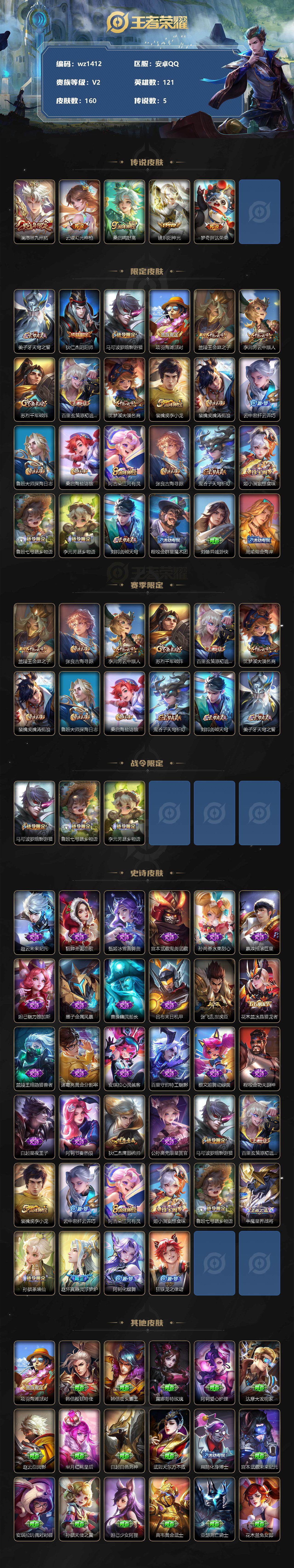 【游戏多多】【王者荣耀】【编号:3339503】【可二次实名】【wz1412】【商品标题】:安卓Q-V2-最强王者段位-121英雄-160皮肤-0典藏-0珍品无双-0无双-0珍品传说-5传说-34史诗 【传说皮肤】:澜愿照九州拓,云缨幻光神枪,桑启鸣野蒿,镜炽阳神光,梦奇胖达荣荣 【限定皮肤】:姜子牙天穹之誓,狄仁杰阴阳师,马可波罗暗影游猎,项羽海滩派对,兰陵王金庭之子,李元芳云中旅人,苏烈千军破阵,百里玄策原初追逐者,沈梦溪大漠名商,裴擒虎李小龙,裴擒虎擒涛扼浪,云中君纤云弄巧,鲁班大师探海日志,桑启海盐诗旅,阿古朵江河有灵,张良古海寻踪,鬼谷子天穹祈灯,姬小满妄想食味,鲁班七号蔬乡物语,李元芳蔬乡物语,刘邦剑破天穹,程咬金群星魔术团,刘备异域游侠,周瑜熔金海岸 【赛季限定】:兰陵王金庭之子,张良古海寻踪,李元芳云中旅人,苏烈千军破阵,百里玄策原初追逐者,沈梦溪大漠名商,裴擒虎擒涛扼浪,鲁班大师探海日志,桑启海盐诗旅,鬼谷子天穹祈灯,刘邦剑破天穹,姜子牙天穹之誓 【战令限定】:马可波罗暗影游猎,鲁班七号蔬乡物语,李元芳蔬乡物语 【史诗皮肤】:赵云未来纪元,貂蝉圣诞恋歌,甄姬冰雪圆舞曲,宫本武藏鬼剑武藏,孙尚香水果甜心,嬴政摇滚巨星,妲己魅力维加斯,墨子金属风暴,曹操幽灵船长,吕布末日机甲,张飞乱世虎臣,花木兰水晶猎龙者,兰陵王暗隐猎兽者,诸葛亮黄金分割率,安琪拉心灵骇客,百里守约特工魅影,蔡文姬舞动绿茵,程咬金功夫厨神,白起星夜王子,阿轲节奏热浪,狄仁杰鹰眼统帅,公孙离无限星赏官,马可波罗暗影游猎,百里玄策原初追逐者,裴擒虎李小龙,云中君纤云弄巧,阿古朵江河有灵,姬小满妄想食味,鲁班七号蔬乡物语,牛魔星界战将,孙膑茶境仙,赵怀真器灵浮梦炉,阿轲化蝶舞,狂铁龙之律动 【其他皮肤】:项羽海滩派对,韩信教廷特使,韩信街头霸王,露娜哥特玫瑰,阿轲爱心护理,达摩大发明家,赵云忍炎影,芈月红桃皇后,白起白色死神,武则天东方不败,扁鹊化身博士,宫本武藏未来纪元,安琪拉玩偶对对碰,孙膑天使之翼,妲己少女阿狸,典韦黄金武士,亚瑟死亡骑士,花木兰兔女郎,甄姬花好人间,刘备万事如意,后羿阿尔法小队,狄仁杰阴阳师,刘备纽约教父,李元芳黑猫爱糖果,关羽龙腾万里,钟无艳海滩丽影,王昭君幻想奇妙夜,老夫子功夫老勺,孙尚香沉稳之力,苏烈坚韧之力,大乔守护之力,吕布野性能量,沈梦溪鲨炮海盗猫,哪吒次元突破,盾山圆桌骑士,狂铁特工战影,刘禅秘密基地,露娜瓷语鉴心,鲁班大师乓乓大师,苏烈千军破阵,兰陵王金庭之子,沈梦溪大漠名商,蒙恬蔚蓝守将,李元芳云中旅人,戈娅危途狂花,刘备潮玩造梦师,桑启海盐诗旅,猪八戒潮玩探月行,裴擒虎擒涛扼浪,太乙真人劲辣红锅,莱西奥西部游侠,鲁班大师探海日志,李元芳妄想特派,张良古海寻踪,钟无艳聚星闪耀,亚连破局者,后羿完美运算,鬼谷子天穹祈灯,钟无艳春野之旅,李元芳蔬乡物语,扁鹊无尽旅途,刘邦剑破天穹,程咬金群星魔术团,大司命暗都幽影,刘备异域游侠,姜子牙天穹之誓,周瑜熔金海岸,盘古敬我三分,东皇太一噬灭天穹,干将莫邪雾都夜雨,苍苍林狼骑,太乙真人谧流熔炉,典韦铁骨偃魂,马超访茗客,影魅影绮裳,西施雪境奇遇,姜子牙星梦巡礼,东皇太一金福满堂,达摩爆裂喵拳,明世隐景韶洛都,戈娅玫蓝誓约,刘备浪漫序章,钟馗虚灵犬护,苏烈春野闲踪,张良灵野札记,阿古朵布丁狗之约,鲁班七号木偶奇遇记,露娜绯红之刃,貂蝉异域舞娘,老夫子潮流仙人,曹操超能战警,孙悟空西部大镖客,李白范海辛,李元芳特种部队,虞姬加勒比小姐,夏侯惇战争骑士,马可波罗激情绿茵,诸葛亮星航指挥官,黄忠芝加哥教父,铠龙域领主,百里守约绝影神枪,梦奇美梦成真,明世隐占星师,公孙离花间舞,裴擒虎街头旋风,弈星踏雪寻梅,司马懿魇语军师,伽罗花见巫女,李信灼热之刃,上官婉儿修竹墨客,猪八戒年年有余,曜归虚梦演,马超幸存者,鲁班大师归虚梦演,蒙犽归虚梦演,镜冰刃幻境,蒙恬秩序猎龙将,澜孤猎,司空震启蛰,云缨赤焰之缨,暃碧珀绯影 【内测皮肤】:狂铁特工战影 【营地ID】:1713595690