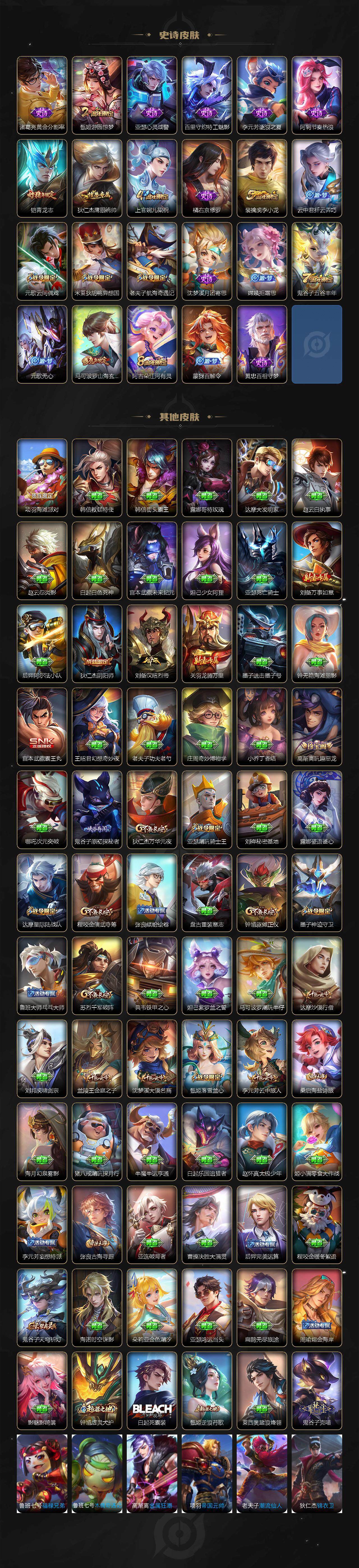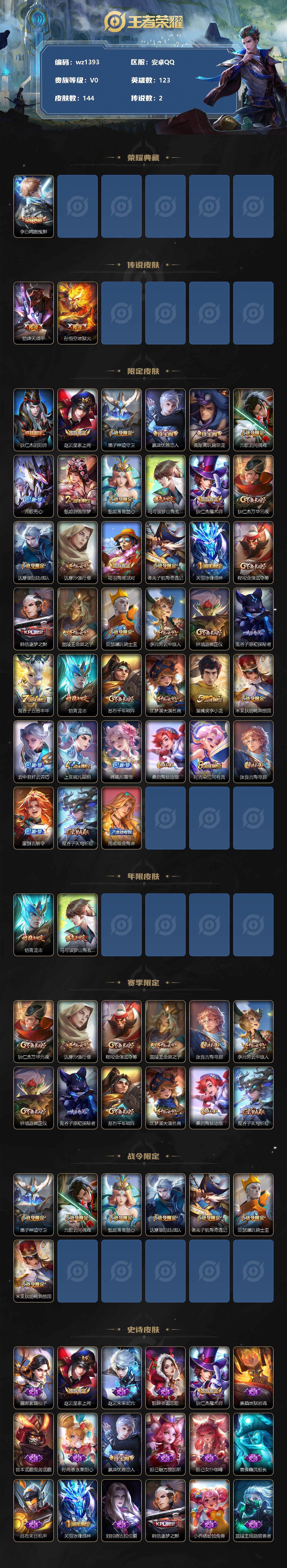 【游戏多多】【王者荣耀】【编号:3339517】【可二次实名】【wz1393】【商品标题】:安卓Q-V0-至尊星耀II段位-123英雄-144皮肤-1典藏-0珍品无双-0无双-0珍品传说-2传说-41史诗 【荣耀典藏】:李白鸣剑曳影 【传说皮肤】:铠绛天战甲,孙悟空地狱火 【限定皮肤】:狄仁杰阴阳师,赵云皇家上将,墨子神迹守卫,嬴政优雅恋人,高渐离玩趣恶龙,元歌云间偶戏,元歌无心,甄姬游园惊梦,甄姬落雪兰心,马可波罗山海玄木吟,狄仁杰魔术师,狄仁杰万华元夜,达摩星际陆战队,达摩沙漠行僧,项羽海滩派对,老夫子航海奇遇记,关羽冰锋战神,程咬金演武夺筹,韩信逐梦之影,兰陵王金庭之子,亚瑟潮玩骑士王,李元芳云中旅人,钟馗驱傩正仪,鬼谷子原初探秘者,鬼谷子五谷丰年,铠青龙志,苏烈千军破阵,沈梦溪大漠名商,裴擒虎李小龙,米莱狄胡桃异想国,云中君纤云弄巧,上官婉儿梁祝,嫦娥拒霜思,桑启海盐诗旅,阿古朵江河有灵,张良古海寻踪,蒙犽百解令,鬼谷子天穹祈灯,周瑜熔金海岸 【年限皮肤】:铠青龙志,马可波罗山海玄木吟 【赛季限定】:狄仁杰万华元夜,达摩沙漠行僧,程咬金演武夺筹,兰陵王金庭之子,张良古海寻踪,李元芳云中旅人,钟馗驱傩正仪,鬼谷子原初探秘者,苏烈千军破阵,沈梦溪大漠名商,桑启海盐诗旅,鬼谷子天穹祈灯 【战令限定】:墨子神迹守卫,元歌云间偶戏,甄姬落雪兰心,达摩星际陆战队,老夫子航海奇遇记,亚瑟潮玩骑士王,米莱狄胡桃异想国 【史诗皮肤】:露娜紫霞仙子,赵云皇家上将,赵云未来纪元,貂蝉圣诞恋歌,狄仁杰魔术师,廉颇地狱岩魂,宫本武藏鬼剑武藏,孙尚香水果甜心,嬴政优雅恋人,妲己魅力维加斯,妲己女仆咖啡,曹操幽灵船长,吕布末日机甲,关羽冰锋战神,刘邦德古拉伯爵,韩信逐梦之影,小乔缤纷独角兽,兰陵王暗隐猎兽者,诸葛亮黄金分割率,甄姬游园惊梦,亚瑟心灵战警,百里守约特工魅影,李元芳逐浪之夏,阿轲节奏热浪,铠青龙志,狄仁杰鹰眼统帅,上官婉儿梁祝,橘右京修罗,裴擒虎李小龙,云中君纤云弄巧,元歌云间偶戏,米莱狄胡桃异想国,老夫子航海奇遇记,沈梦溪月团寄思,嫦娥拒霜思,鬼谷子五谷丰年,元歌无心,马可波罗山海玄木吟,阿古朵江河有灵,蒙犽百解令,黄忠百相守梦 【其他皮肤】:项羽海滩派对,韩信教廷特使,韩信街头霸王,露娜哥特玫瑰,达摩大发明家,赵云白执事,赵云忍炎影,白起白色死神,宫本武藏未来纪元,妲己少女阿狸,亚瑟死亡骑士,刘备万事如意,后羿阿尔法小队,狄仁杰阴阳师,刘备汉昭烈帝,关羽龙腾万里,墨子进击墨子号,钟无艳海滩丽影,宫本武藏霸王丸,王昭君幻想奇妙夜,老夫子功夫老勺,庄周奇妙博物学,小乔丁香结,高渐离玩趣恶龙,哪吒次元突破,鬼谷子原初探秘者,狄仁杰万华元夜,亚瑟潮玩骑士王,刘禅秘密基地,露娜瓷语鉴心,达摩星际陆战队,程咬金演武夺筹,张良缤纷绘卷,盘古重装意志,钟馗驱傩正仪,墨子神迹守卫,鲁班大师乓乓大师,苏烈千军破阵,典韦铁甲之心,妲己紫罗兰之誓,马可波罗潮玩牛仔,达摩沙漠行僧,刘邦虎啸剑宗,兰陵王金庭之子,沈梦溪大漠名商,甄姬落雪兰心,李元芳云中旅人,桑启海盐诗旅,海月幻泉雾影,猪八戒潮玩探月行,牛魔牛运亨通,白起乐园追猎者,赵怀真太极少年,姬小满零食大作战,李元芳妄想特派,张良古海寻踪,亚连破局者,曹操决胜大满贯,后羿完美运算,程咬金暖冬絮语,鬼谷子天穹祈灯,海诺时空谍影,朵莉亚金色潮汐,亚瑟鸿运当头,扁鹊无尽旅途,周瑜熔金海岸,影魅影绮裳,钟馗虚灵犬护,白起死霸装,甄姬逆浪荇歌,莱西奥踏浪烽翎,鬼谷子克喵,鲁班七号福禄兄弟,鲁班七号木偶奇遇记,高渐离金属狂潮,项羽帝国元帅,老夫子潮流仙人,狄仁杰锦衣卫,小乔万圣前夜,孙悟空西部大镖客,后羿精灵王,钟馗地府判官,李元芳特种部队,虞姬加勒比小姐,关羽天启骑士,马可波罗激情绿茵,杨戬埃及法老,铠龙域领主,苏烈爱与和平,裴擒虎街头旋风,元歌午夜歌剧院,孙策海之征途,李信灼热之刃,盘古创世神祝,曜归虚梦演,马超幸存者,鲁班大师归虚梦演,澜孤猎,云缨赤焰之缨,金蝉前尘 【内测皮肤】:嬴政优雅恋人,高渐离玩趣恶龙 【营地ID】:2118408296