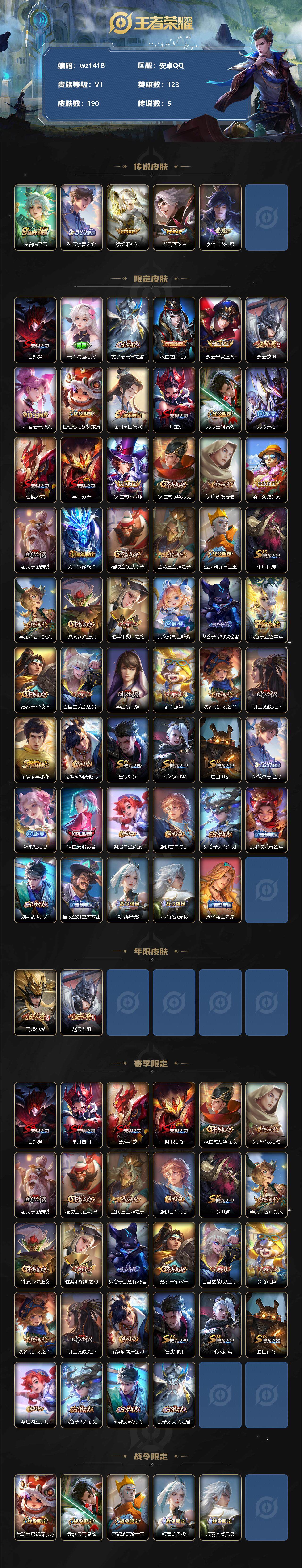 【游戏多多】【王者荣耀】【编号:3339518】【可二次实名】【wz1418】【商品标题】:安卓Q-V1-永恒钻石I段位-123英雄-190皮肤-0典藏-0珍品无双-0无双-0珍品传说-5传说-39史诗 【传说皮肤】:桑启鸣野蒿,孙策挚爱之约,镜炽阳神光,曜云鹰飞将,李信一念神魔 【限定皮肤】:白起狰,大乔绒语心约,姜子牙天穹之誓,狄仁杰阴阳师,赵云皇家上将,赵云龙胆,孙尚香蔷薇恋人,鲁班七号狮舞东方,庄周高山流水,芈月重明,元歌云间偶戏,元歌无心,曹操烛龙,典韦穷奇,狄仁杰魔术师,狄仁杰万华元夜,达摩沙漠行僧,项羽海滩派对,老夫子醍醐杖,关羽冰锋战神,程咬金演武夺筹,兰陵王金庭之子,亚瑟潮玩骑士王,牛魔御旌,李元芳云中旅人,钟馗驱傩正仪,雅典娜黎明之约,蔡文姬繁星吟游,鬼谷子原初探秘者,鬼谷子五谷丰年,苏烈千军破阵,百里玄策原初追逐者,弈星混沌棋,梦奇顽趣,沈梦溪大漠名商,明世隐疑决卦,裴擒虎李小龙,裴擒虎擒涛扼浪,狂铁御狮,米莱狄御霄,盾山御銮,孙策挚爱之约,嫦娥拒霜思,镜匿光追影者,桑启海盐诗旅,张良古海寻踪,鬼谷子天穹祈灯,沈梦溪龙舞盛年,刘邦剑破天穹,程咬金群星魔术团,镜青焰无极,项羽苍威无极,周瑜熔金海岸 【年限皮肤】:马超神威,赵云龙胆 【赛季限定】:白起狰,芈月重明,曹操烛龙,典韦穷奇,狄仁杰万华元夜,达摩沙漠行僧,老夫子醍醐杖,程咬金演武夺筹,兰陵王金庭之子,张良古海寻踪,牛魔御旌,李元芳云中旅人,钟馗驱傩正仪,雅典娜黎明之约,鬼谷子原初探秘者,苏烈千军破阵,百里玄策原初追逐者,弈星混沌棋,梦奇顽趣,沈梦溪大漠名商,明世隐疑决卦,裴擒虎擒涛扼浪,狂铁御狮,米莱狄御霄,盾山御銮,桑启海盐诗旅,鬼谷子天穹祈灯,刘邦剑破天穹,姜子牙天穹之誓 【战令限定】:鲁班七号狮舞东方,元歌云间偶戏,亚瑟潮玩骑士王,镜青焰无极,项羽苍威无极 【史诗皮肤】:露娜紫霞仙子,赵云皇家上将,貂蝉圣诞恋歌,甄姬冰雪圆舞曲,狄仁杰魔术师,廉颇地狱岩魂,宫本武藏鬼剑武藏,孙尚香蔷薇恋人,孙尚香水果甜心,妲己魅力维加斯,妲己女仆咖啡,墨子金属风暴,吕布圣诞狂欢,李白千年之狐,关羽冰锋战神,花木兰水晶猎龙者,小乔缤纷独角兽,兰陵王暗隐猎兽者,百里守约特工魅影,刘禅天才门将,李元芳逐浪之夏,孙策猫狗日记,鲁班七号狮舞东方,狄仁杰鹰眼统帅,蔡文姬繁星吟游,橘右京修罗,马超神威,赵云龙胆,百里玄策原初追逐者,裴擒虎李小龙,元歌云间偶戏,庄周高山流水,嫦娥拒霜思,镜匿光追影者,雅典娜黎明之约,鬼谷子五谷丰年,元歌无心,梦奇顽趣,镜青焰无极 【其他皮肤】:项羽海滩派对,韩信教廷特使,韩信街头霸王,露娜哥特玫瑰,达摩大发明家,赵云忍炎影,白起白色死神,武则天东方不败,扁鹊化身博士,宫本武藏未来纪元,安琪拉玩偶对对碰,孙膑天使之翼,妲己少女阿狸,典韦黄金武士,亚瑟死亡骑士,达摩拳王,花木兰兔女郎,张飞五福同心,甄姬花好人间,刘备万事如意,宫本武藏万象初新,狄仁杰阴阳师,关羽龙腾万里,白起狰,钟无艳海滩丽影,宫本武藏霸王丸,曹操烛龙,王昭君幻想奇妙夜,芈月重明,狂铁命运角斗场,老夫子功夫老勺,孙尚香沉稳之力,典韦穷奇,李白敏锐之力,鬼谷子幻乐之宴,狂铁御狮,苏烈坚韧之力,项羽科学大爆炸,米莱狄御霄,明世隐虹云星官,牛魔御旌,盾山御銮,沈梦溪鲨炮海盗猫,弈星混沌棋,哪吒次元突破,鲁班七号黑桃队长,明世隐疑决卦,老夫子醍醐杖,狂铁特工战影,鬼谷子原初探秘者,狄仁杰万华元夜,亚瑟潮玩骑士王,刘禅秘密基地,露娜瓷语鉴心,程咬金演武夺筹,张良缤纷绘卷,钟馗驱傩正仪,鲁班大师乓乓大师,苏烈千军破阵,马可波罗潮玩牛仔,达摩沙漠行僧,程咬金无双福将,兰陵王金庭之子,沈梦溪大漠名商,蒙恬蔚蓝守将,李元芳云中旅人,桑启海盐诗旅,猪八戒潮玩探月行,裴擒虎擒涛扼浪,太乙真人劲辣红锅,姬小满零食大作战,哪吒热血海滩,张良古海寻踪,后羿完美运算,鬼谷子天穹祈灯,廉颇功夫炙烤,沈梦溪龙舞盛年,刘邦剑破天穹,盘古经纬探寻者,程咬金群星魔术团,项羽苍威无极,大司命暗都幽影,姜子牙天穹之誓,周瑜熔金海岸,大乔绒语心约,盘古敬我三分,东皇太一噬灭天穹,干将莫邪雾都夜雨,苍苍林狼骑,太乙真人谧流熔炉,典韦铁骨偃魂,姜子牙星梦巡礼,戈娅玫蓝誓约,钟馗虚灵犬护,露娜命运加冕,姬小满小满鸭,高渐离金属狂潮,露娜绯红之刃,钟无艳生化警戒,貂蝉异域舞娘,王昭君精灵公主,曹操超能战警,孙膑未来旅行,孙悟空西部大镖客,周瑜海军大将,后羿精灵王,李白范海辛,钟馗地府判官,李元芳特种部队,刘邦圣殿之光,虞姬加勒比小姐,夏侯惇战争骑士,雅典娜战争女神,马可波罗激情绿茵,苍维京掠夺者,诸葛亮星航指挥官,黄忠芝加哥教父,大乔伊势巫女,东皇太一东海龙王,干将莫邪第七人偶,鬼谷子阿摩司公爵,铠龙域领主,百里守约绝影神枪,百里玄策威尼斯狂欢,苏烈爱与和平,女娲尼罗河女神,公孙离花间舞,杨