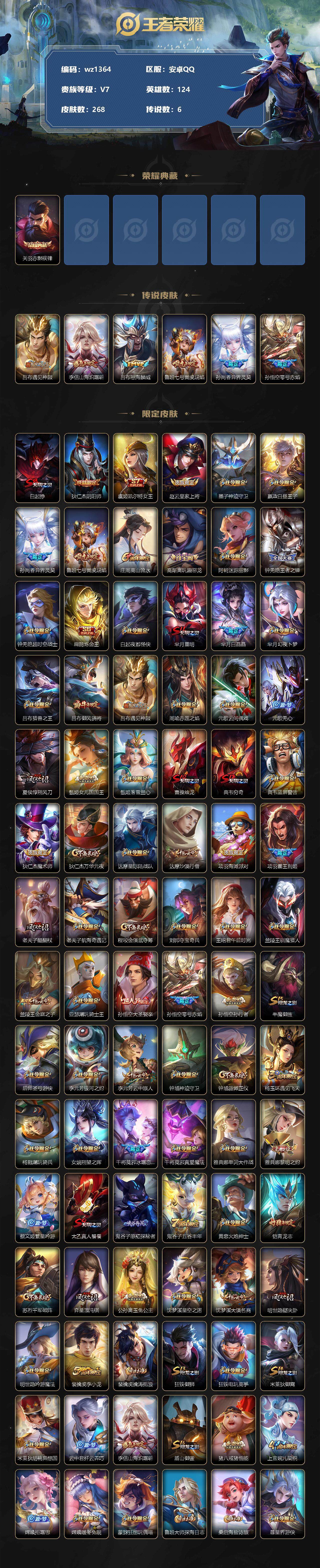 【游戏多多】【王者荣耀】【编号:3339561】【可二次实名】【wz1364】【商品标题】:安卓Q-V7-最强王者段位-124英雄-268皮肤-1典藏-0珍品无双-0无双-0珍品传说-6传说-67史诗 【荣耀典藏】:关羽赤影疾锋 【传说皮肤】:吕布遇见神鼓,李信山海炽霜斩,吕布怒海麟威,鲁班七号寅虎瑞焰,孙尚香异界灵契,孙悟空零号赤焰 【限定皮肤】:白起狰,狄仁杰阴阳师,虞姬凯尔特女王,赵云皇家上将,墨子神迹守卫,嬴政白昼王子,孙尚香异界灵契,鲁班七号寅虎瑞焰,庄周高山流水,高渐离玩趣恶龙,阿轲迷踪丽影,钟无艳王者之锤,钟无艳超时空战士,扁鹊炼金王,白起夜都怪侠,芈月重明,芈月白晶晶,芈月幻夜卜梦,吕布猎兽之王,吕布御风骁将,吕布遇见神鼓,周瑜赤莲之焰,元歌云间偶戏,元歌无心,夏侯惇朔风刀,甄姬女儿国国王,甄姬落雪兰心,曹操烛龙,典韦穷奇,典韦蓝屏警告,狄仁杰魔术师,狄仁杰万华元夜,达摩星际陆战队,达摩沙漠行僧,项羽海滩派对,项羽霸王别姬,老夫子醍醐杖,老夫子航海奇遇记,程咬金演武夺筹,刘邦夺宝奇兵,王昭君午后时光,兰陵王驯魔猎人,兰陵王金庭之子,亚瑟潮玩骑士王,孙悟空大圣娶亲,孙悟空零号赤焰,孙悟空孙行者,牛魔御旌,后羿圣弓游侠,李元芳银河之约,李元芳云中旅人,钟馗神迹守卫,钟馗驱傩正仪,杨玉环遇见飞天,杨戬潮玩骑兵,女娲朔望之晖,干将莫邪冰霜恋舞曲,干将莫邪真爱魔法,雅典娜单词大作战,雅典娜黎明之约,蔡文姬繁星吟游,太乙真人饕餮,鬼谷子原初探秘者,鬼谷子五谷丰年,黄忠火炮绅士,铠青龙志,苏烈千军破阵,弈星混沌棋,公孙离玉兔公主,沈梦溪星空之诺,沈梦溪大漠名商,明世隐疑决卦,明世隐吟游魔法,裴擒虎李小龙,裴擒虎擒涛扼浪,狂铁御狮,狂铁电玩高手,米莱狄御霄,米莱狄胡桃异想国,云中君纤云弄巧,李信山海炽霜斩,盾山御銮,猪八戒猪悟能,上官婉儿梁祝,嫦娥拒霜思,嫦娥暖冬兔眠,蒙犽狂想玩偶喵,鲁班大师探海日志,桑启海盐诗旅,暃星界游侠,艾琳女武神,艾琳流音漫舞,司空震地狱燃心,阿古朵江河有灵,张良古海寻踪,鬼谷子天穹祈灯 【年限皮肤】:铠青龙志,鲁班七号寅虎瑞焰,吕布御风骁将,李信山海炽霜斩 【赛季限定】:扁鹊炼金王,白起狰,芈月重明,夏侯惇朔风刀,曹操烛龙,典韦穷奇,狄仁杰万华元夜,达摩沙漠行僧,老夫子醍醐杖,程咬金演武夺筹,兰陵王金庭之子,张良古海寻踪,牛魔御旌,李元芳云中旅人,虞姬凯尔特女王,钟馗驱傩正仪,雅典娜黎明之约,太乙真人饕餮,鬼谷子原初探秘者,苏烈千军破阵,弈星混沌棋,沈梦溪大漠名商,明世隐疑决卦,裴擒虎擒涛扼浪,狂铁御狮,米莱狄御霄,盾山御銮,鲁班大师探海日志,桑启海盐诗旅,鬼谷子天穹祈灯 【战令限定】:墨子神迹守卫,嬴政白昼王子,阿轲迷踪丽影,钟无艳超时空战士,白起夜都怪侠,芈月幻夜卜梦,吕布猎兽之王,周瑜赤莲之焰,元歌云间偶戏,甄姬落雪兰心,典韦蓝屏警告,达摩星际陆战队,老夫子航海奇遇记,刘邦夺宝奇兵,王昭君午后时光,兰陵王驯魔猎人,艾琳流音漫舞,亚瑟潮玩骑士王,后羿圣弓游侠,李元芳银河之约,钟馗神迹守卫,杨戬潮玩骑兵,女娲朔望之晖,干将莫邪真爱魔法,雅典娜单词大作战,黄忠火炮绅士,沈梦溪星空之诺,明世隐吟游魔法,狂铁电玩高手,米莱狄胡桃异想国,嫦娥暖冬兔眠,蒙犽狂想玩偶喵,司空震地狱燃心,暃星界游侠 【史诗皮肤】:露娜紫霞仙子,钟无艳王者之锤,赵云皇家上将,赵云未来纪元,貂蝉圣诞恋歌,甄姬冰雪圆舞曲,王昭君偶像歌手,狄仁杰魔术师,廉颇地狱岩魂,宫本武藏鬼剑武藏,孙尚香水果甜心,嬴政摇滚巨星,妲己魅力维加斯,妲己女仆咖啡,墨子龙骑士,墨子金属风暴,吕布圣诞狂欢,刘禅绅士熊喵,曹操幽灵船长,吕布末日机甲,项羽霸王别姬,花木兰水晶猎龙者,夏侯惇乘风破浪,小乔缤纷独角兽,诸葛亮黄金分割率,李元芳逐浪之夏,杨玉环遇见飞天,嬴政白昼王子,孙策猫狗日记,铠青龙志,干将莫邪冰霜恋舞曲,孙悟空大圣娶亲,典韦蓝屏警告,狄仁杰鹰眼统帅,兰陵王驯魔猎人,上官婉儿梁祝,蔡文姬繁星吟游,李元芳银河之约,不知火舞魅语,阿轲迷踪丽影,橘右京修罗,蒙犽狂想玩偶喵,裴擒虎李小龙,云中君纤云弄巧,元歌云间偶戏,芈月白晶晶,吕布御风骁将,米莱狄胡桃异想国,老夫子航海奇遇记,干将莫邪真爱魔法,孙悟空孙行者,猪八戒猪悟能,庄周高山流水,嫦娥拒霜思,黄忠火炮绅士,雅典娜黎明之约,甄姬女儿国国王,公孙离玉兔公主,明世隐吟游魔法,狂铁电玩高手,钟无艳超时空战士,鬼谷子五谷丰年,元歌无心,暃星界游侠,司空震地狱燃心,阿古朵江河有灵,黄忠百相守梦 【其他皮肤】:项羽海滩派对,韩信教廷特使,露娜哥特玫瑰,达摩大发明家,赵云忍炎影,芈月红桃皇后,艾琳女武神,白起白色死神,扁鹊化身博士,宫本武藏未来纪元,安琪拉玩偶对对碰,孙膑天使之翼,妲己少女阿狸,典韦黄金武士,亚瑟死亡骑士,达摩拳王,花木兰兔女郎,张飞五福同心,甄姬花好人间