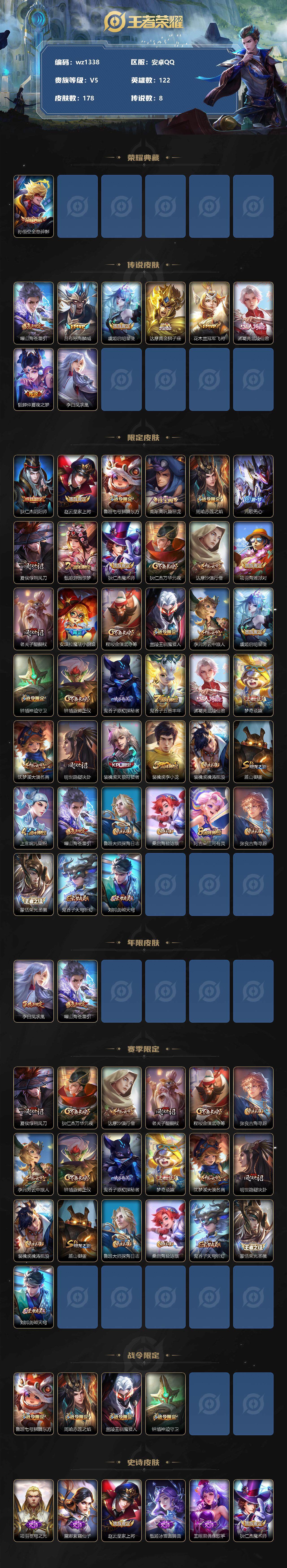 【游戏多多】【王者荣耀】【编号:3339565】【可二次实名】【wz1338】【商品标题】:安卓Q-V5-最强王者段位-122英雄-178皮肤-1典藏-0珍品无双-0无双-0珍品传说-8传说-48史诗 【荣耀典藏】:孙悟空全息碎影 【传说皮肤】:曜山海苍雷引,吕布怒海麟威,虞姬启明星使,达摩黄金狮子座,花木兰冠军飞将,诸葛亮武陵仙君,貂蝉仲夏夜之梦,李白凤求凰 【限定皮肤】:狄仁杰阴阳师,赵云皇家上将,鲁班七号狮舞东方,高渐离玩趣恶龙,周瑜赤莲之焰,元歌无心,夏侯惇朔风刀,甄姬游园惊梦,狄仁杰魔术师,狄仁杰万华元夜,达摩沙漠行僧,项羽海滩派对,老夫子醍醐杖,安琪拉魔法小厨娘,程咬金演武夺筹,兰陵王驯魔猎人,李元芳云中旅人,虞姬启明星使,钟馗神迹守卫,钟馗驱傩正仪,鬼谷子原初探秘者,鬼谷子五谷丰年,诸葛亮武陵仙君,梦奇顽趣,沈梦溪大漠名商,明世隐疑决卦,裴擒虎天狼狩猎者,裴擒虎李小龙,裴擒虎擒涛扼浪,盾山御銮,上官婉儿梁祝,曜山海苍雷引,鲁班大师探海日志,桑启海盐诗旅,阿古朵江河有灵,张良古海寻踪,蒙恬荣光圣徽,鬼谷子天穹祈灯,刘邦剑破天穹 【年限皮肤】:李白凤求凰,曜山海苍雷引 【赛季限定】:夏侯惇朔风刀,狄仁杰万华元夜,达摩沙漠行僧,老夫子醍醐杖,程咬金演武夺筹,张良古海寻踪,李元芳云中旅人,钟馗驱傩正仪,鬼谷子原初探秘者,梦奇顽趣,沈梦溪大漠名商,明世隐疑决卦,裴擒虎擒涛扼浪,盾山御銮,鲁班大师探海日志,桑启海盐诗旅,鬼谷子天穹祈灯,蒙恬荣光圣徽,刘邦剑破天穹 【战令限定】:鲁班七号狮舞东方,周瑜赤莲之焰,兰陵王驯魔猎人,钟馗神迹守卫 【史诗皮肤】:项羽苍穹之光,露娜紫霞仙子,赵云皇家上将,甄姬冰雪圆舞曲,王昭君偶像歌手,狄仁杰魔术师,廉颇地狱岩魂,孙尚香水果甜心,妲己魅力维加斯,墨子金属风暴,吕布圣诞狂欢,曹操幽灵船长,李白千年之狐,安琪拉魔法小厨娘,张飞乱世虎臣,韩信白龙吟,花木兰水晶猎龙者,刘邦德古拉伯爵,夏侯惇乘风破浪,小乔缤纷独角兽,兰陵王暗隐猎兽者,诸葛亮黄金分割率,甄姬游园惊梦,雅典娜冰冠公主,铠曙光守护者,程咬金功夫厨神,白起星夜王子,孙策猫狗日记,裴擒虎天狼狩猎者,鲁班七号狮舞东方,狄仁杰鹰眼统帅,公孙离无限星赏官,兰陵王驯魔猎人,上官婉儿梁祝,孙尚香时之恋人,裴擒虎李小龙,鬼谷子五谷丰年,元歌无心,梦奇顽趣,刘禅电玩爆裂旋风,阿古朵江河有灵,蒙恬荣光圣徽,亚连糖绘人间,芈月瑰影绮梦,阿轲化蝶舞,扁鹊灵蛊蚀心,老夫子藏狐褐绒,黄忠百相守梦 【其他皮肤】:项羽海滩派对,韩信教廷特使,韩信街头霸王,露娜哥特玫瑰,赵云忍炎影,芈月红桃皇后,白起白色死神,牛魔西部大镖客,武则天东方不败,扁鹊化身博士,宫本武藏未来纪元,安琪拉玩偶对对碰,妲己少女阿狸,典韦黄金武士,亚瑟死亡骑士,达摩拳王,花木兰兔女郎,甄姬花好人间,刘备万事如意,宫本武藏万象初新,狄仁杰阴阳师,刘备汉昭烈帝,关羽龙腾万里,钟无艳海滩丽影,王昭君幻想奇妙夜,老夫子功夫老勺,孙尚香沉稳之力,诸葛亮掌控之力,大乔守护之力,钟馗神迹守卫,盾山御銮,孙膑归虚梦演,高渐离玩趣恶龙,沈梦溪鲨炮海盗猫,姜子牙炽热元素使,夏侯惇朔风刀,周瑜赤莲之焰,哪吒次元突破,明世隐疑决卦,老夫子醍醐杖,鬼谷子原初探秘者,狄仁杰万华元夜,程咬金演武夺筹,钟馗驱傩正仪,鲁班大师乓乓大师,达摩沙漠行僧,沈梦溪大漠名商,蒙犽胡桃狂想曲,李元芳云中旅人,桑启海盐诗旅,海月幻泉雾影,白起乐园追猎者,裴擒虎擒涛扼浪,鲁班大师探海日志,李元芳妄想特派,张良古海寻踪,钟无艳聚星闪耀,海月王牌新星,亚连破局者,后羿完美运算,鬼谷子天穹祈灯,廉颇功夫炙烤,刘邦剑破天穹,干将莫邪雾都夜雨,苍苍林狼骑,太乙真人谧流熔炉,典韦铁骨偃魂,西施雪境奇遇,姜子牙星梦巡礼,明世隐景韶洛都,戈娅玫蓝誓约,刘备浪漫序章,钟馗虚灵犬护,苏烈春野闲踪,小乔秘证寻踪,张良灵野札记,阿古朵布丁狗之约,露娜命运加冕,姬小满小满鸭,白起死霸装,甄姬逆浪荇歌,庄周锦麟游梦,雅典娜神奇女侠,鲁班七号福禄兄弟,高渐离金属狂潮,露娜绯红之刃,花木兰剑舞者,王昭君精灵公主,曹操死神来了,曹操超能战警,张良一千零一夜,孙膑未来旅行,孙悟空西部大镖客,李元芳特种部队,马可波罗激情绿茵,杨戬埃及法老,哪吒三太子,诸葛亮星航指挥官,黄忠芝加哥教父,东皇太一东海龙王,干将莫邪第七人偶,百里守约绝影神枪,百里玄策威尼斯狂欢,苏烈爱与和平,梦奇美梦成真,女娲尼罗河女神,裴擒虎街头旋风,弈星踏雪寻梅,元歌午夜歌剧院,伽罗花见巫女,沈梦溪棒球奇才,李信灼热之刃,上官婉儿修竹墨客,云中君荷鲁斯之眼,曜归虚梦演,马超幸存者,蒙恬秩序猎龙将,澜孤猎,云缨赤焰之缨,金蝉前尘,桑启画中游 【内测皮肤】:高渐离玩趣恶龙 【营地ID】:542496800