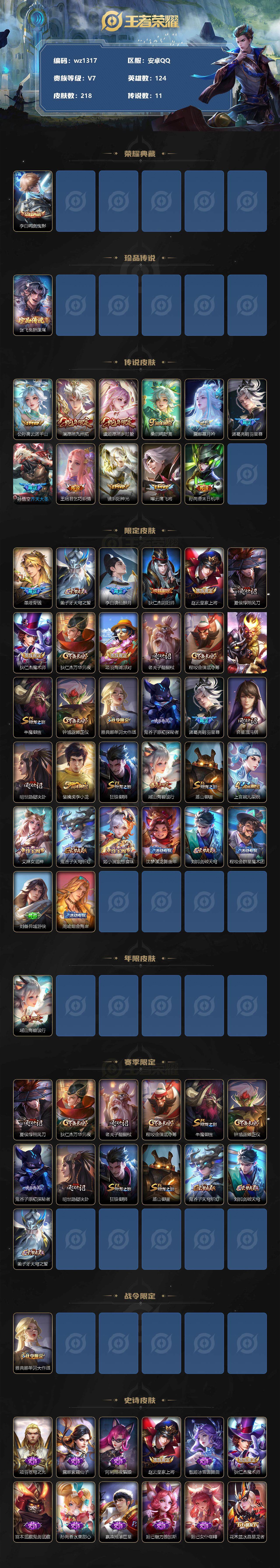 【游戏多多】【王者荣耀】【编号:3339581】【可二次实名】【wz1317】【商品标题】:安卓Q-V7-至尊星耀III段位-124英雄-218皮肤-1典藏-0珍品无双-0无双-1珍品传说-11传说-50史诗 【荣耀典藏】:李白鸣剑曳影 【珍品传说】:张飞兔狲蓬尾 【传说皮肤】:公孙离云诺千山,澜愿照九州拓,虞姬愿照岁时盈,桑启鸣野蒿,露娜霜月吟,诸葛亮鹤羽星尊,孙悟空齐天大圣,王昭君乞巧织情,镜炽阳神光,曜云鹰飞将,孙尚香末日机甲 【限定皮肤】:暃埋骨钱,姜子牙天穹之誓,李白谪仙醉月,狄仁杰阴阳师,赵云皇家上将,夏侯惇朔风刀,狄仁杰魔术师,狄仁杰万华元夜,项羽海滩派对,老夫子醍醐杖,程咬金演武夺筹,孙悟空齐天大圣,牛魔御旌,钟馗驱傩正仪,雅典娜单词大作战,鬼谷子原初探秘者,诸葛亮鹤羽星尊,弈星混沌棋,明世隐疑决卦,裴擒虎李小龙,狂铁御狮,瑶山海碧波行,盾山御銮,上官婉儿梁祝,艾琳女武神,鬼谷子天穹祈灯,姬小满妄想食味,沈梦溪龙舞盛年,刘邦剑破天穹,程咬金群星魔术团,刘备异域游侠,周瑜熔金海岸 【年限皮肤】:瑶山海碧波行 【赛季限定】:夏侯惇朔风刀,狄仁杰万华元夜,老夫子醍醐杖,程咬金演武夺筹,牛魔御旌,钟馗驱傩正仪,鬼谷子原初探秘者,弈星混沌棋,明世隐疑决卦,狂铁御狮,盾山御銮,鬼谷子天穹祈灯,刘邦剑破天穹,姜子牙天穹之誓 【战令限定】:雅典娜单词大作战 【史诗皮肤】:项羽苍穹之光,露娜紫霞仙子,阿轲暗夜猫娘,赵云皇家上将,甄姬冰雪圆舞曲,狄仁杰魔术师,宫本武藏鬼剑武藏,孙尚香水果甜心,嬴政摇滚巨星,妲己魅力维加斯,妲己女仆咖啡,花木兰水晶猎龙者,刘邦德古拉伯爵,夏侯惇乘风破浪,兰陵王暗隐猎兽者,诸葛亮黄金分割率,百里守约特工魅影,铠曙光守护者,蔡文姬舞动绿茵,李元芳逐浪之夏,白起星夜王子,阿轲节奏热浪,孙策猫狗日记,大乔猫狗日记,狄仁杰鹰眼统帅,上官婉儿梁祝,橘右京修罗,瑶遇见神鹿,裴擒虎李小龙,杨戬天秀启明,钟馗乐园奇幻夜,司马懿暗渊魔法,夏洛特永昼,澜赏金猎手,瑶山海碧波行,姬小满妄想食味,黄忠怒海争锋,暃埋骨钱,大司命东方月初,李白谪仙醉月,百里守约百相守梦,牛魔星界战将,姬小满飞车小橘子,赵怀真器灵浮梦炉,苍狼魂孤将,阿轲化蝶舞,刘禅鸭鸭历险记,狂铁龙之律动,黄忠百相守梦,朵莉亚幻珠鲛人 【其他皮肤】:项羽海滩派对,韩信教廷特使,韩信街头霸王,露娜哥特玫瑰,达摩大发明家,赵云忍炎影,芈月红桃皇后,艾琳女武神,程咬金星际陆战队,牛魔西部大镖客,扁鹊化身博士,安琪拉玩偶对对碰,孙膑天使之翼,姜子牙时尚教父,妲己少女阿狸,典韦黄金武士,亚瑟死亡骑士,达摩拳王,花木兰兔女郎,张飞五福同心,甄姬花好人间,刘备万事如意,宫本武藏万象初新,后羿阿尔法小队,狄仁杰阴阳师,刘备纽约教父,刘备汉昭烈帝,关羽龙腾万里,钟无艳海滩丽影,宫本武藏霸王丸,王昭君幻想奇妙夜,老夫子功夫老勺,孙尚香沉稳之力,李白敏锐之力,鬼谷子幻乐之宴,狂铁御狮,大乔守护之力,明世隐虹云星官,牛魔御旌,小乔丁香结,盾山御銮,孙膑归虚梦演,沈梦溪鲨炮海盗猫,姜子牙炽热元素使,夏侯惇朔风刀,弈星混沌棋,哪吒次元突破,鲁班七号黑桃队长,明世隐疑决卦,盾山圆桌骑士,老夫子醍醐杖,廉颇无尽征程,鬼谷子原初探秘者,雅典娜单词大作战,狄仁杰万华元夜,刘禅秘密基地,程咬金演武夺筹,张良缤纷绘卷,钟馗驱傩正仪,鲁班大师乓乓大师,马可波罗潮玩牛仔,程咬金无双福将,刘邦虎啸剑宗,刘禅唤灵魔甲,米莱狄契约魔法,蒙犽胡桃狂想曲,猪八戒潮玩探月行,赵怀真太极少年,姬小满零食大作战,后羿完美运算,鬼谷子天穹祈灯,海诺时空谍影,廉颇功夫炙烤,沈梦溪龙舞盛年,钟无艳春野之旅,刘邦剑破天穹,程咬金群星魔术团,大司命暗都幽影,刘备异域游侠,姜子牙天穹之誓,周瑜熔金海岸,盘古敬我三分,东皇太一噬灭天穹,亚瑟动物派对,老夫子百相守梦,米莱狄怪诞之夜,吕布逐霄战戟,苍苍林狼骑,太乙真人谧流熔炉,典韦铁骨偃魂,影魅影绮裳,西施雪境奇遇,姜子牙星梦巡礼,东皇太一金福满堂,达摩爆裂喵拳,少司缘灵卦秘语,明世隐景韶洛都,戈娅玫蓝誓约,钟馗虚灵犬护,沈梦溪鸭鸭历险记,苏烈春野闲踪,小乔秘证寻踪,阿古朵布丁狗之约,露娜命运加冕,雅典娜潮玩士官长,姬小满小满鸭,白起死霸装,甄姬逆浪荇歌,庄周锦麟游梦,鲁班七号福禄兄弟,高渐离金属狂潮,露娜绯红之刃,貂蝉异域舞娘,曹操超能战警,孙悟空西部大镖客,刘禅英喵野望,兰陵王隐刃,钟馗地府判官,虞姬加勒比小姐,雅典娜战争女神,马可波罗激情绿茵,苍维京掠夺者,杨戬埃及法老,诸葛亮星航指挥官,东皇太一东海龙王,鬼谷子阿摩司公爵,铠龙域领主,百里守约绝影神枪,苏烈爱与和平,梦奇美梦成真,女娲尼罗河女神,公孙离花间舞,杨玉环霓裳曲,裴擒虎街头旋风,弈星踏雪寻梅,元歌午夜歌剧院,司马懿魇语军师,盾山极冰防御线,李信灼热之刃,上官婉儿修竹墨客,嫦娥露