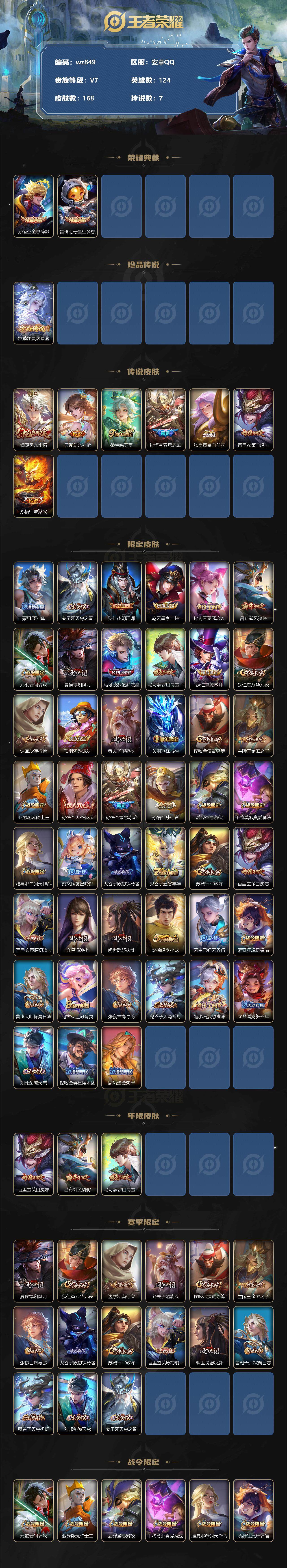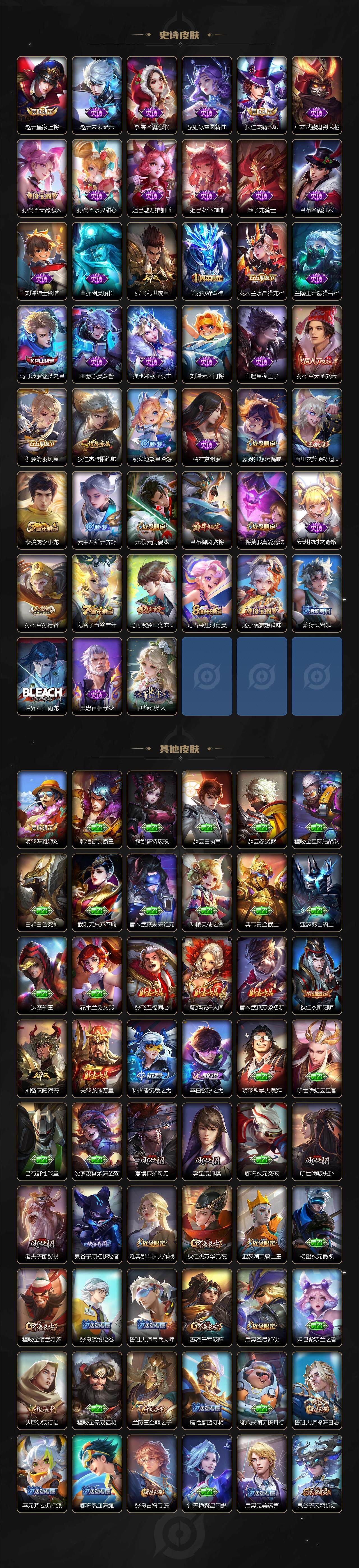 【游戏多多】【王者荣耀】【编号:3339825】【可二次实名】【wz849】【商品标题】:安卓Q-V7-最强王者段位-124英雄-168皮肤-2典藏-0珍品无双-0无双-1珍品传说-7传说-45史诗 【荣耀典藏】:孙悟空全息碎影,鲁班七号星空梦想 【珍品传说】:嫦娥器灵落星盏 【传说皮肤】:澜愿照九州拓,云缨幻光神枪,桑启鸣野蒿,孙悟空零号赤焰,张良黄金白羊座,百里玄策白虎志,孙悟空地狱火 【限定皮肤】:蒙犽顽岩魄,姜子牙天穹之誓,狄仁杰阴阳师,赵云皇家上将,孙尚香蔷薇恋人,吕布御风骁将,元歌云间偶戏,夏侯惇朔风刀,马可波罗逐梦之星,马可波罗山海玄木吟,狄仁杰魔术师,狄仁杰万华元夜,达摩沙漠行僧,项羽海滩派对,老夫子醍醐杖,关羽冰锋战神,程咬金演武夺筹,兰陵王金庭之子,亚瑟潮玩骑士王,孙悟空大圣娶亲,孙悟空零号赤焰,孙悟空孙行者,后羿圣弓游侠,干将莫邪真爱魔法,雅典娜单词大作战,蔡文姬繁星吟游,鬼谷子原初探秘者,鬼谷子五谷丰年,苏烈千军破阵,百里玄策白虎志,百里玄策原初追逐者,弈星混沌棋,明世隐疑决卦,裴擒虎李小龙,云中君纤云弄巧,蒙犽狂想玩偶喵,鲁班大师探海日志,阿古朵江河有灵,张良古海寻踪,鬼谷子天穹祈灯,姬小满妄想食味,沈梦溪龙舞盛年,刘邦剑破天穹,程咬金群星魔术团,周瑜熔金海岸 【年限皮肤】:百里玄策白虎志,吕布御风骁将,马可波罗山海玄木吟 【赛季限定】:夏侯惇朔风刀,狄仁杰万华元夜,达摩沙漠行僧,老夫子醍醐杖,程咬金演武夺筹,兰陵王金庭之子,张良古海寻踪,鬼谷子原初探秘者,苏烈千军破阵,百里玄策原初追逐者,弈星混沌棋,明世隐疑决卦,鲁班大师探海日志,鬼谷子天穹祈灯,刘邦剑破天穹,姜子牙天穹之誓 【战令限定】:元歌云间偶戏,亚瑟潮玩骑士王,后羿圣弓游侠,干将莫邪真爱魔法,雅典娜单词大作战,蒙犽狂想玩偶喵 【史诗皮肤】:赵云皇家上将,赵云未来纪元,貂蝉圣诞恋歌,甄姬冰雪圆舞曲,狄仁杰魔术师,宫本武藏鬼剑武藏,孙尚香蔷薇恋人,孙尚香水果甜心,妲己魅力维加斯,妲己女仆咖啡,墨子龙骑士,吕布圣诞狂欢,刘禅绅士熊喵,曹操幽灵船长,张飞乱世虎臣,关羽冰锋战神,花木兰水晶猎龙者,兰陵王暗隐猎兽者,马可波罗逐梦之星,亚瑟心灵战警,雅典娜冰冠公主,刘禅天才门将,白起星夜王子,孙悟空大圣娶亲,伽罗箭羽风息,狄仁杰鹰眼统帅,蔡文姬繁星吟游,橘右京修罗,蒙犽狂想玩偶喵,百里玄策原初追逐者,裴擒虎李小龙,云中君纤云弄巧,元歌云间偶戏,吕布御风骁将,干将莫邪真爱魔法,安琪拉时之奇旅,孙悟空孙行者,鬼谷子五谷丰年,马可波罗山海玄木吟,阿古朵江河有灵,姬小满妄想食味,蒙犽顽岩魄,后羿石田雨龙,黄忠百相守梦,西施织梦人 【其他皮肤】:项羽海滩派对,韩信街头霸王,露娜哥特玫瑰,赵云白执事,赵云忍炎影,程咬金星际陆战队,白起白色死神,武则天东方不败,宫本武藏未来纪元,孙膑天使之翼,典韦黄金武士,亚瑟死亡骑士,达摩拳王,花木兰兔女郎,张飞五福同心,甄姬花好人间,宫本武藏万象初新,狄仁杰阴阳师,刘备汉昭烈帝,关羽龙腾万里,孙尚香沉稳之力,李白敏锐之力,项羽科学大爆炸,明世隐虹云星官,吕布野性能量,沈梦溪鲨炮海盗猫,夏侯惇朔风刀,弈星混沌棋,哪吒次元突破,明世隐疑决卦,老夫子醍醐杖,鬼谷子原初探秘者,雅典娜单词大作战,狄仁杰万华元夜,亚瑟潮玩骑士王,杨戬次元傲视,程咬金演武夺筹,张良缤纷绘卷,鲁班大师乓乓大师,苏烈千军破阵,后羿圣弓游侠,妲己紫罗兰之誓,达摩沙漠行僧,程咬金无双福将,兰陵王金庭之子,蒙恬蔚蓝守将,猪八戒潮玩探月行,鲁班大师探海日志,李元芳妄想特派,哪吒热血海滩,张良古海寻踪,钟无艳聚星闪耀,后羿完美运算,鬼谷子天穹祈灯,嫦娥漠中幻影,廉颇功夫炙烤,沈梦溪龙舞盛年,刘邦剑破天穹,程咬金群星魔术团,姜子牙天穹之誓,周瑜熔金海岸,盘古敬我三分,东皇太一噬灭天穹,干将莫邪雾都夜雨,苍苍林狼骑,太乙真人谧流熔炉,典韦铁骨偃魂,西施雪境奇遇,姜子牙星梦巡礼,戈娅玫蓝誓约,钟馗虚灵犬护,苏烈春野闲踪,张良灵野札记,阿古朵布丁狗之约,姬小满小满鸭,白起死霸装,甄姬逆浪荇歌,云中君云械蓝图,庄周锦麟游梦,莱西奥踏浪烽翎,鬼谷子克喵,貂蝉异域舞娘,曹操死神来了,曹操超能战警,孙悟空西部大镖客,周瑜海军大将,兰陵王隐刃,虞姬加勒比小姐,夏侯惇战争骑士,雅典娜战争女神,马可波罗激情绿茵,干将莫邪第七人偶,百里守约绝影神枪,百里玄策威尼斯狂欢,女娲尼罗河女神,公孙离花间舞,弈星踏雪寻梅,元歌午夜歌剧院,孙策海之征途,上官婉儿修竹墨客,嫦娥露花倒影,猪八戒年年有余,盘古创世神祝,曜归虚梦演,马超幸存者,西施归虚梦演,鲁班大师归虚梦演,镜冰刃幻境,澜孤猎,司空震启蛰,云缨赤焰之缨,金蝉前尘,暃碧珀绯影 【内测皮肤】:孙尚香蔷薇恋人 【营地ID】:98038364