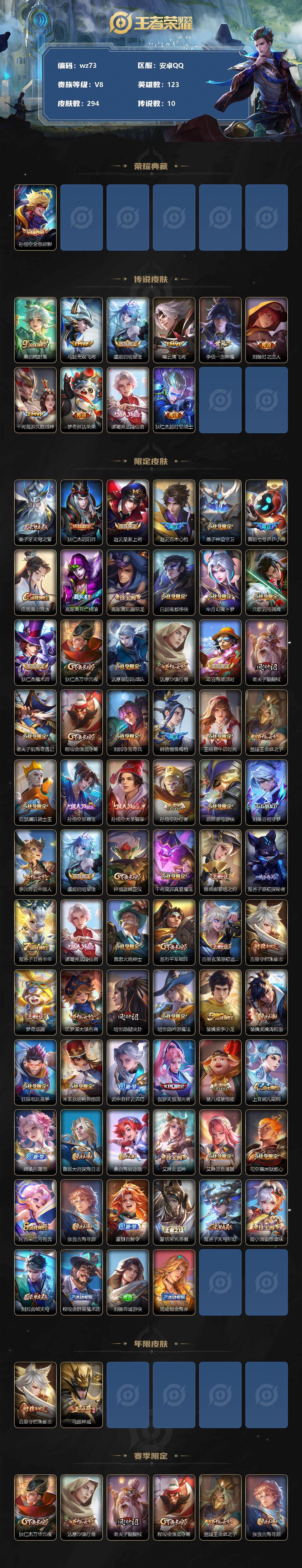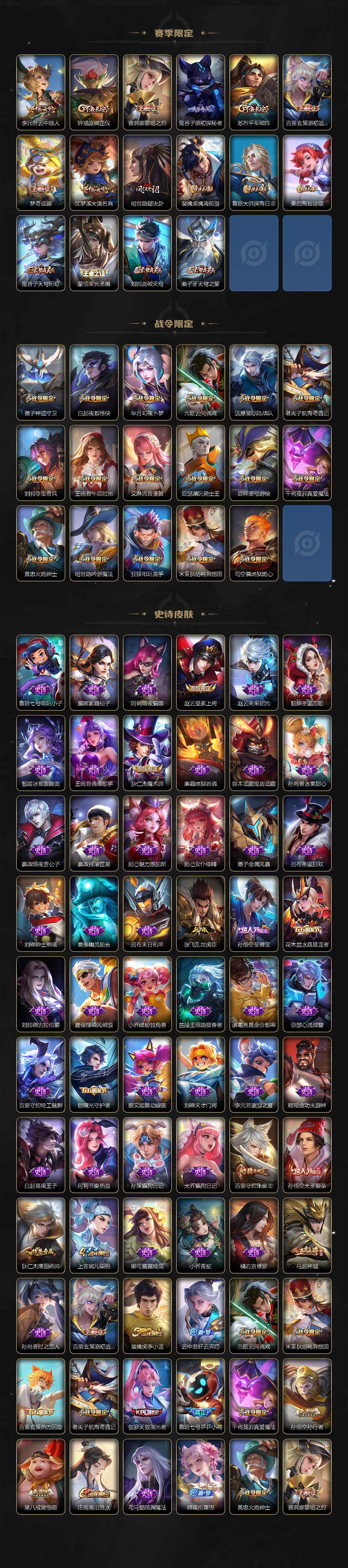 【游戏多多】【王者荣耀】【编号:3340098】【可二次实名】【wz73】【商品标题】:安卓Q-V8-最强王者段位-123英雄-294皮肤-1典藏-0珍品无双-0无双-0珍品传说-10传说-89史诗 【荣耀典藏】:孙悟空全息碎影 【传说皮肤】:桑启鸣野蒿,马超无双飞将,虞姬启明星使,曜云鹰飞将,李信一念神魔,刘备时之恋人,干将莫邪久胜战神,梦奇胖达荣荣,诸葛亮武陵仙君,狄仁杰超时空战士 【限定皮肤】:姜子牙天穹之誓,狄仁杰阴阳师,赵云皇家上将,赵云百木心枪,墨子神迹守卫,鲁班七号乒乒小将,庄周高山流水,高渐离死亡摇滚,高渐离玩趣恶龙,白起夜都怪侠,芈月幻夜卜梦,元歌云间偶戏,狄仁杰魔术师,狄仁杰万华元夜,达摩星际陆战队,达摩沙漠行僧,项羽海滩派对,老夫子醍醐杖,老夫子航海奇遇记,程咬金演武夺筹,刘邦夺宝奇兵,韩信傲雪梅枪,王昭君午后时光,兰陵王金庭之子,亚瑟潮玩骑士王,孙悟空至尊宝,孙悟空大圣娶亲,孙悟空孙行者,后羿圣弓游侠,刘备百相守梦,李元芳云中旅人,虞姬启明星使,钟馗驱傩正仪,干将莫邪真爱魔法,雅典娜黎明之约,鬼谷子原初探秘者,鬼谷子五谷丰年,诸葛亮武陵仙君,黄忠火炮绅士,苏烈千军破阵,百里玄策原初追逐者,百里守约朱雀志,梦奇顽趣,沈梦溪大漠名商,明世隐疑决卦,明世隐吟游魔法,裴擒虎李小龙,裴擒虎擒涛扼浪,狂铁电玩高手,米莱狄胡桃异想国,云中君纤云弄巧,伽罗天狼溯光者,猪八戒猪悟能,上官婉儿梁祝,嫦娥拒霜思,鲁班大师探海日志,桑启海盐诗旅,艾琳女武神,艾琳流音漫舞,司空震地狱燃心,阿古朵江河有灵,张良古海寻踪,蒙犽百解令,蒙恬荣光圣徽,鬼谷子天穹祈灯,姬小满妄想食味,刘邦剑破天穹,程咬金群星魔术团,刘备异域游侠,周瑜熔金海岸 【年限皮肤】:百里守约朱雀志,马超神威 【赛季限定】:狄仁杰万华元夜,达摩沙漠行僧,老夫子醍醐杖,程咬金演武夺筹,兰陵王金庭之子,张良古海寻踪,李元芳云中旅人,钟馗驱傩正仪,雅典娜黎明之约,鬼谷子原初探秘者,苏烈千军破阵,百里玄策原初追逐者,梦奇顽趣,沈梦溪大漠名商,明世隐疑决卦,裴擒虎擒涛扼浪,鲁班大师探海日志,桑启海盐诗旅,鬼谷子天穹祈灯,蒙恬荣光圣徽,刘邦剑破天穹,姜子牙天穹之誓 【战令限定】:墨子神迹守卫,白起夜都怪侠,芈月幻夜卜梦,元歌云间偶戏,达摩星际陆战队,老夫子航海奇遇记,刘邦夺宝奇兵,王昭君午后时光,艾琳流音漫舞,亚瑟潮玩骑士王,后羿圣弓游侠,干将莫邪真爱魔法,黄忠火炮绅士,明世隐吟游魔法,狂铁电玩高手,米莱狄胡桃异想国,司空震地狱燃心 【史诗皮肤】:鲁班七号电玩小子,露娜紫霞仙子,阿轲暗夜猫娘,赵云皇家上将,赵云未来纪元,貂蝉圣诞恋歌,甄姬冰雪圆舞曲,王昭君偶像歌手,狄仁杰魔术师,廉颇地狱岩魂,宫本武藏鬼剑武藏,孙尚香水果甜心,嬴政暗夜贵公子,嬴政摇滚巨星,妲己魅力维加斯,妲己女仆咖啡,墨子金属风暴,吕布圣诞狂欢,刘禅绅士熊喵,曹操幽灵船长,吕布末日机甲,张飞乱世虎臣,孙悟空至尊宝,花木兰水晶猎龙者,刘邦德古拉伯爵,夏侯惇乘风破浪,小乔缤纷独角兽,兰陵王暗隐猎兽者,诸葛亮黄金分割率,亚瑟心灵战警,百里守约特工魅影,铠曙光守护者,蔡文姬舞动绿茵,刘禅天才门将,李元芳逐浪之夏,程咬金功夫厨神,白起星夜王子,阿轲节奏热浪,孙策猫狗日记,大乔猫狗日记,百里守约朱雀志,孙悟空大圣娶亲,狄仁杰鹰眼统帅,上官婉儿梁祝,娜可露露晚萤,小乔青蛇,橘右京修罗,马超神威,孙尚香时之恋人,百里玄策原初追逐者,裴擒虎李小龙,云中君纤云弄巧,元歌云间偶戏,米莱狄胡桃异想国,百里玄策热力回旋,老夫子航海奇遇记,伽罗天狼溯光者,鲁班七号乒乒小将,干将莫邪真爱魔法,孙悟空孙行者,猪八戒猪悟能,庄周高山流水,司马懿暗渊魔法,嫦娥拒霜思,黄忠火炮绅士,雅典娜黎明之约,韩信傲雪梅枪,夏洛特永昼,赵云百木心枪,澜赏金猎手,明世隐吟游魔法,狂铁电玩高手,鬼谷子五谷丰年,梦奇顽趣,刘备百相守梦,刘禅电玩爆裂旋风,司空震地狱燃心,阿古朵江河有灵,蒙犽百解令,蒙恬荣光圣徽,姬小满妄想食味,黄忠怒海争锋,孙膑茶境仙,阿轲化蝶舞,刘禅鸭鸭历险记,狂铁龙之律动,后羿石田雨龙,黄忠百相守梦,公孙离涂山容容 【其他皮肤】:项羽海滩派对,韩信教廷特使,韩信街头霸王,露娜哥特玫瑰,阿轲爱心护理,达摩大发明家,赵云忍炎影,芈月红桃皇后,艾琳女武神,程咬金星际陆战队,白起白色死神,牛魔西部大镖客,扁鹊化身博士,扁鹊救世之瞳,宫本武藏未来纪元,安琪拉玩偶对对碰,孙膑天使之翼,姜子牙时尚教父,妲己少女阿狸,典韦黄金武士,达摩拳王,花木兰兔女郎,张飞五福同心,甄姬花好人间,刘备万事如意,宫本武藏万象初新,后羿阿尔法小队,狄仁杰阴阳师,刘备纽约教父,高渐离死亡摇滚,刘备汉昭烈帝,关羽龙腾万里,墨子进击墨子号,钟无艳海滩丽影,宫本武藏霸王丸,王昭君幻想奇妙夜,狂铁命运角斗场,老夫子功夫老勺,牛魔制霸全明星,孙尚香