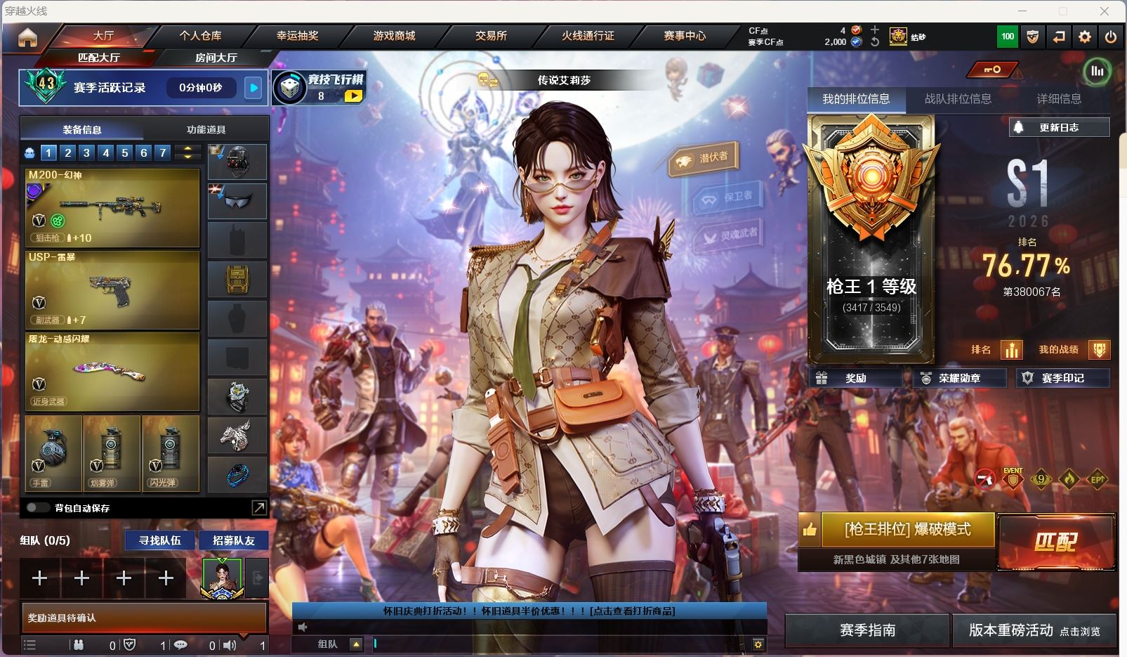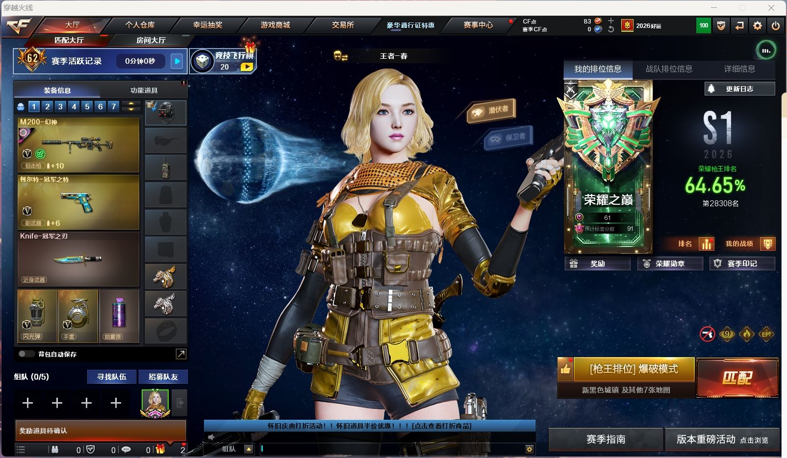 【游戏多多】 【可包人脸】hmc AK033176广西一区VIP5 29v【m200幻神+宠儿+n9皮肤+黄忠】【白虎电玩】【qbz金色蔷薇+冠军之薇】【朱雀】【火麒麟】【雷神+n9】【黑骑士+卡】【毁灭+ag15冠军】【4手枪:竞技荣光 修罗 冠军之特 荣耀世冠柯尔特ep】【刀具:屠龙】【雷套:雷暴王者*2】【小人枪:雷神精英刀锋】【音效卡:黑骑士音效卡 】【四防角色:云悠悠 王者春 】----更多炫彩背包/光效/名片/武器具体看图!截图展示段位不代实际段位,赛季更新等不可抗拒因素发生变化、时限道具不保证所剩时间、标题未写送点券默认不送】【主播担保+安全至上+性价比 买号卖号只选金牌商家一左友】